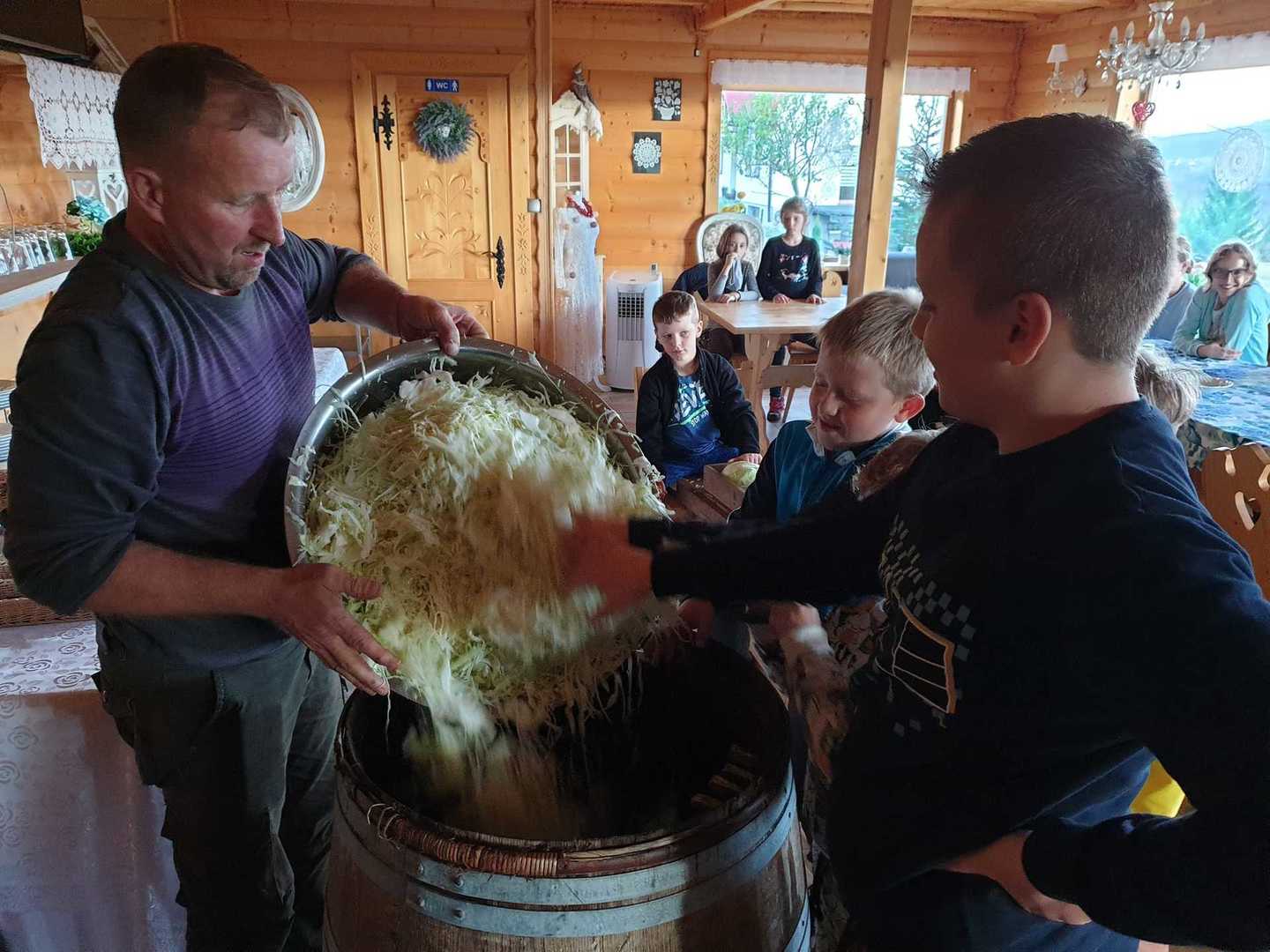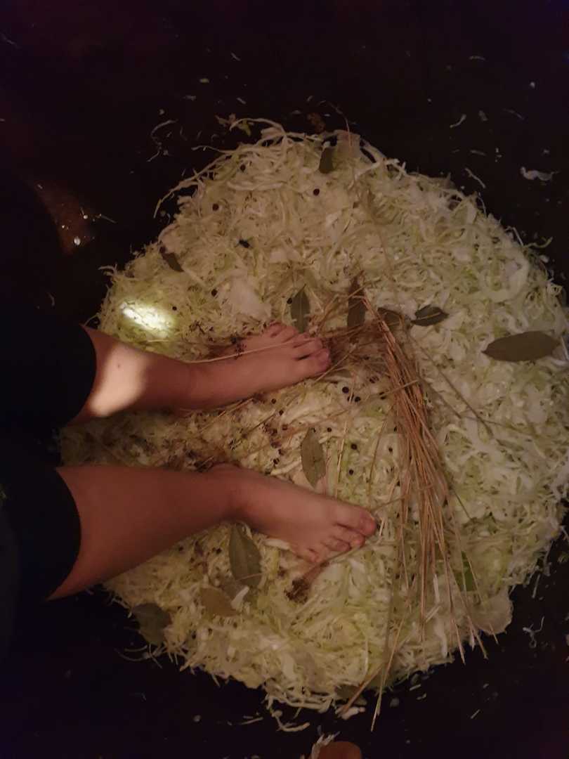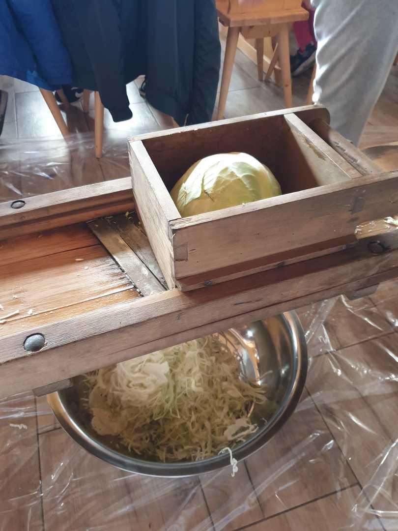 Najpierw było "pacowani" czyli obieranie na czysto główek z liści, następnie "krónziani" czyli szatkowanie "nożami do kapusty" aż w końcu "tłociani" ubijanie bosymi nogami w dębowej beczce. Oczywiście ważna role odgrywają przyprawy takie jak sól, liście laurowe, ziele angielskie ikoper.