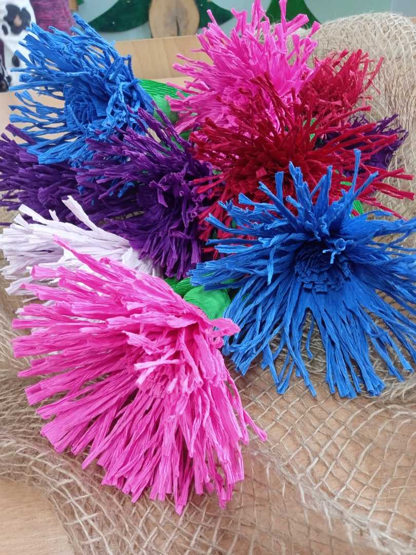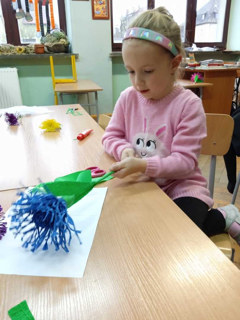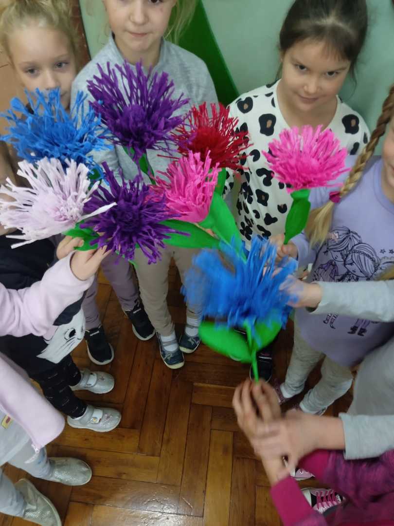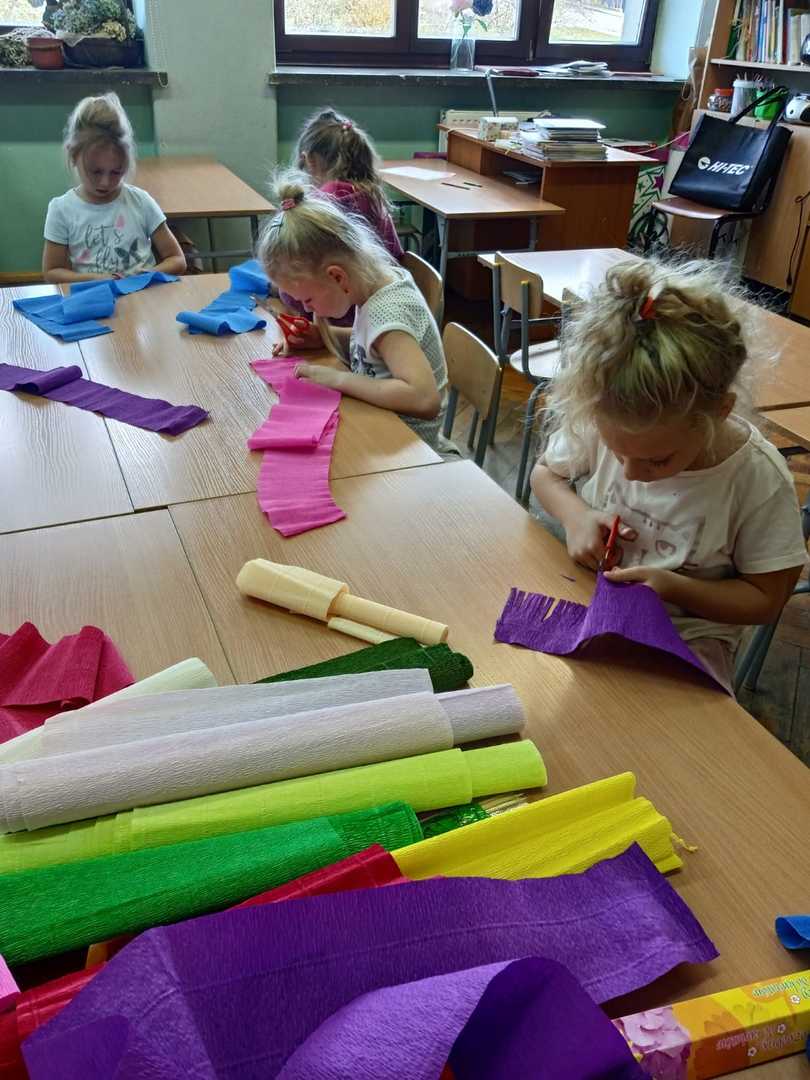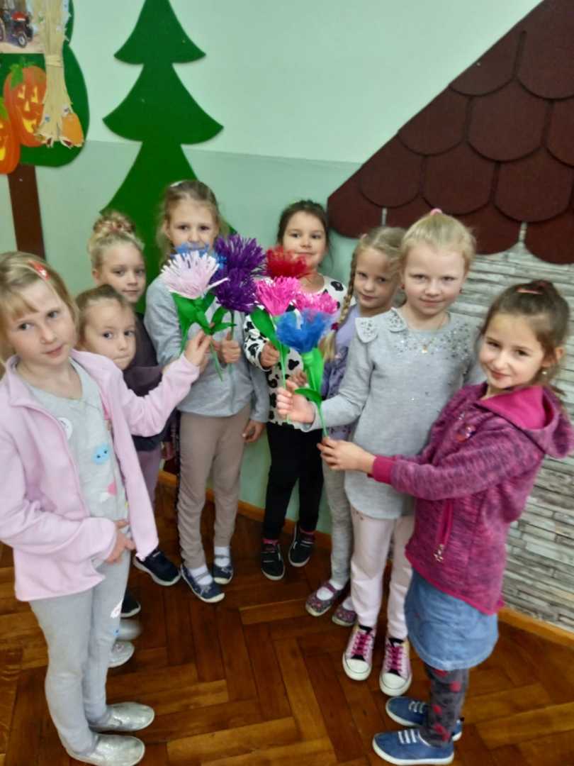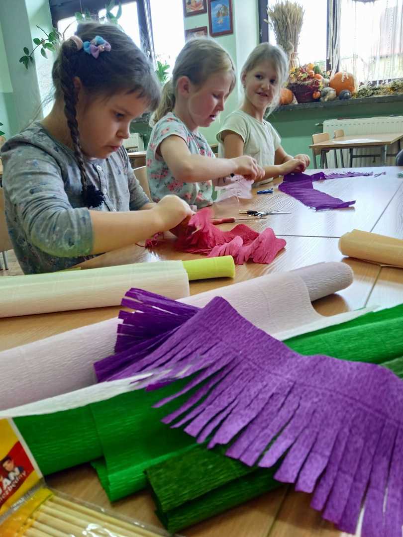 Na zajęciach koła bibułkarskiego, najmłodsi podopieczni wykonali swoją własną, jedyną i niepowtarzalną chryzantemę .