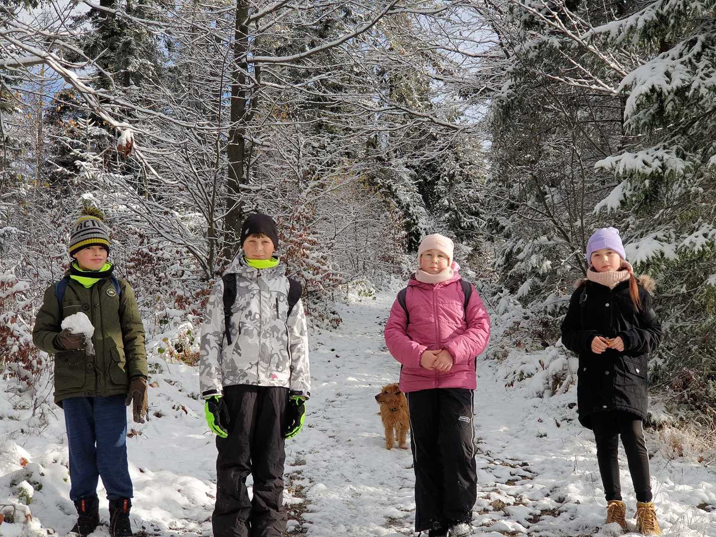 Nasza dzisiejsza trasa przebiegała Koniaków-Wołowa-Rastoka-Rdzawka-Tyniok-Żurowka-Koniakow. Jak widać dzieci juz nie mogly doczekać się śniegu,który zagościł u nas w ostatnich dniach