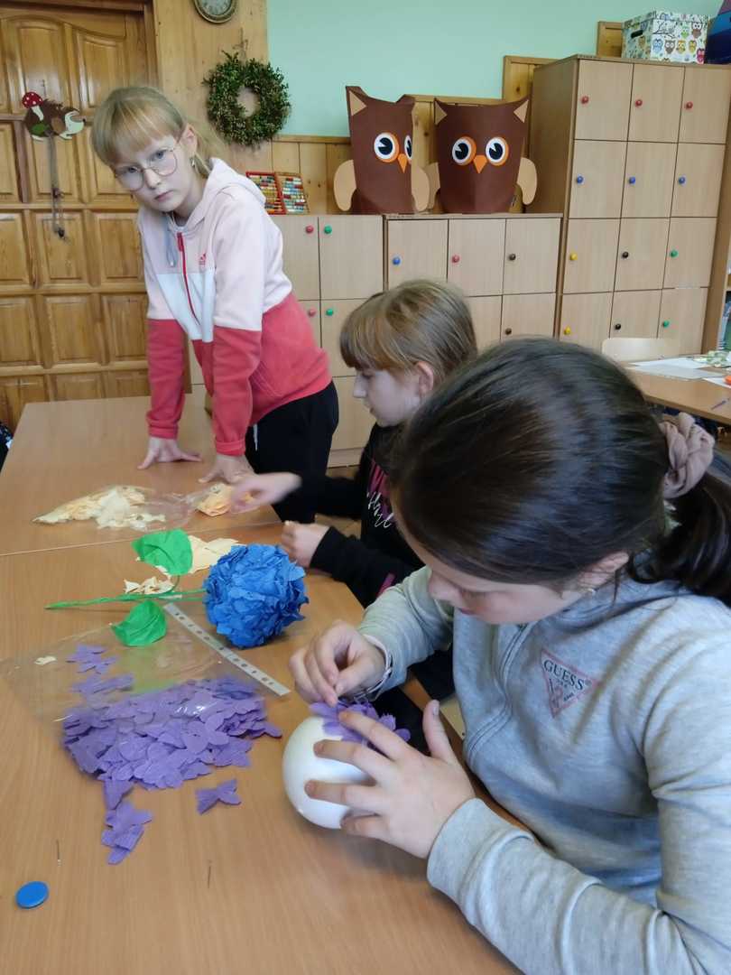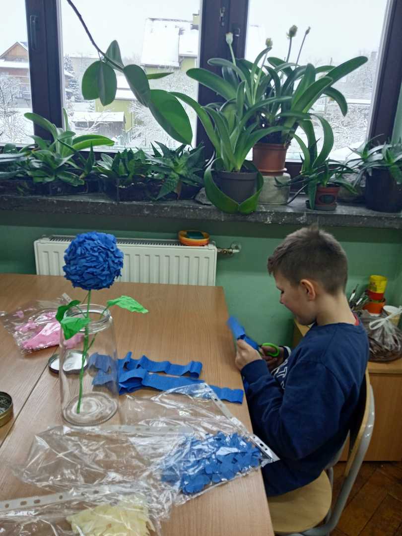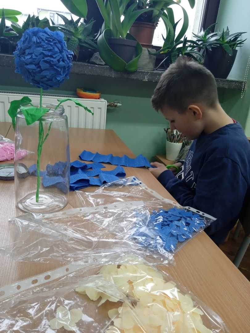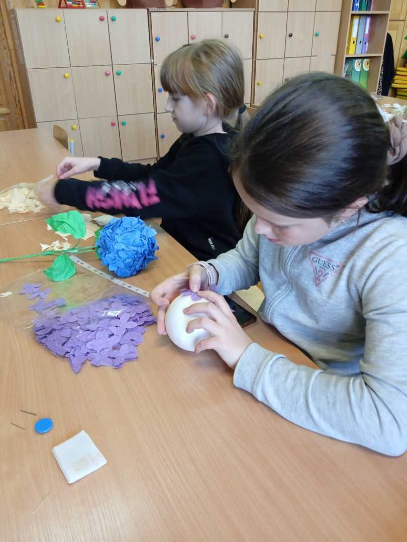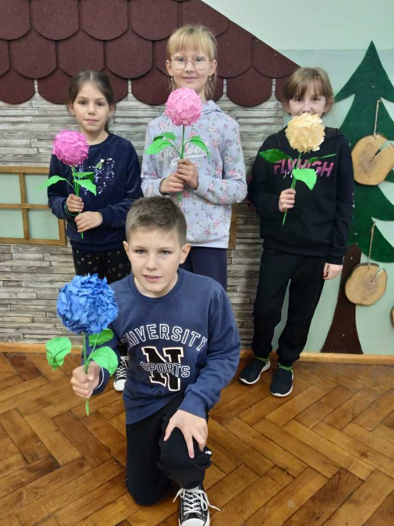 Podczas gdy młodsza grupa dzieci z koła bibułkarskiego na swoich ostatnich zajęciach demonstrowała piękne chryzantemy, grupa starsza w tym czasie zajmowała się tematem hortensji. Te piękne i okazałe kwiaty wykonane przez starszych wychowanków niewątpliwie robią wrażenie 🌺🌸🌼💐