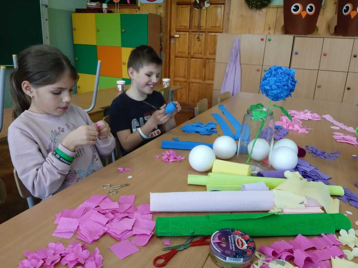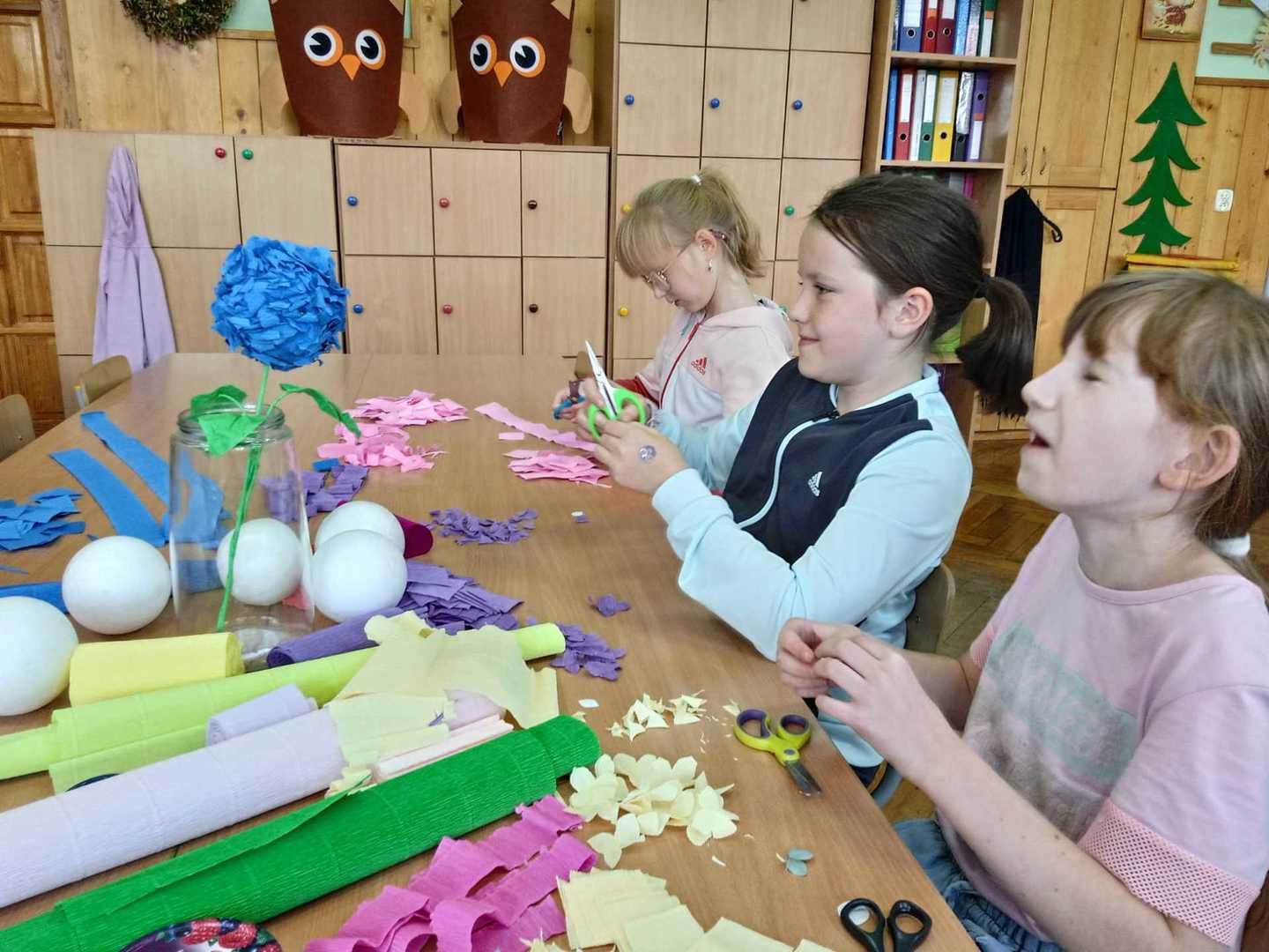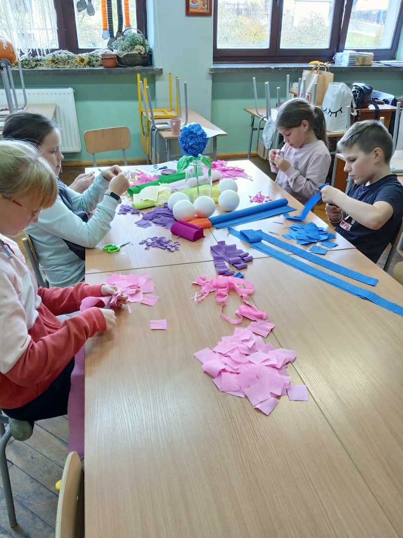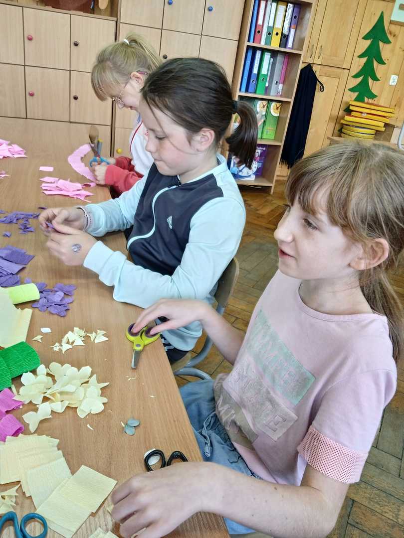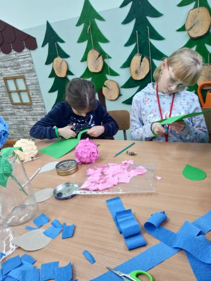 Podczas gdy młodsza grupa dzieci z koła bibułkarskiego na swoich ostatnich zajęciach demonstrowała piękne chryzantemy, grupa starsza w tym czasie zajmowała się tematem hortensji. Te piękne i okazałe kwiaty wykonane przez starszych wychowanków niewątpliwie robią wrażenie 🌺🌸🌼💐