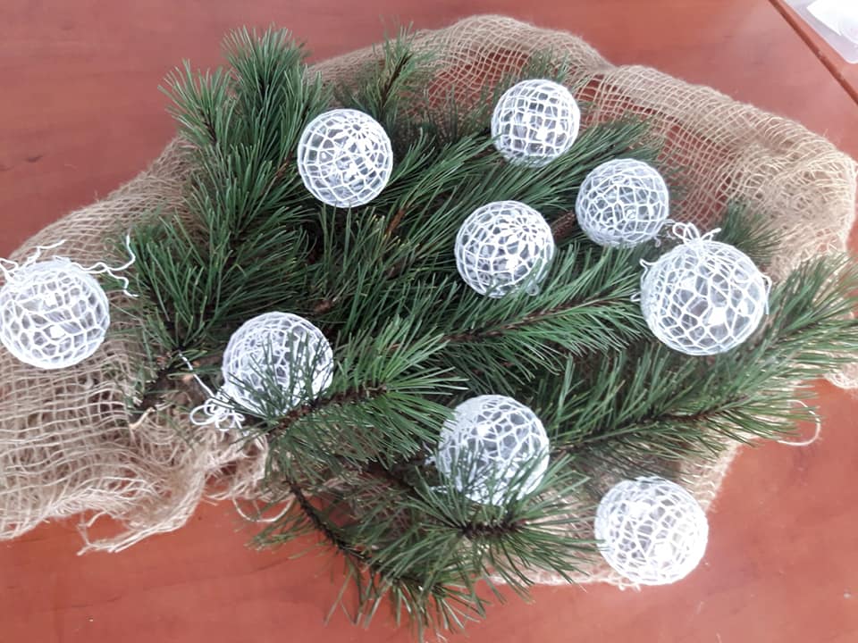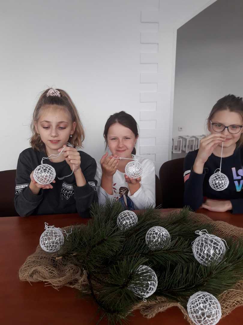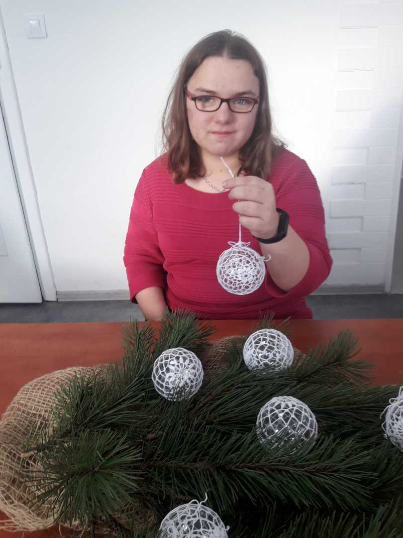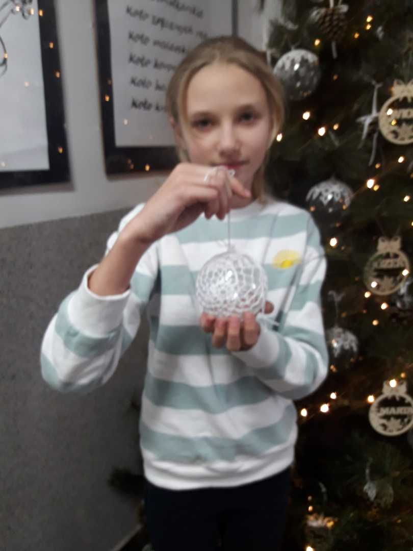 Jakie ozdoby zawisną na tegorocznym świątecznym drzewku? Dziewczynki z koła koronczarskiego nie miały problemu z dokonaniem wyboru podczas zajęć pod okiem Teresa Vavrać uheklowały koronkowe bombki, które z pewnością będą pieknie prezentowały się na choince