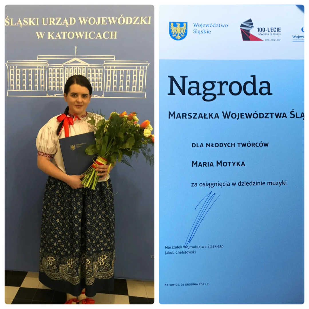 MARYSIA MOTYKA- otrzymała NAGRODĘ Marszałka Województwa Śląskiego Jakuba Chełstowskiego dla MŁODYCH TWÓRCÓW 2021 za osiągnięcia w dziedzinie muzyki