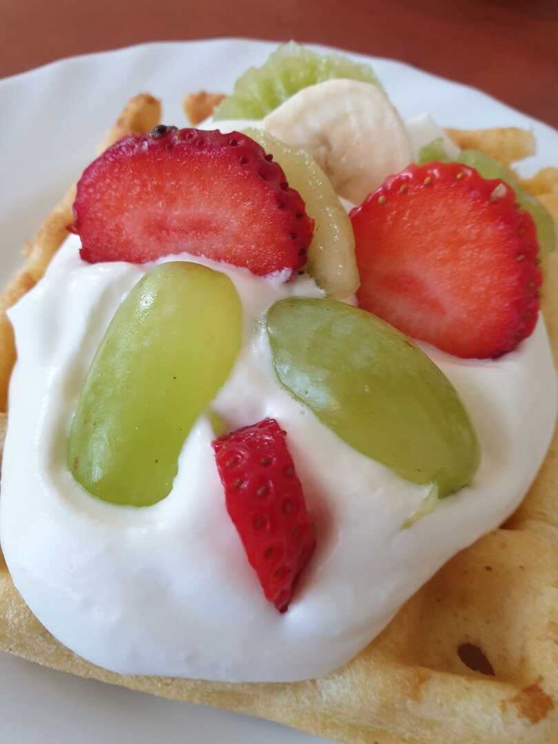 Chrupiące na zewnątrz, mięciutkie w środku, do tego świeże owoce i bita śmietana