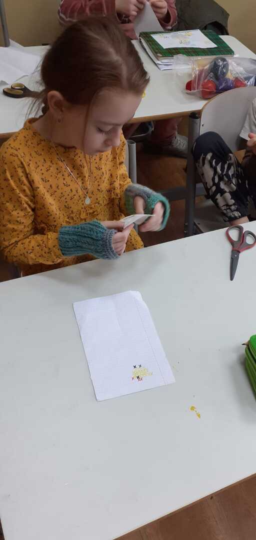 Czas przed艣wi膮teczny, wi臋c i m艂ode hafciarki przygotowuj膮 elementy którymi ozdobi膮 kartki lub jajka