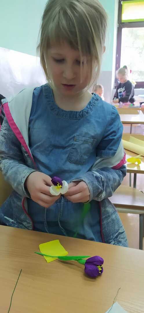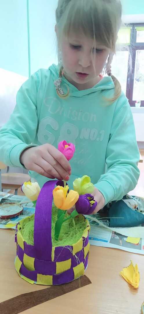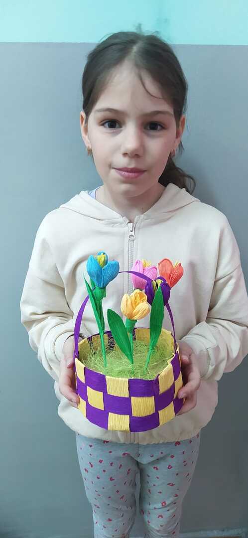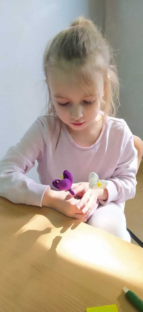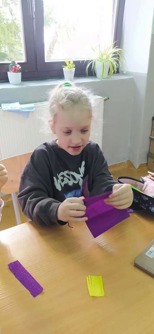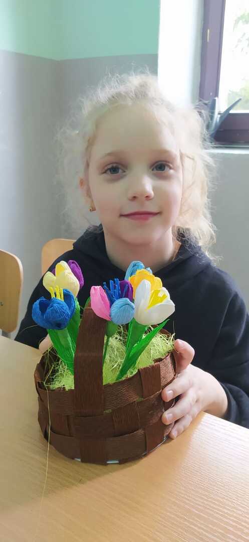 🌺🎍🌸Wiosenny koszyczek i krokusy z bibuły uwiły dzieci podczas zajęć bibułkarskich.