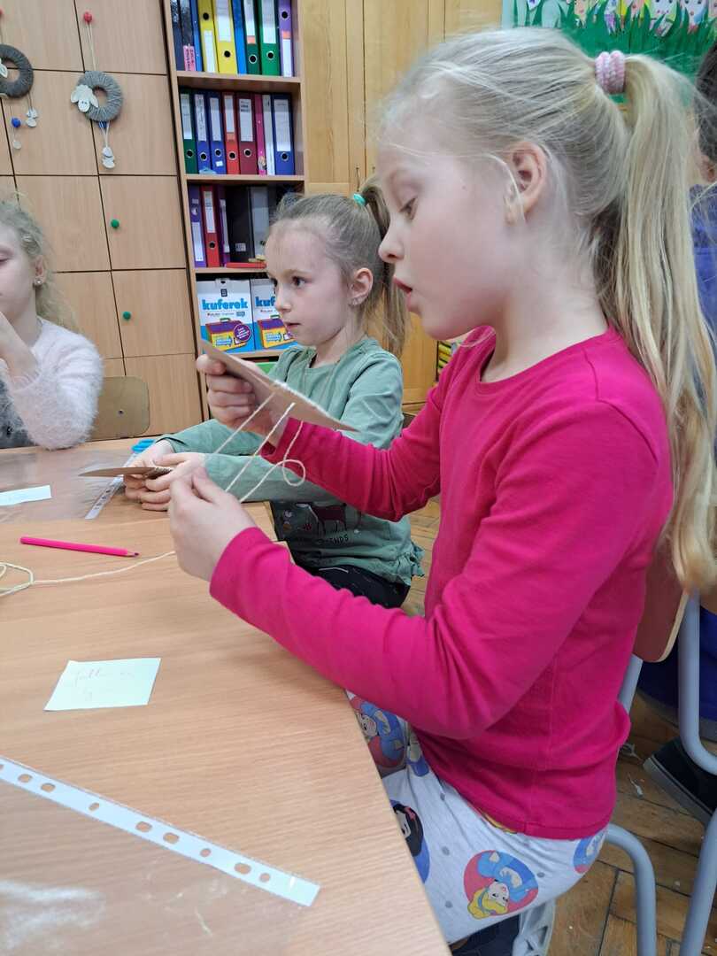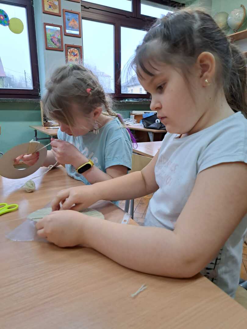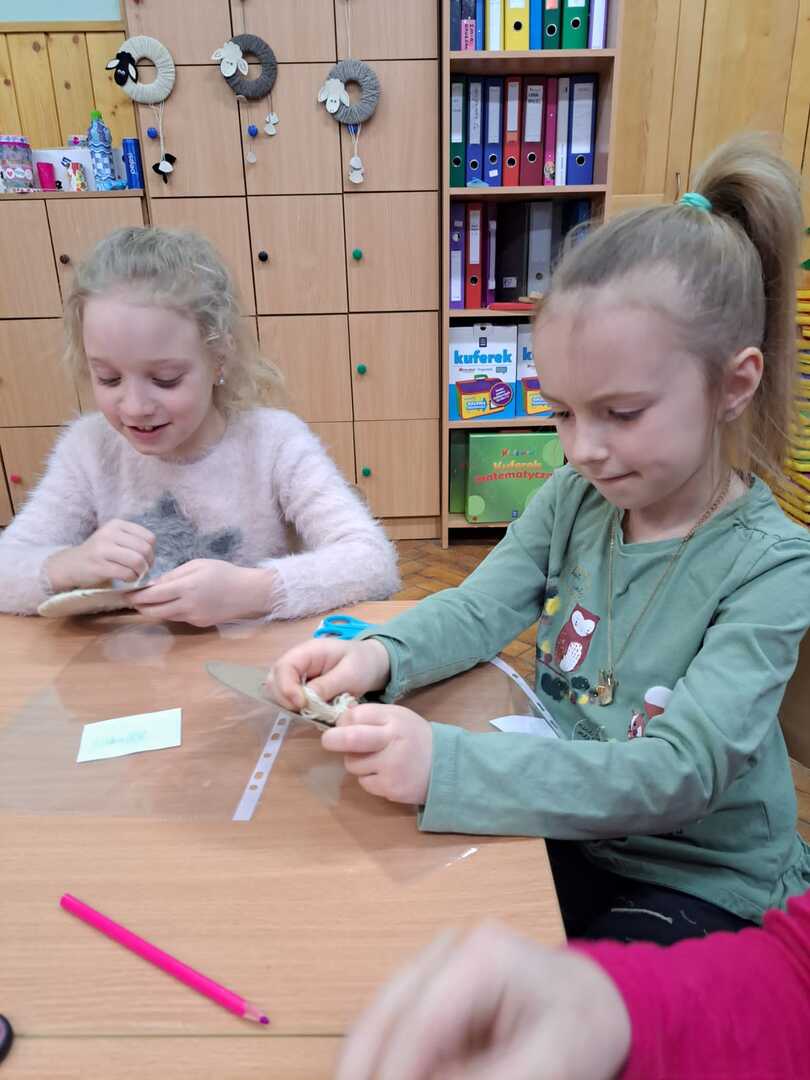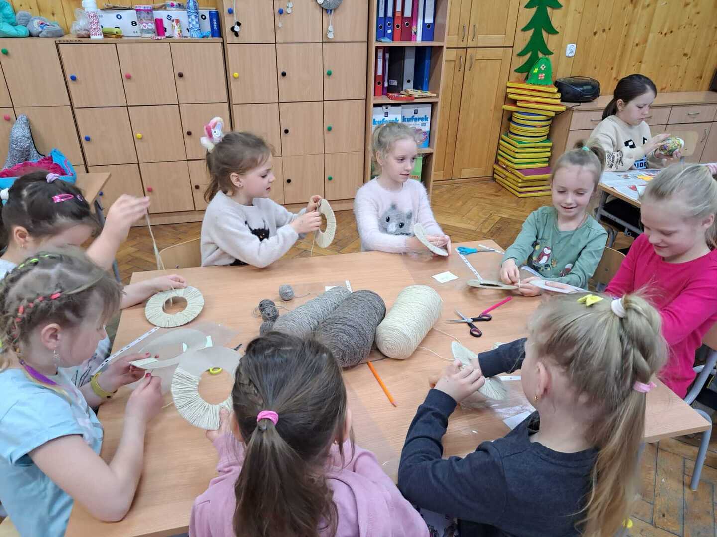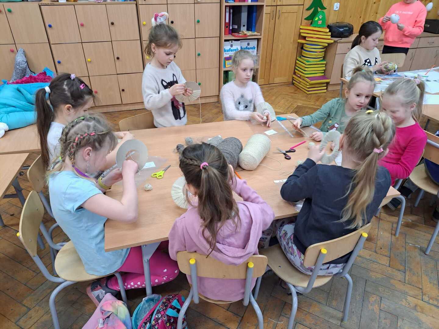 M艂odsza grupa dzieci z ko艂a zr臋cznych r膮k wykona艂a dekoracj臋 na ten wyj膮tkowy czas. Owieczki ozdobione we艂n膮, 艣wietnie sprawdz膮 si臋 zawieszone w oknach lub na wianku wielkanocnym