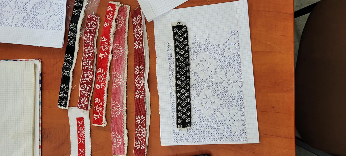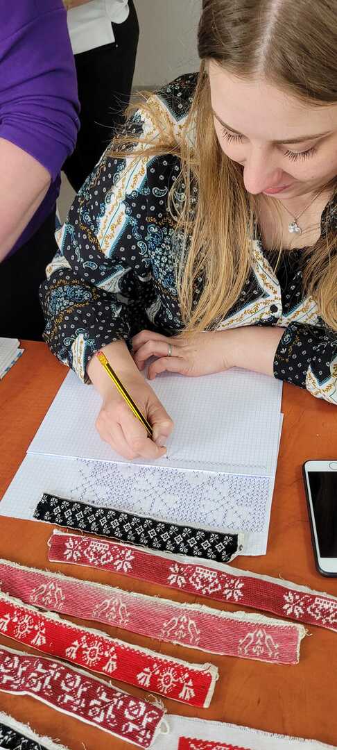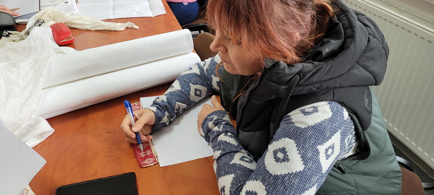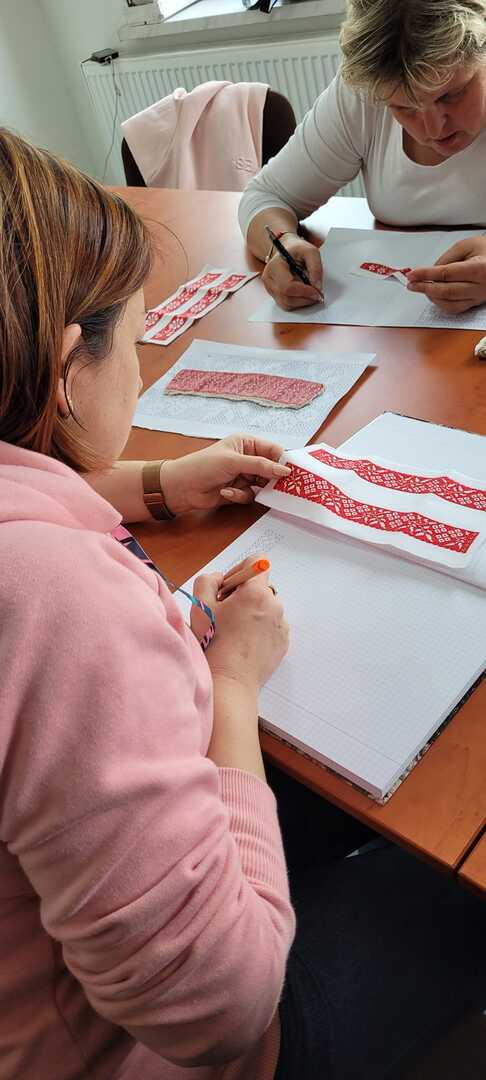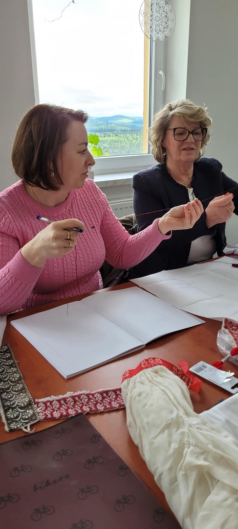Na pierwszych zajęciach uczestniczki miały możliwość zapoznania się z archaicznymi wzorami haftów oraz sposobami ich wykonywania. Umiejętności te będą doskonalone podczas najbliższych spotkań warsztatowych, które prowadzi Katarzyna Suszka