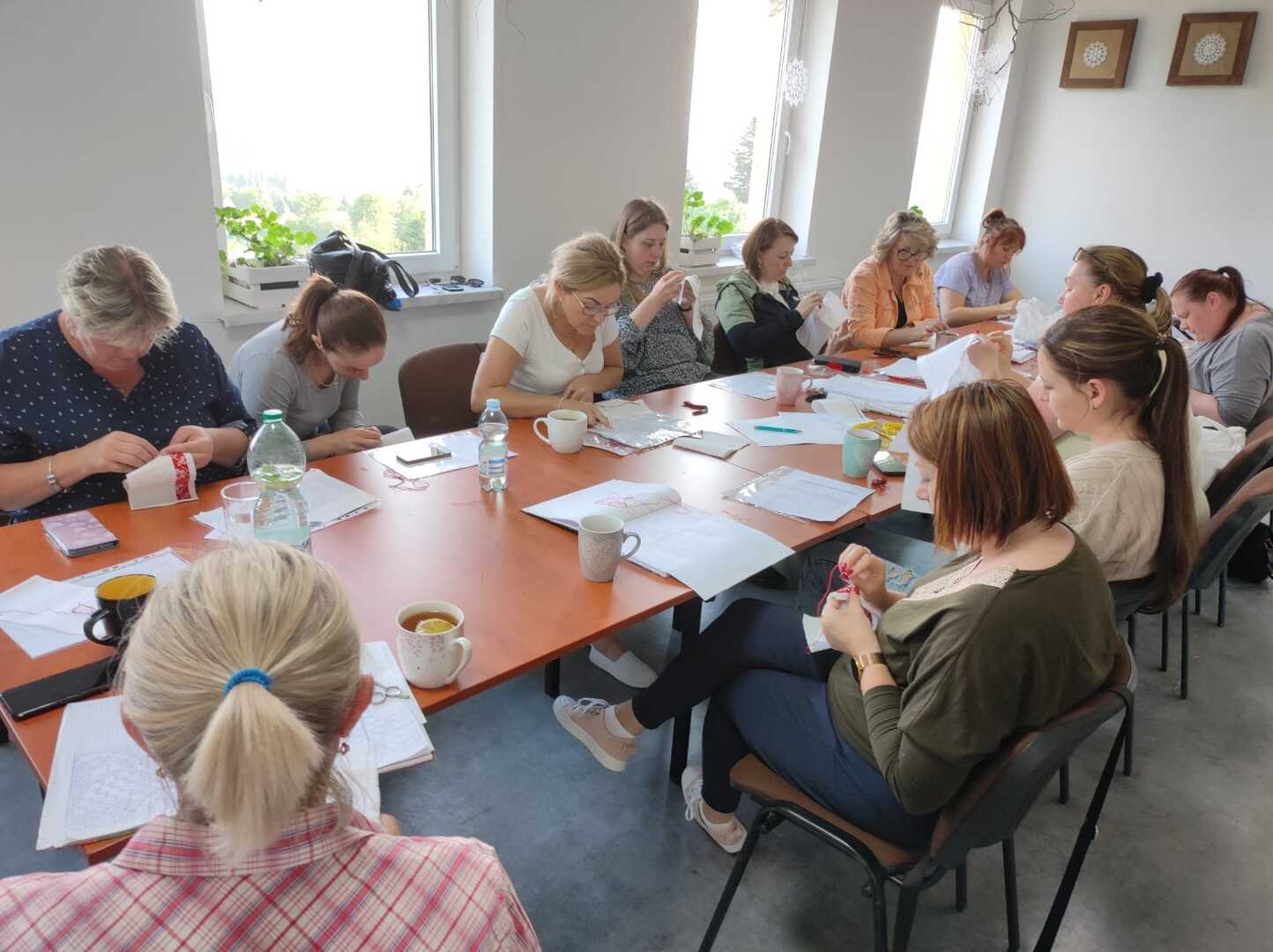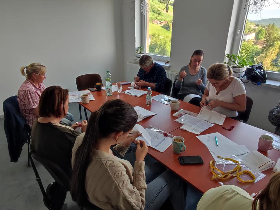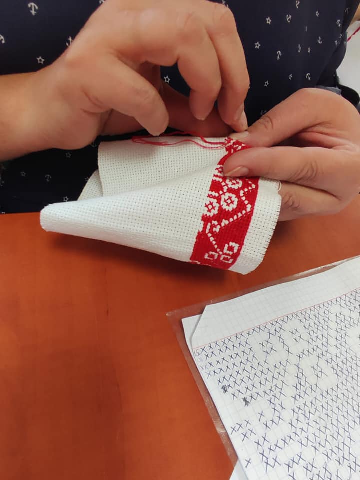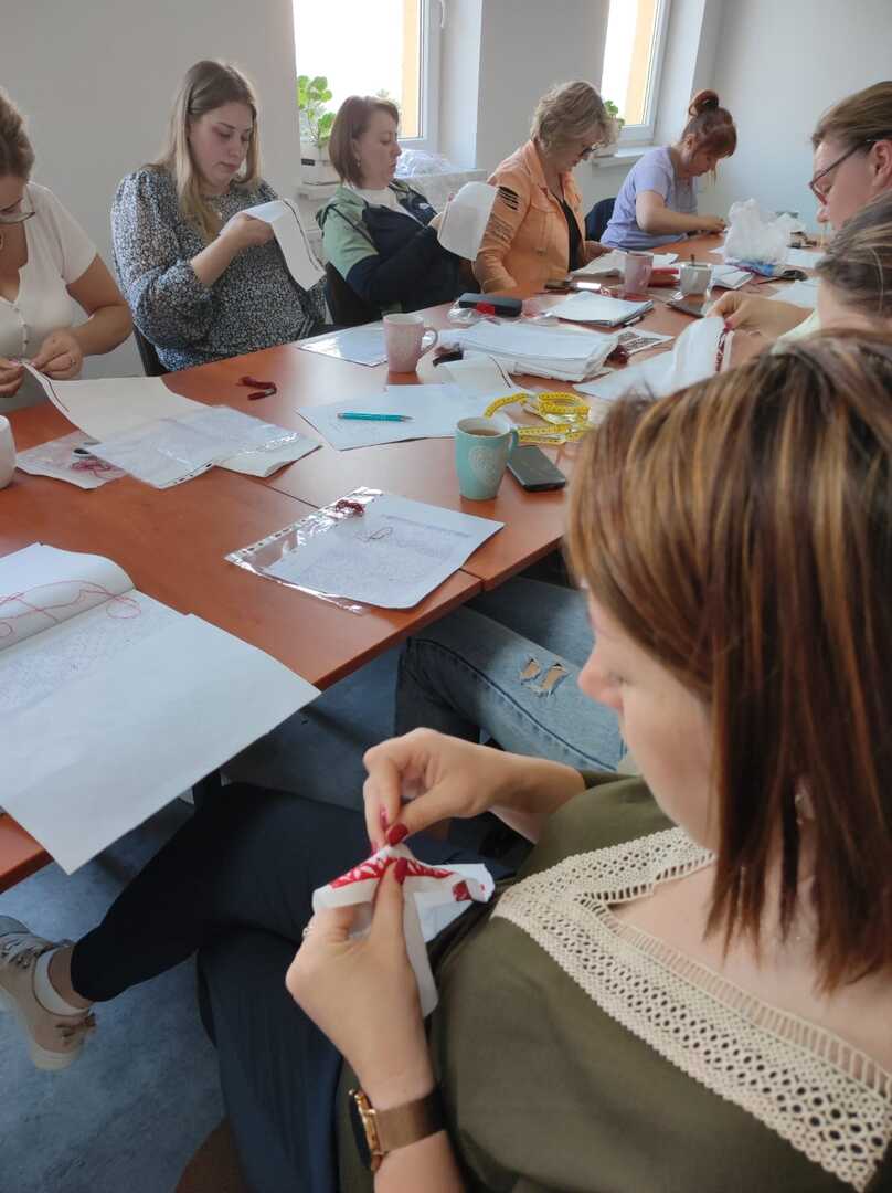 Nasze uczestniczki obecnie wyszywają archaiczne wzory haftów, które będą wykorzystane do wykonania kabotkow Umiejętności te będą doskonalone podczas najbliższych spotkań warsztatowych, które prowadzi Katarzyna Suszka