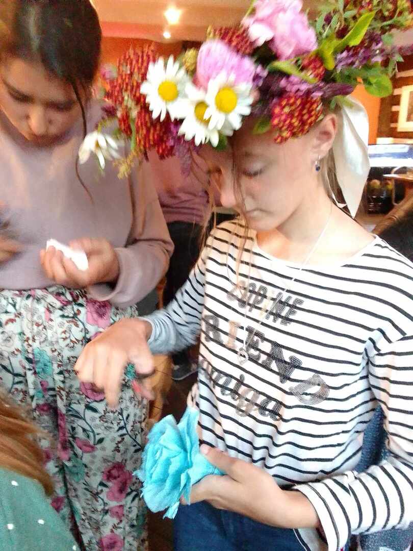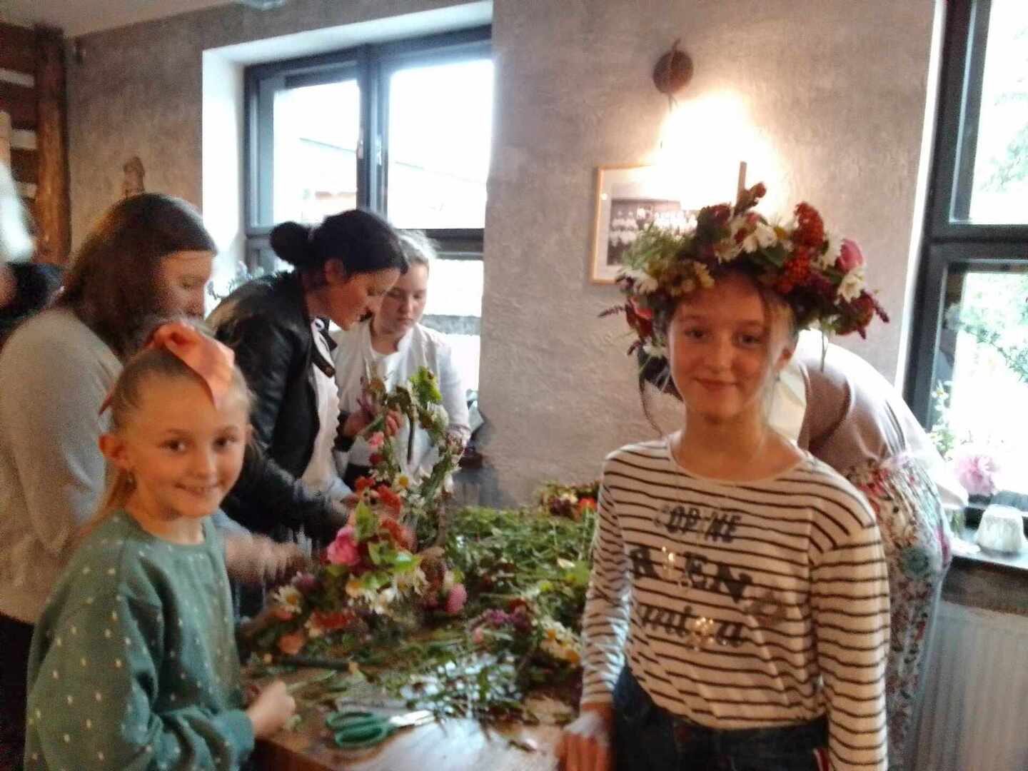 🍀🌺🌷🌿🌸Chętni nowych umiejętności i ciekawi tradycji udaliśmy się z grupą dziewczyn z koła malarstwa na warsztaty wicia wianków i robienia kwiatów z bibuły🍀🌺🌷🌿🌸