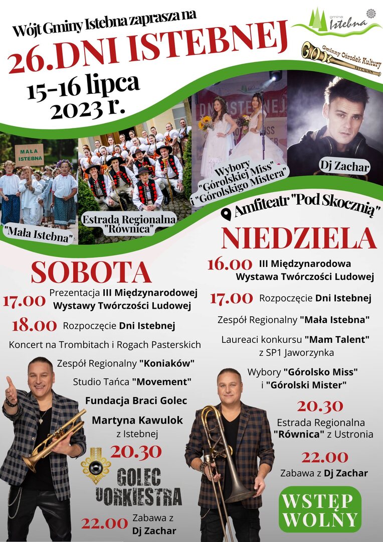 Serdecznie zapraszamy w imieniu organizatorów Gminny Ośrodek Kultury w Istebnej i Gmina Istebna .