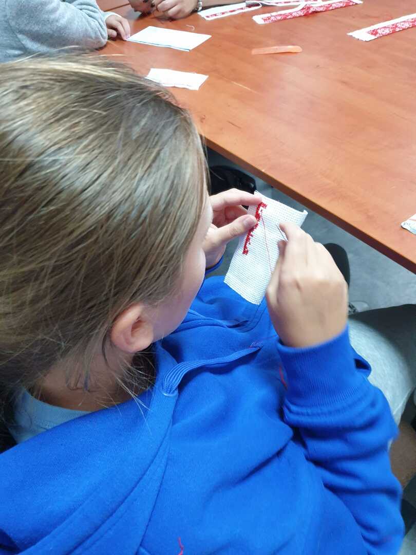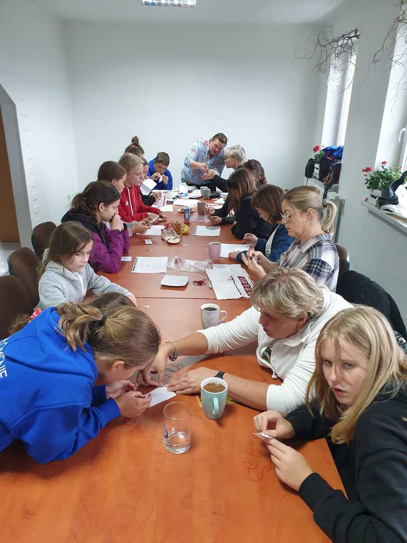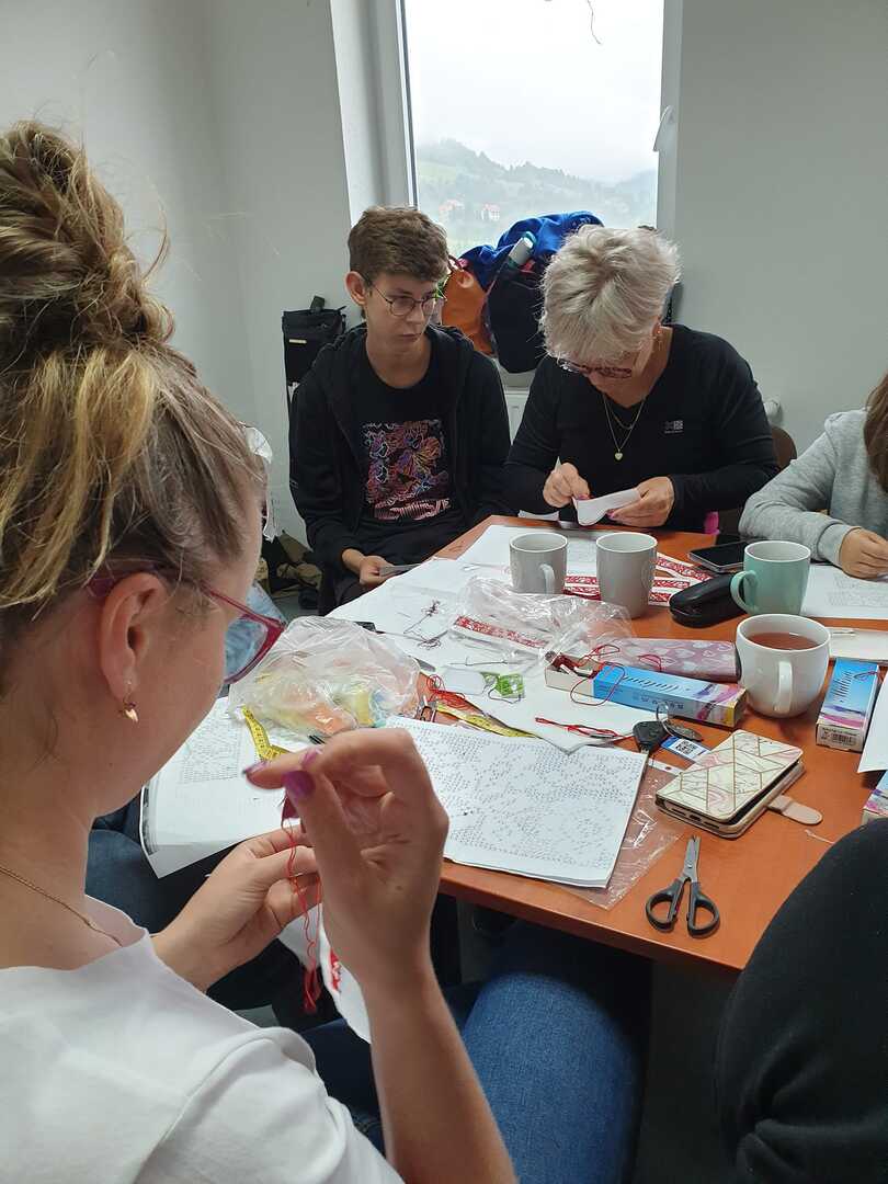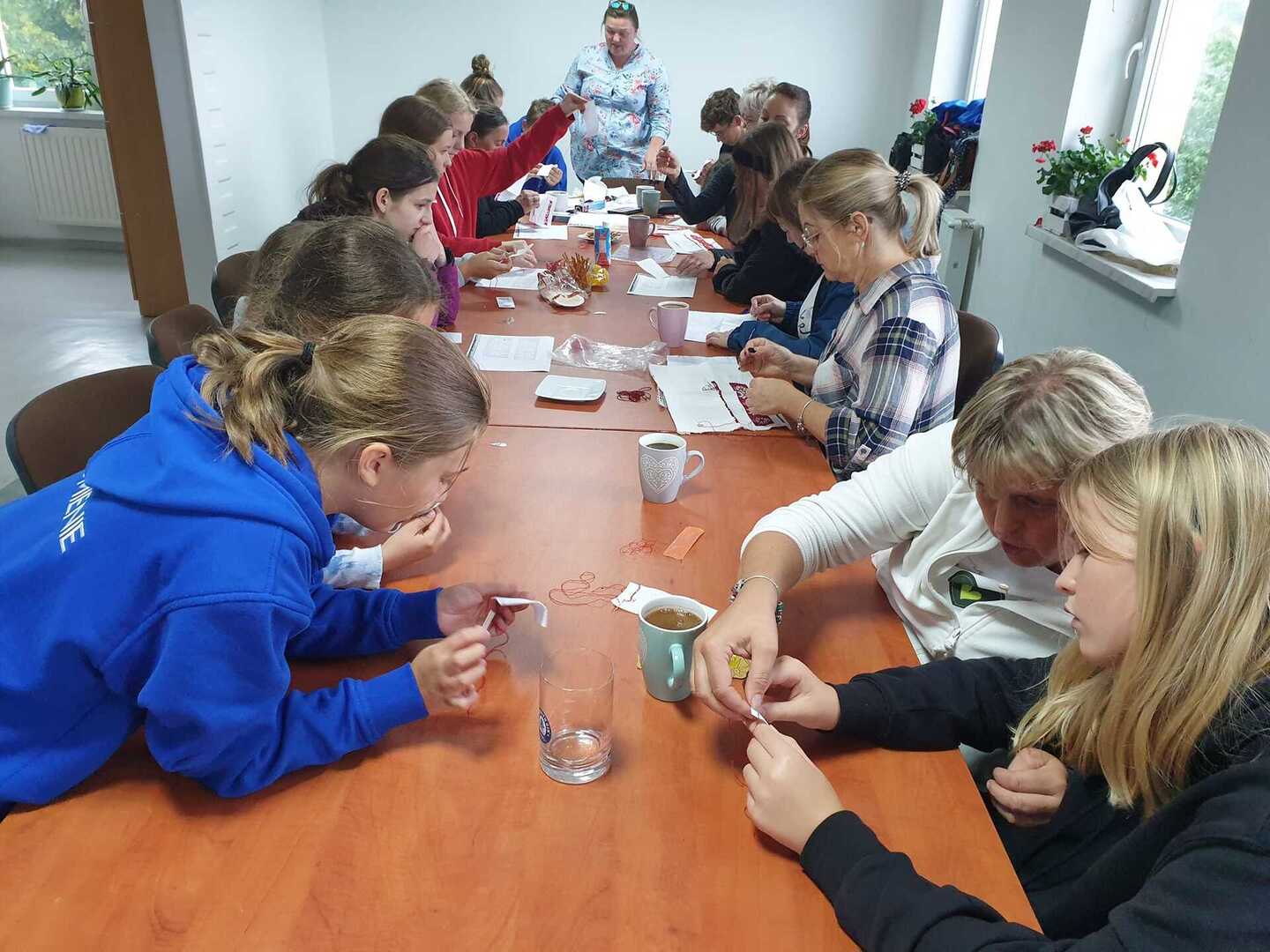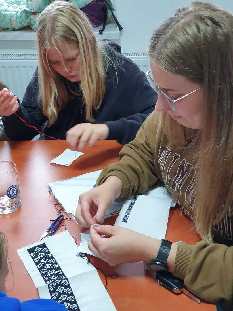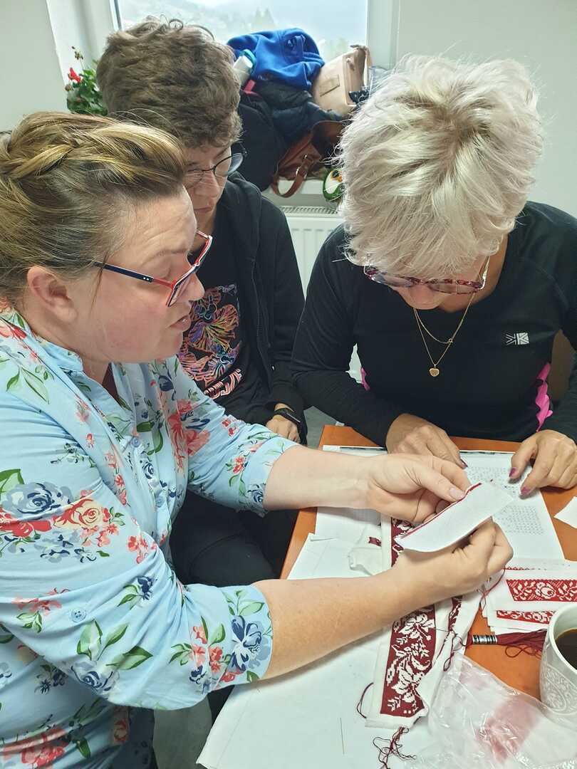 Warsztaty wyszywania obójków i lymiyczków do kabotkow ju偶 na finiszu. Na ostatnim spotkaniu odwiedzi艂a nas grupa dzieci i m艂odzie偶y z