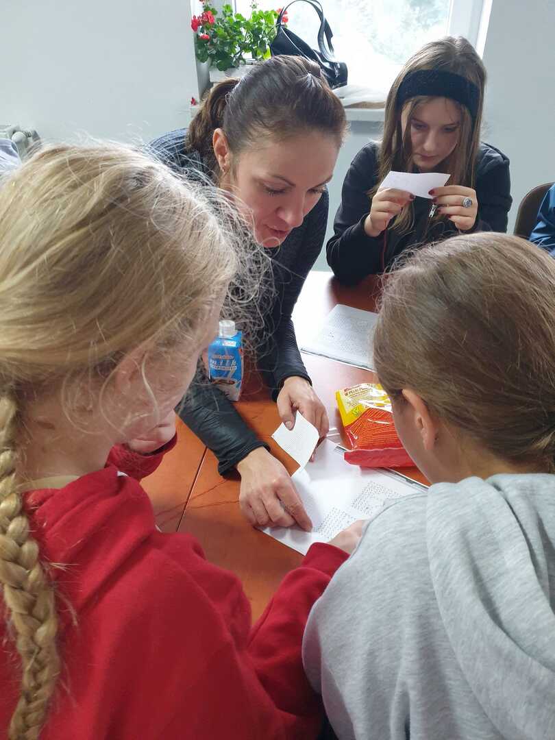 Katarzyna Suszka oraz uczestniczek projektu dzieci mialy okazj臋 spróbowa膰 swoich si艂 i wyszy膰 podstawowe wzory.