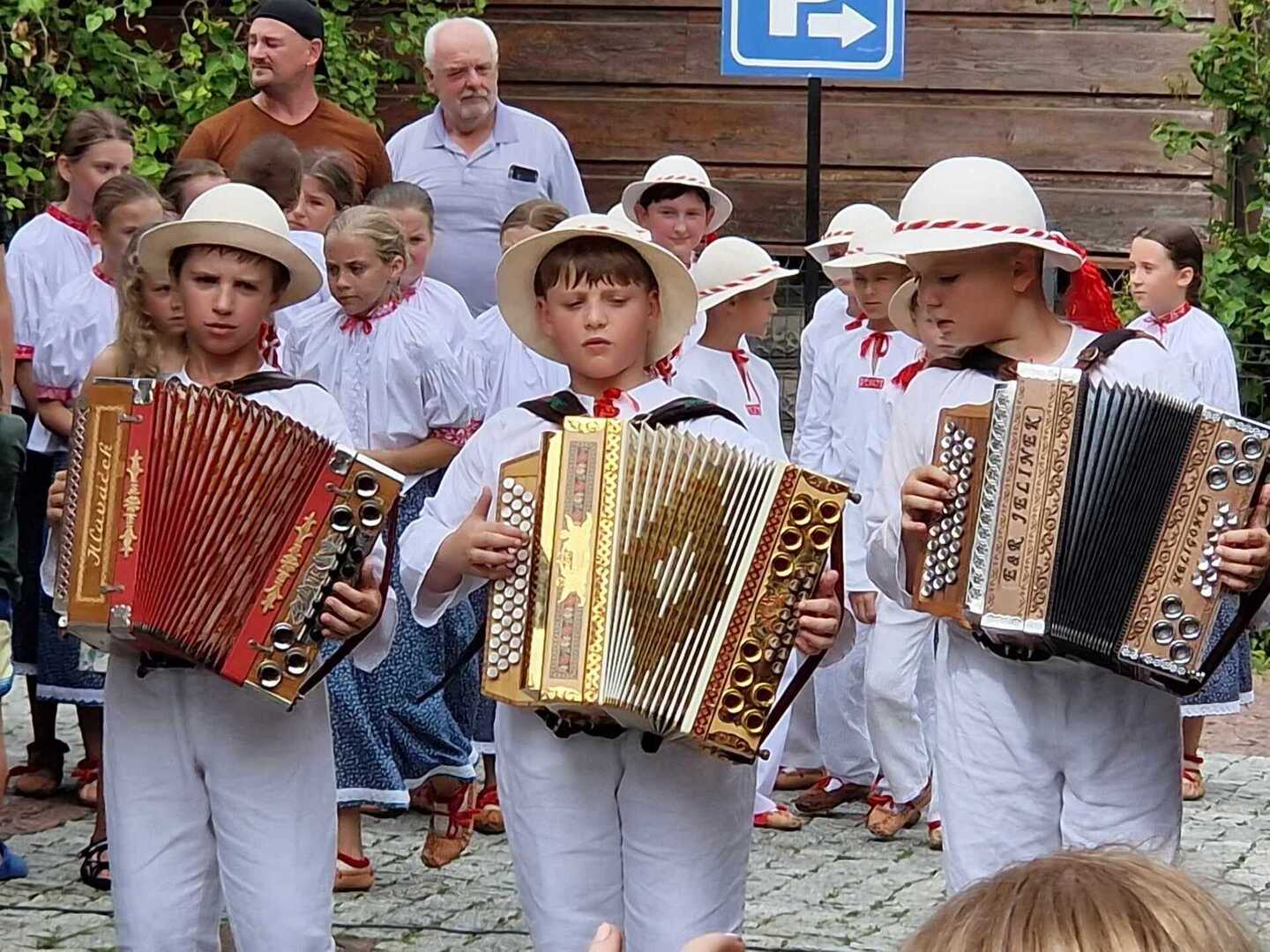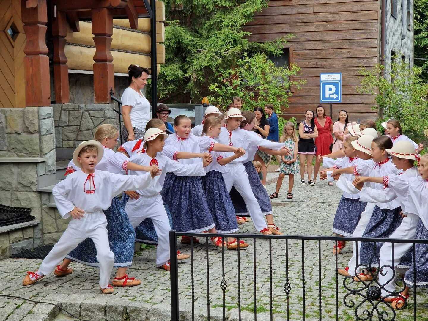 Dziękujymy za zaproszenie na występ połączony z warsztatami gazdóm Marii i Pietrowi Kohutom z Centrum Pasterskie w Koniakowie. Radzi my sóm, że mogli my wzbogacić o nasi tańcowani i spiwani organizowany co roku przy Bacówce Jarmark Pasterski.