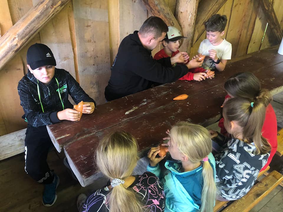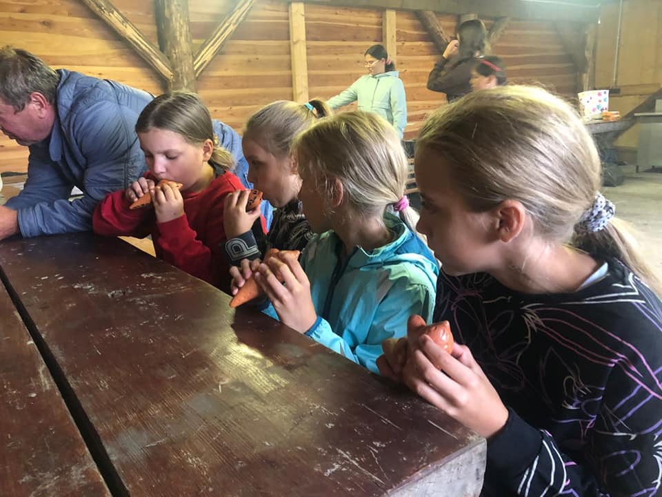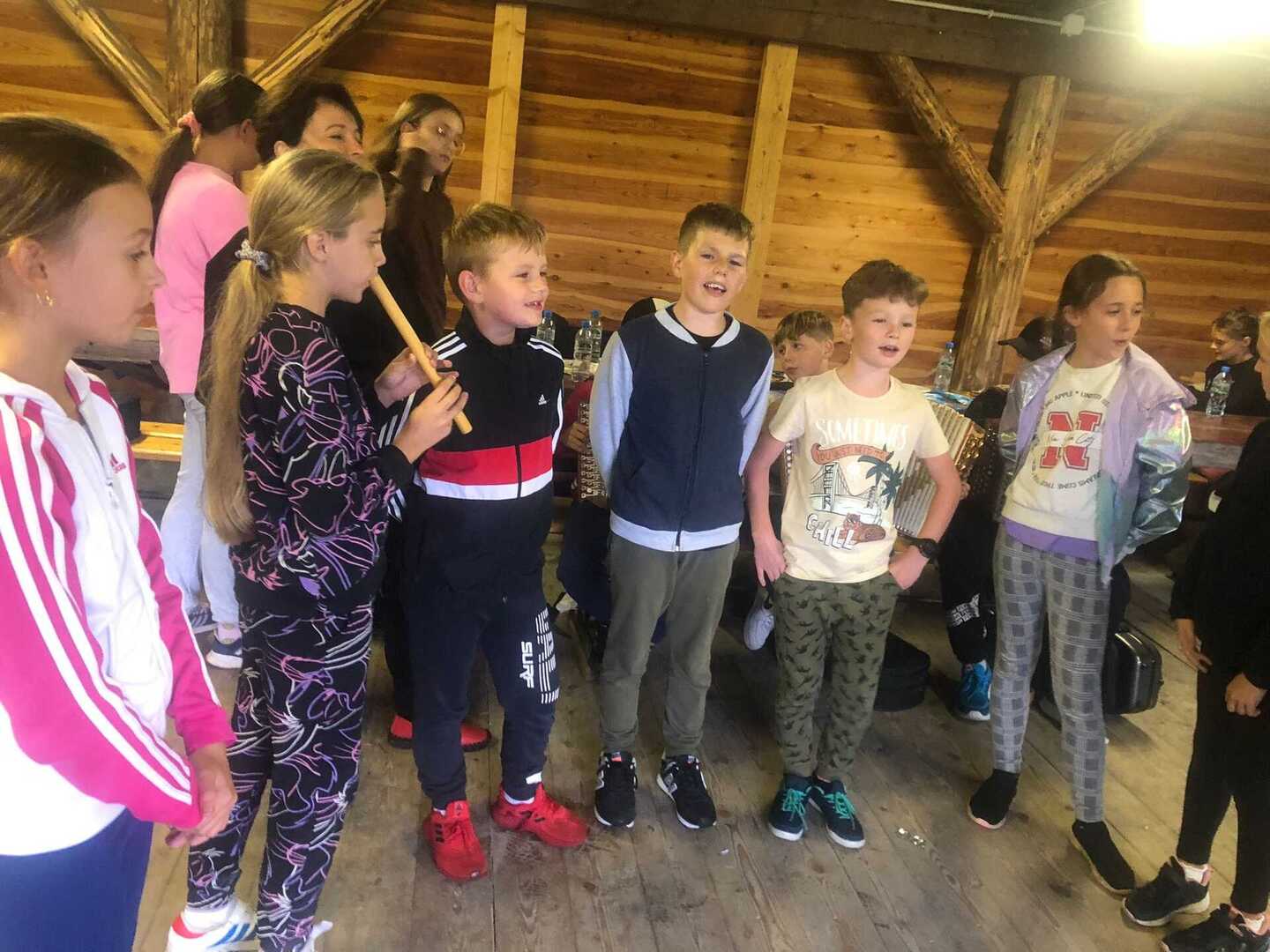 Wszystkie kalorie spaliliśmy podczas gry w dwa ognie. Ależ to była zacięta walka Odwiedził nas także Janko Macoszek, który uczył nas gry na okarynkach i opowiedział o tym małym ciekawym instrumencie.