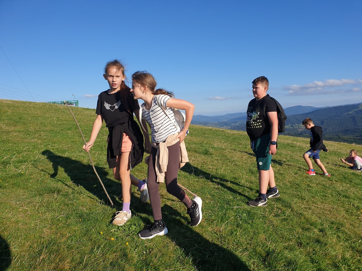 Dzięki pięknej pogodzie mogliśmy cieszyć się spacerem i podziwiać beskidzką panoramę w pełnym blasku słońca.