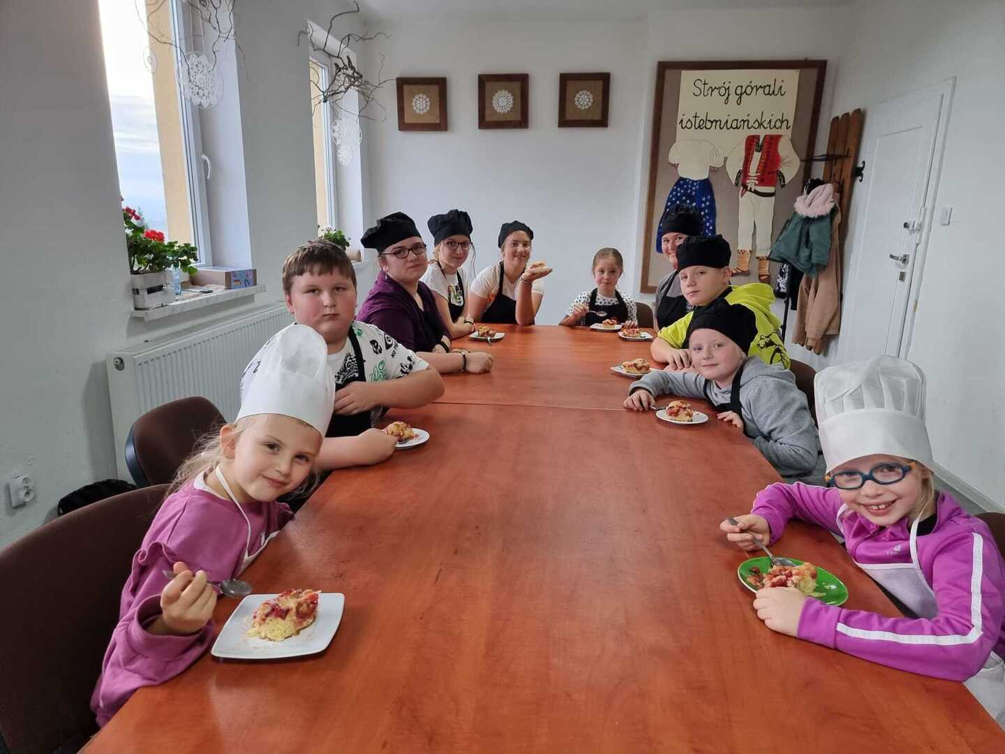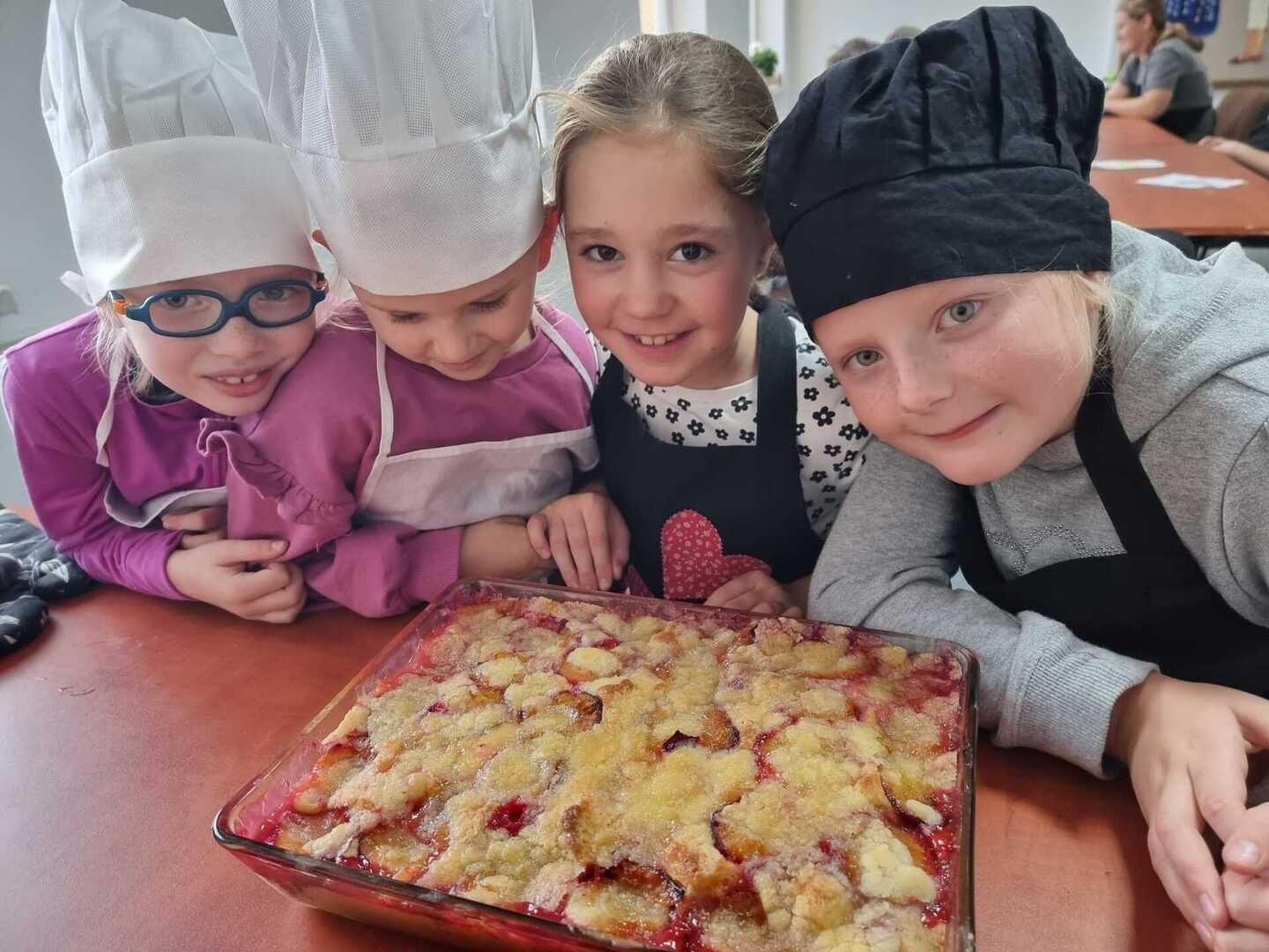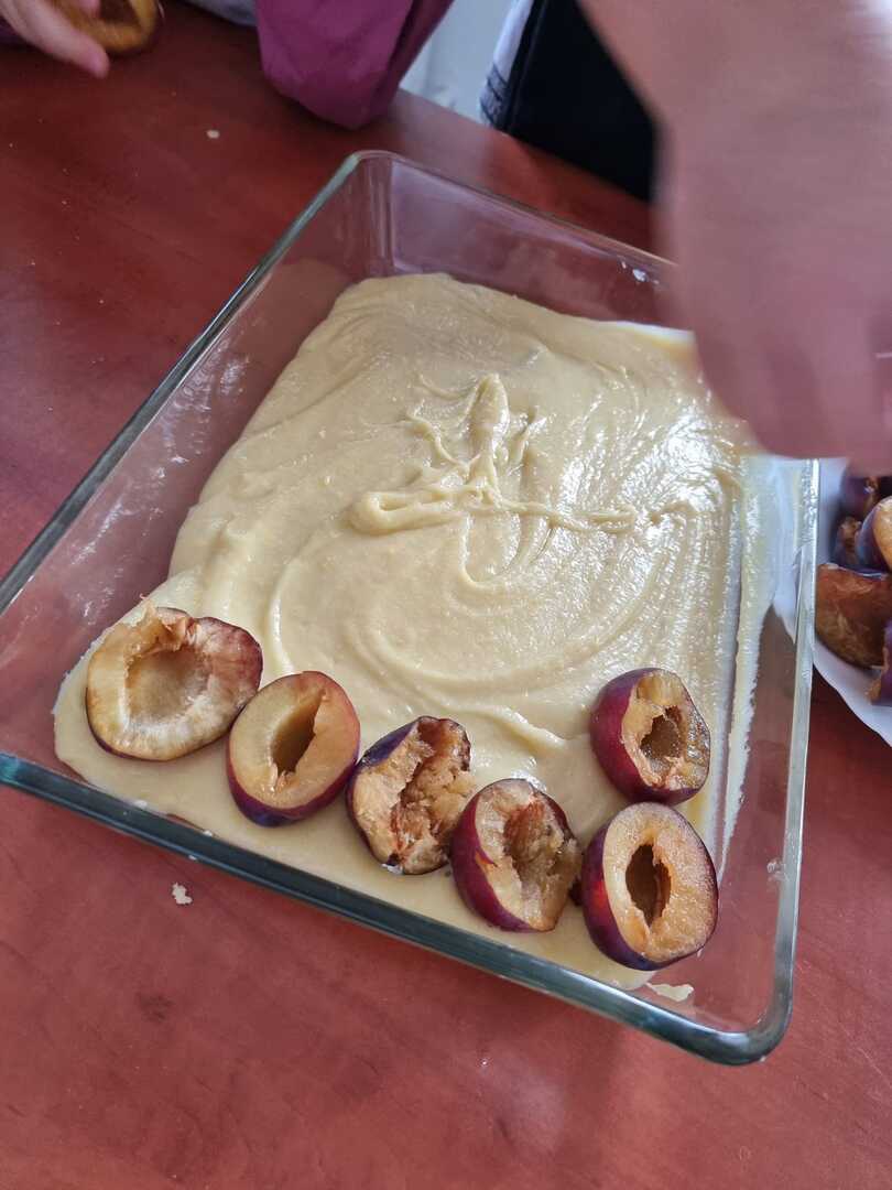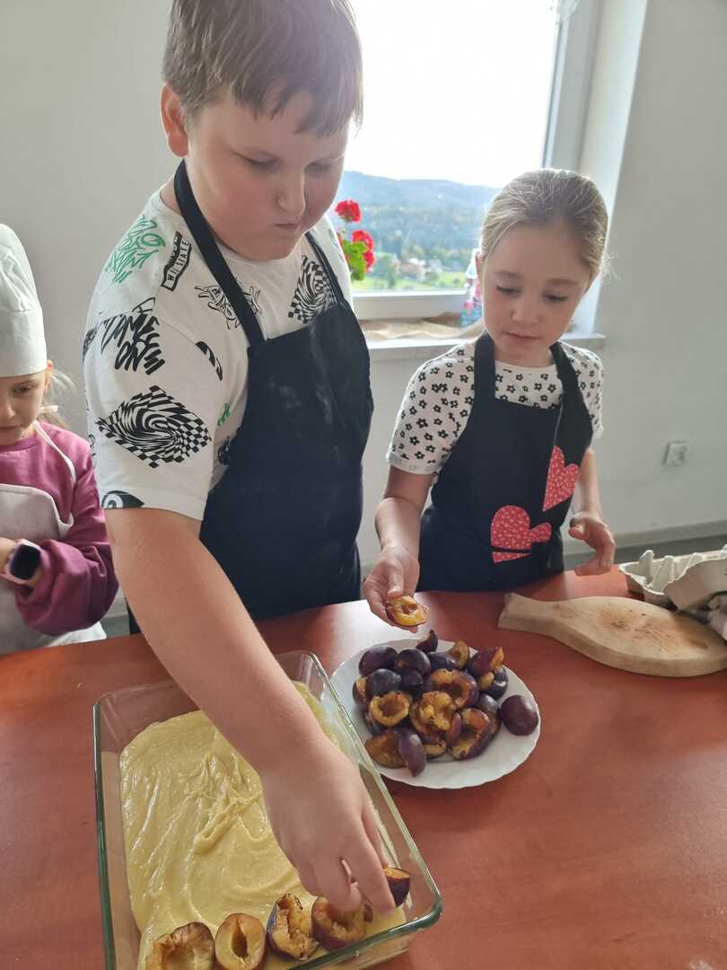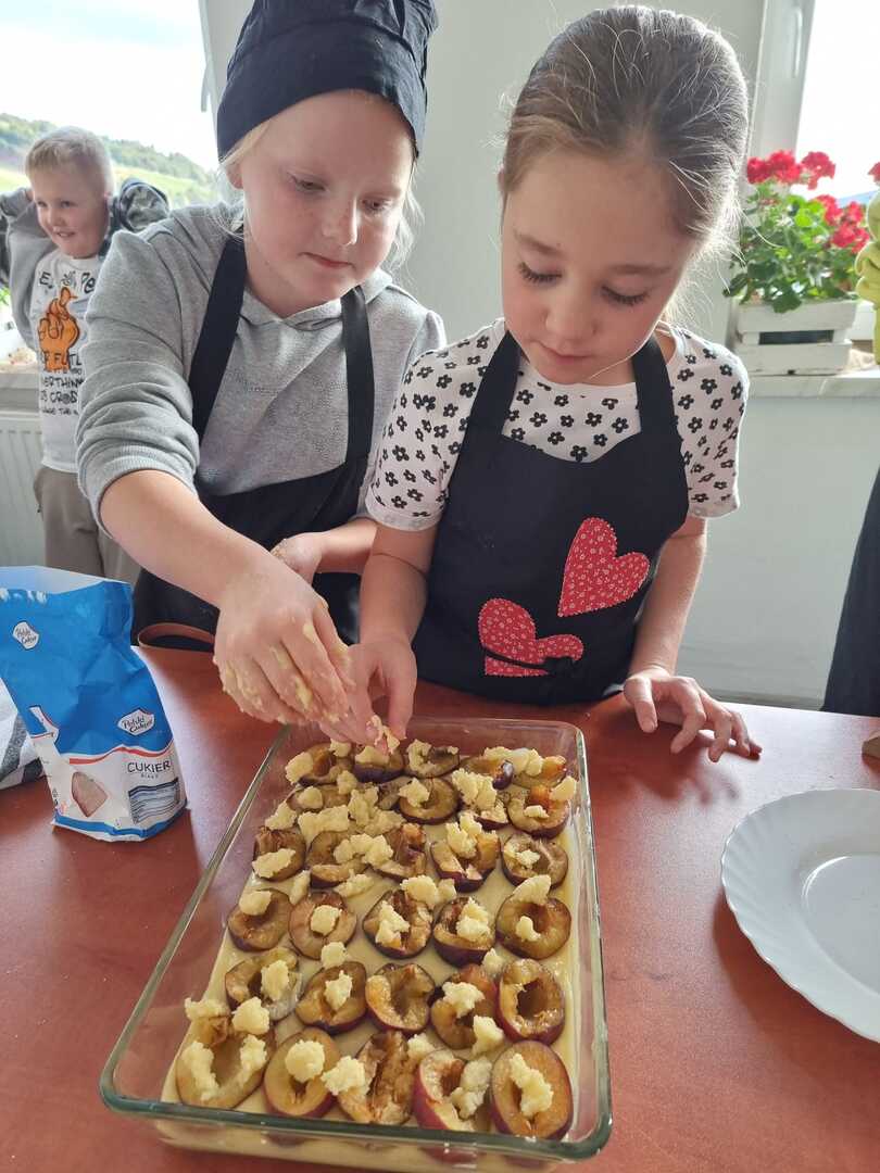Kolejnym smakołykiem było jogurtowe, delikatne ciasto ze śliwkami - propozycja na słodki jesienny podwieczorek. Dzieci z niecierpliwością czekały aż się upiecze. Wypiek wyszedł wspaniale i zniknął w mgnieniu oka!