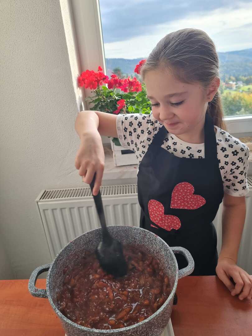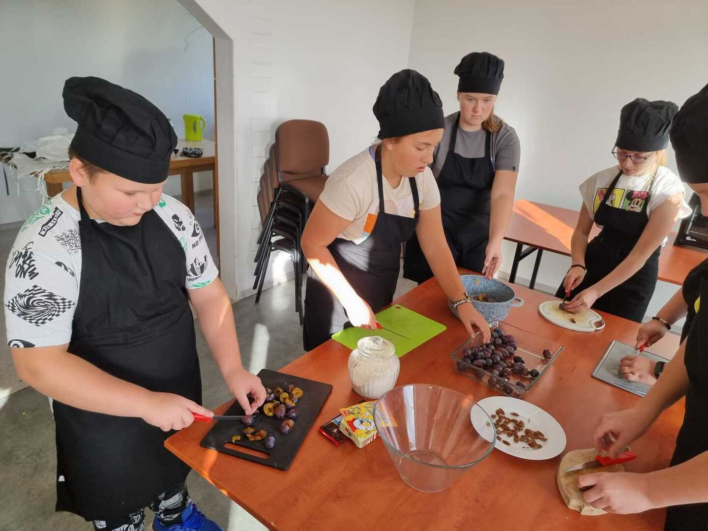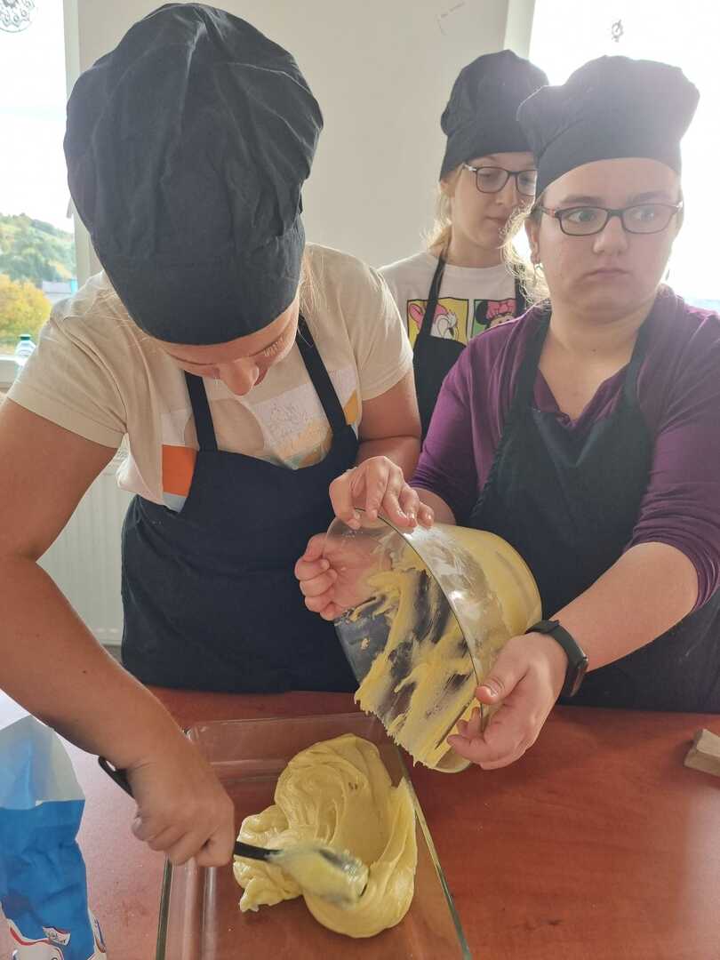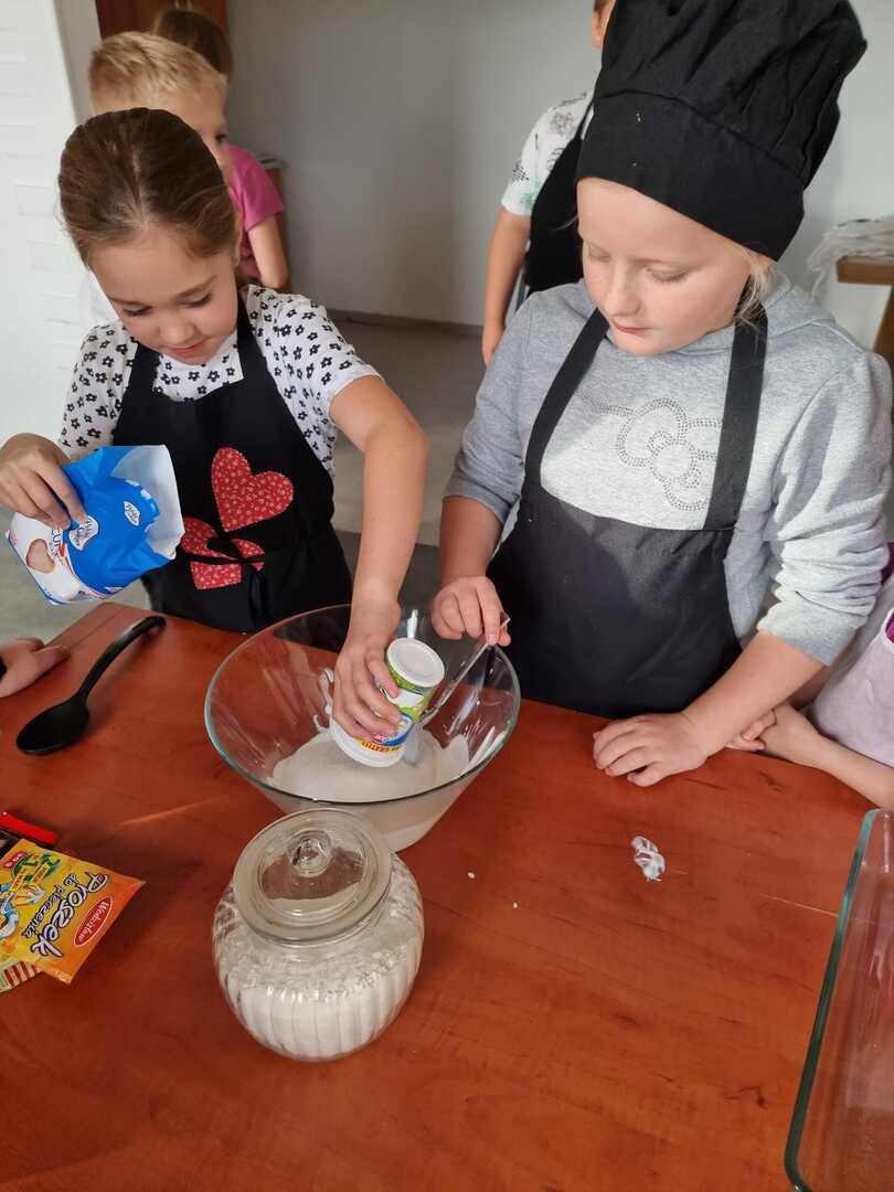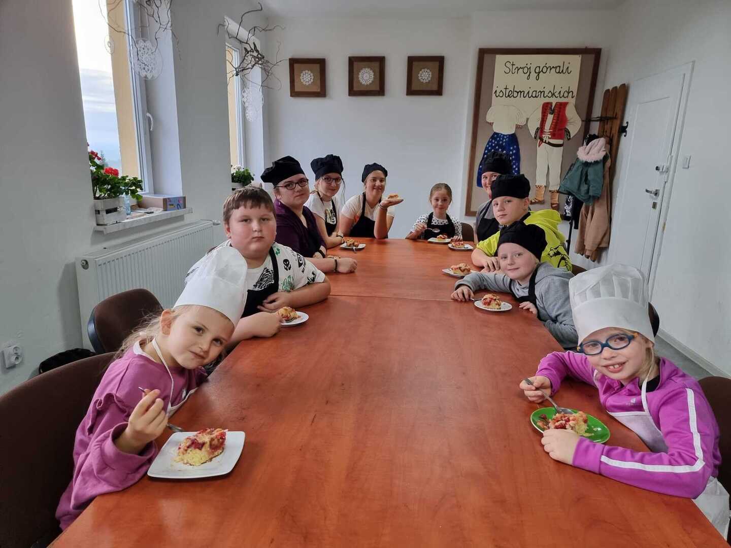 Kolejnym smakołykiem było jogurtowe, delikatne ciasto ze śliwkami - propozycja na słodki jesienny podwieczorek. Dzieci z niecierpliwością czekały aż się upiecze. Wypiek wyszedł wspaniale i zniknął w mgnieniu oka!