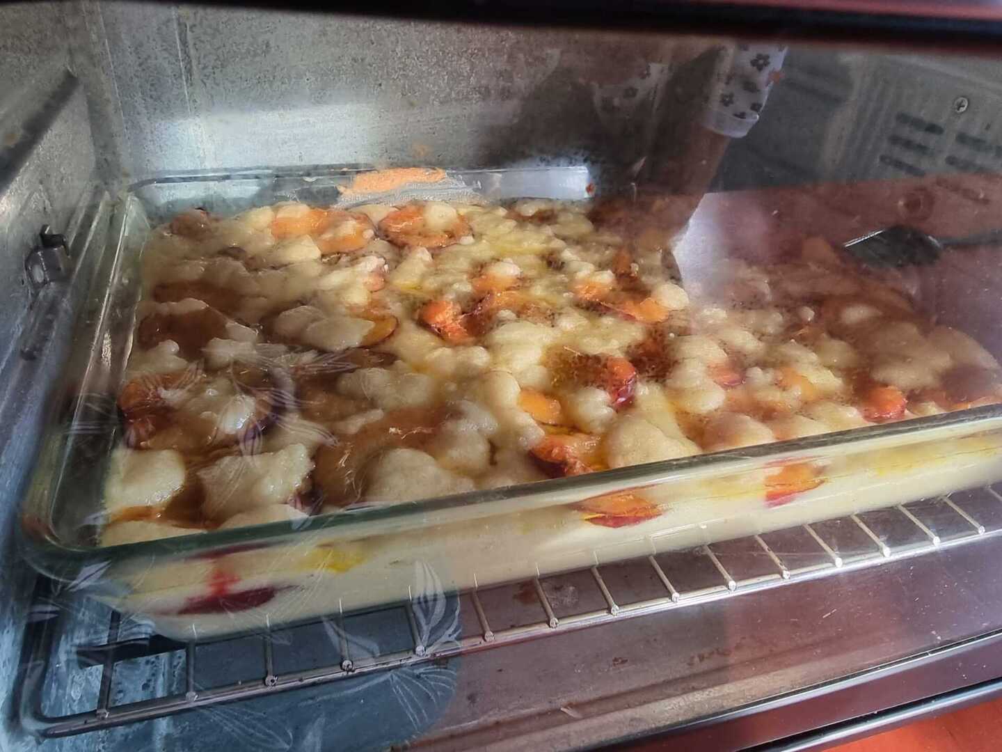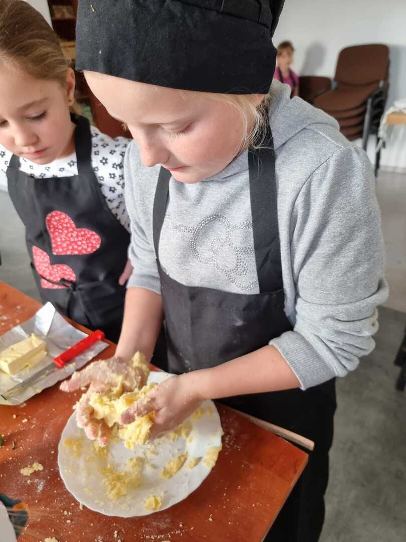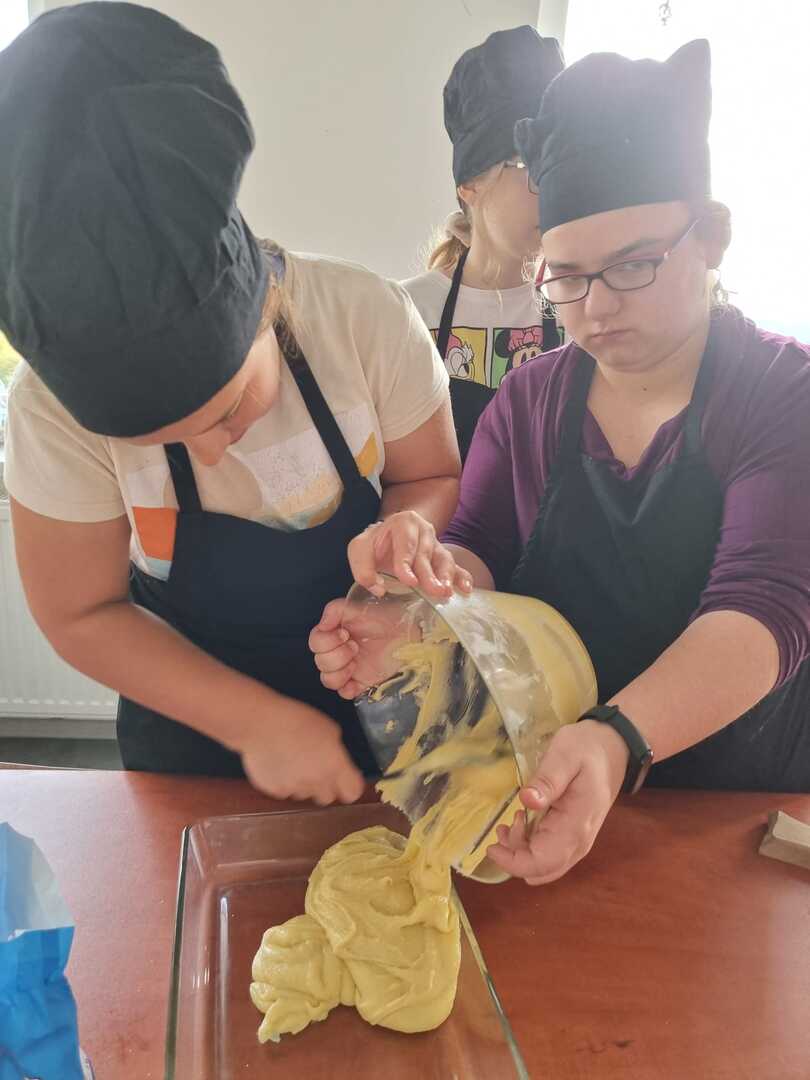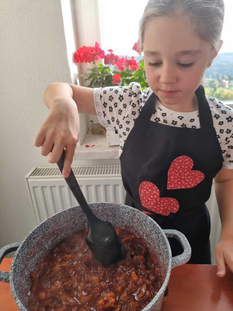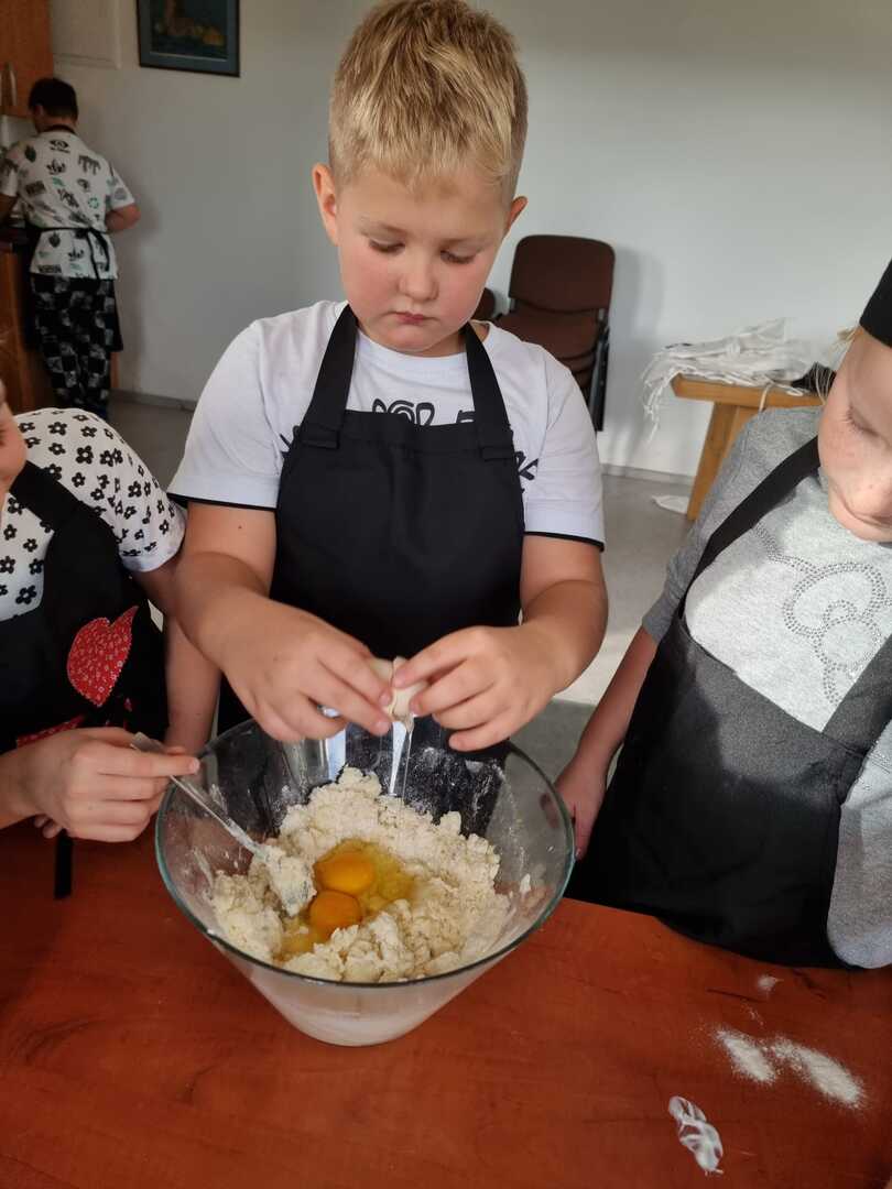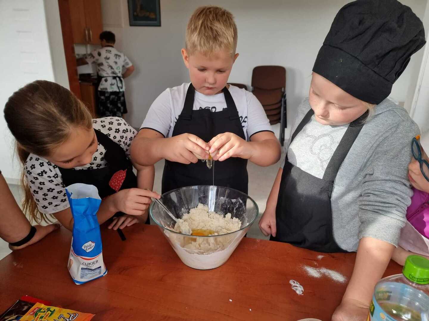 Kolejnym smakołykiem było jogurtowe, delikatne ciasto ze śliwkami - propozycja na słodki jesienny podwieczorek. Dzieci z niecierpliwością czekały aż się upiecze. Wypiek wyszedł wspaniale i zniknął w mgnieniu oka!
