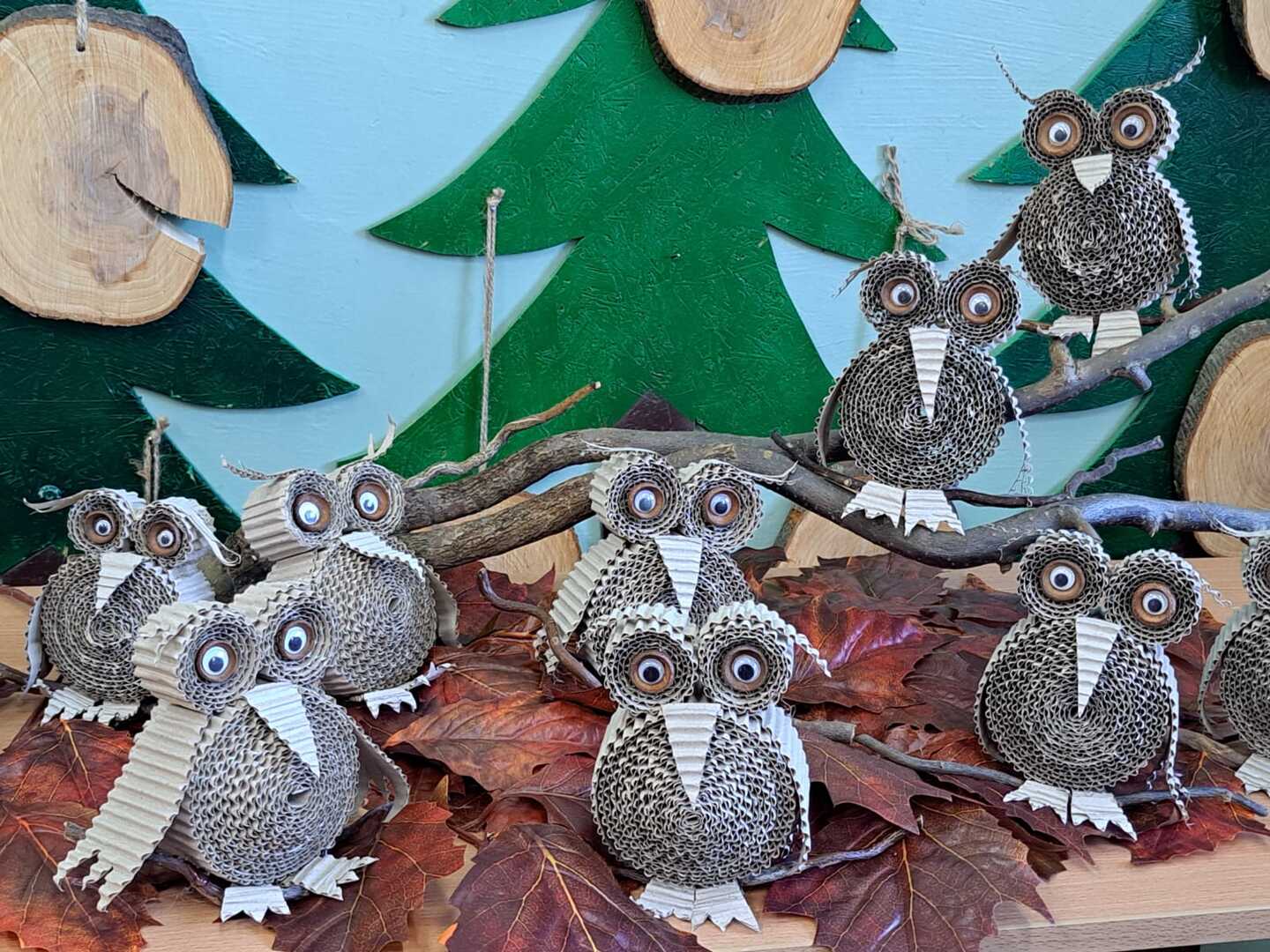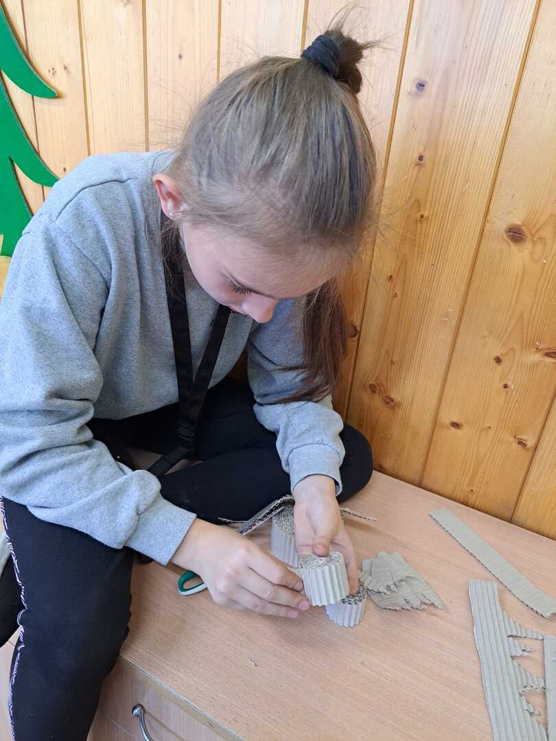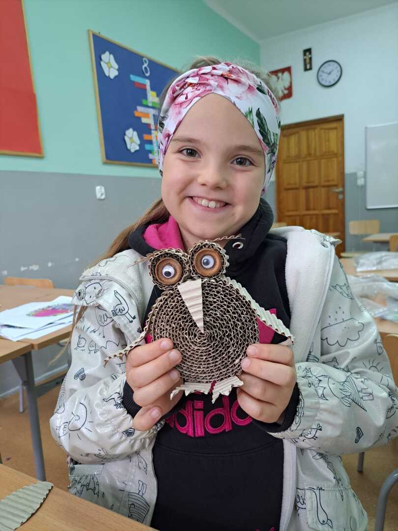 Upłynęło ono na tworzeniu wyjątkowej sowy z falowanej tektury, która to posłużyła jako główny materiał do projektu. Przygoda z tego typu materiałem wymagała precyzji i sporej cierpliwości.