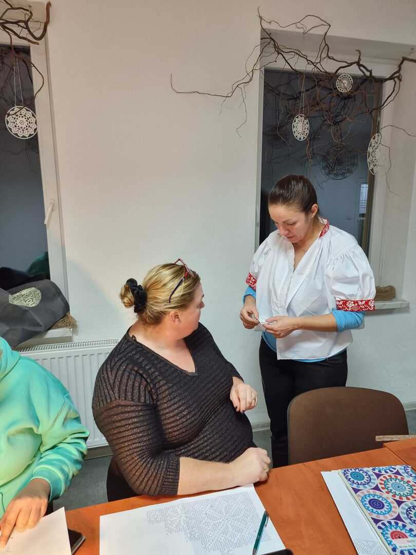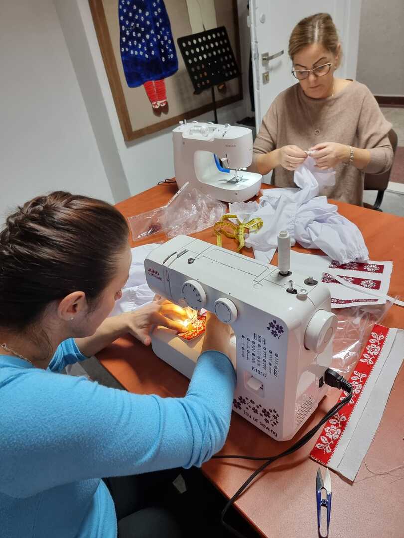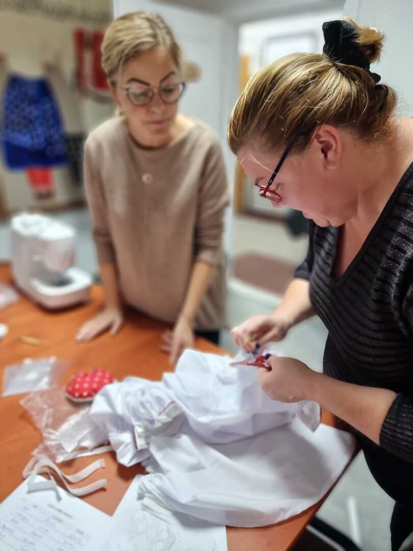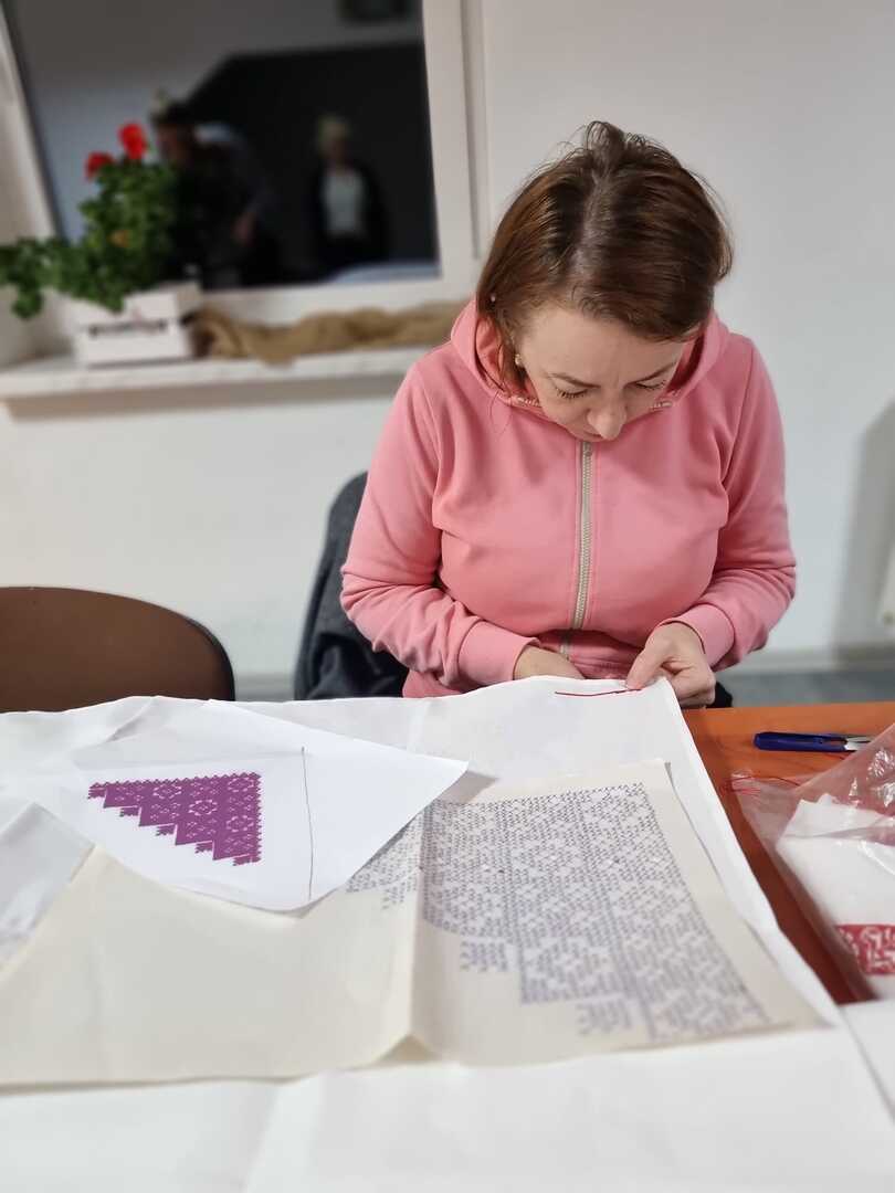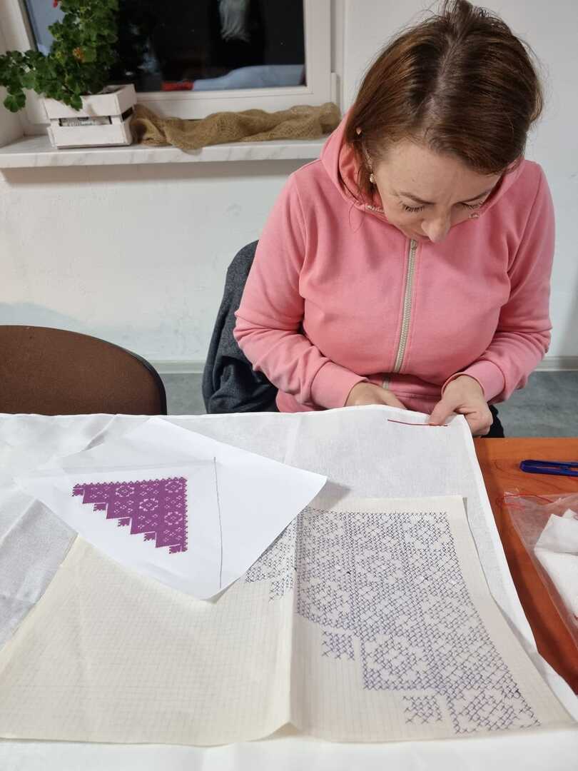 Podczas wczorajszych zajęć, pod okiem Katarzyny Suszka uczestniczki kontynuowały naukę szycia kabotków i wyszywania chust czepinowych. Widać piękne efekty długich godzin spędzonych nad wyszyciami. To prawie gotowe, nowe elementy stroju regionalnego, nad których powstaniem wytrwale pracujemy od maja.