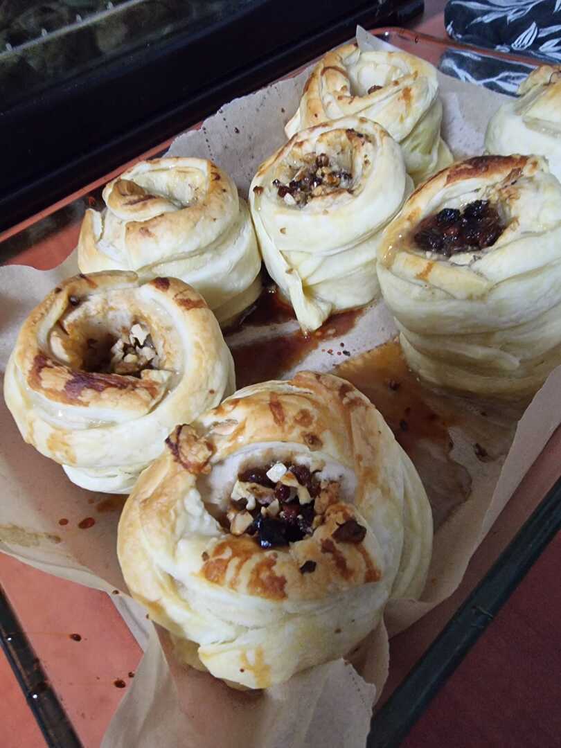 Owoce starannie owinęliśmy w ciasto francuskie.