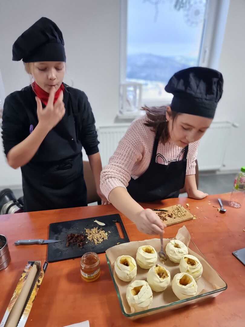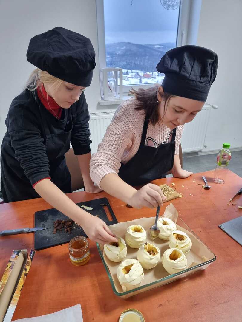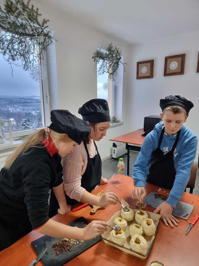 Ognisko Pracy Pozaszkolnej w Koniakowie podjęło się wykonania tego aromatycznego smakołyku wraz z prowadzącą, panią Ewą Macoszek-Dragon.