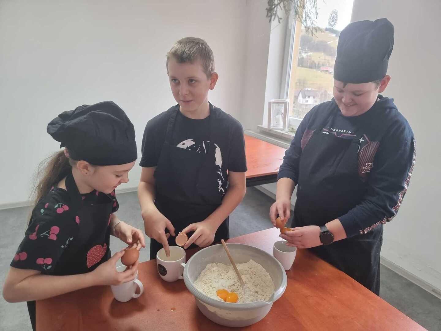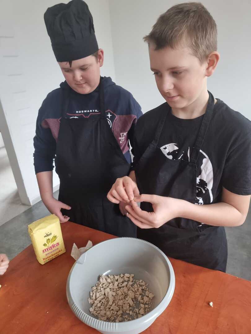 Mali adepci sztuki kulinarnej przekonali się, że do zarobienia ciasta potrzeba niemałej siły i wprawnej ręki.