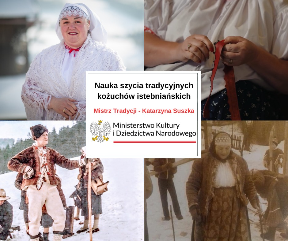 MISTRZ TRADYCJI 2024 Z wielką radością informujemy, że Fundacja Dziedzictwo działająca przy Ognisko Pracy Pozaszkolnej w Koniakowie otrzymała dofinansowanie Ministerstwo Kultury i Dziedzictwa Narodowego w ramach programu Kultura ludowa i tradycyjna na realizację projektu " Nauka szycia tradycyjnych kożuchów istebniańskich"