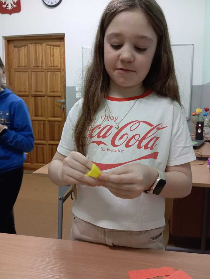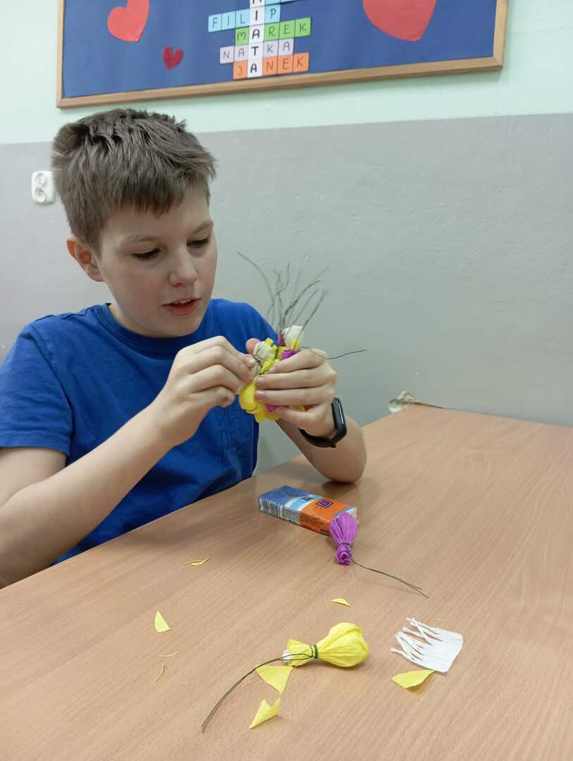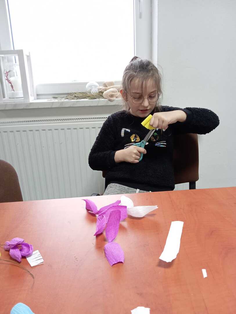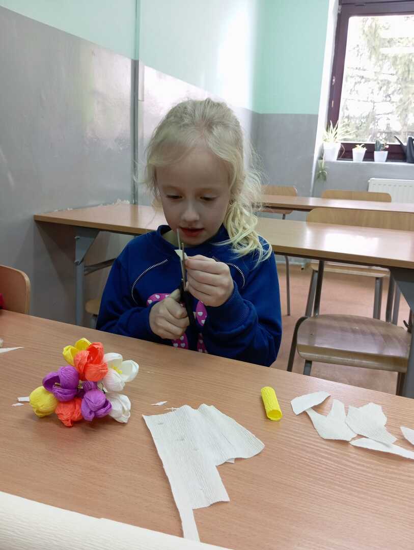 Kalendarz mówi, że wiosna i Wielkanoc nadchodzą wielkimi krokami, a na zajęciach naszego koła bibułkarskiego prowadzonego przez panią Kasię Suszkę panuje radosna atmosfera! Czas najwyższy na przygotowanie pięknej palmy wielkanocnej!