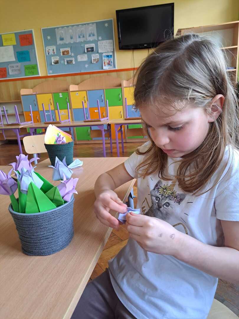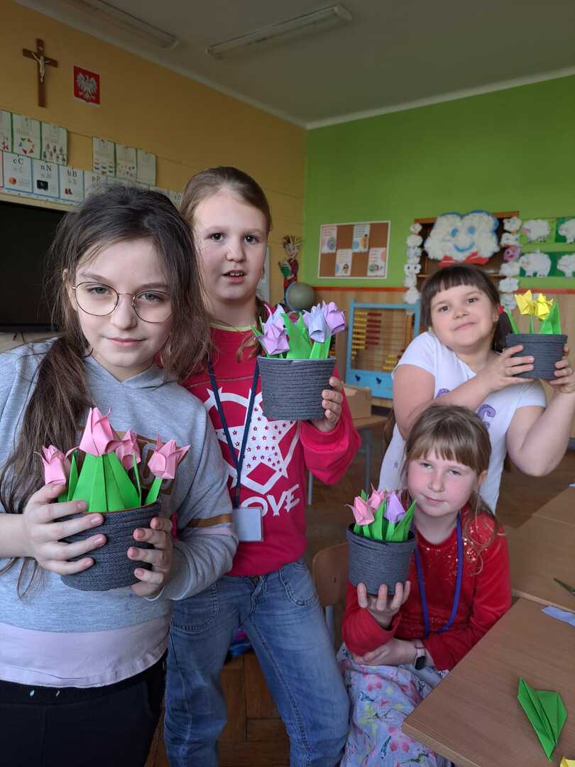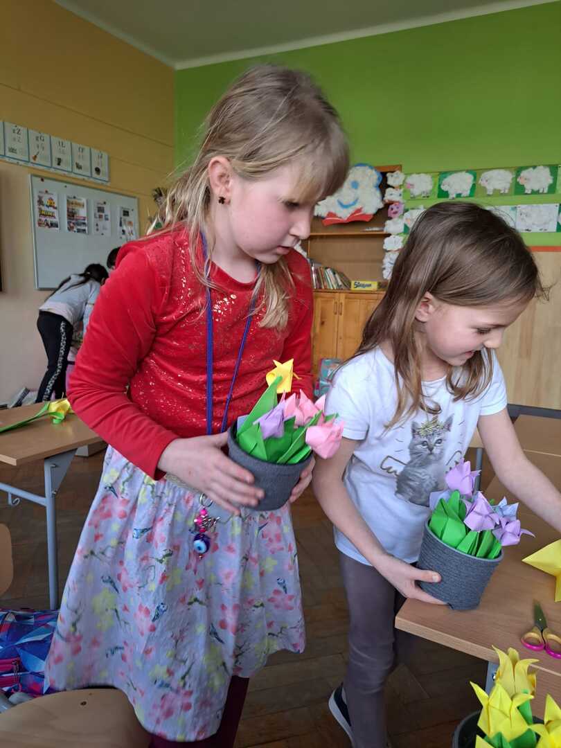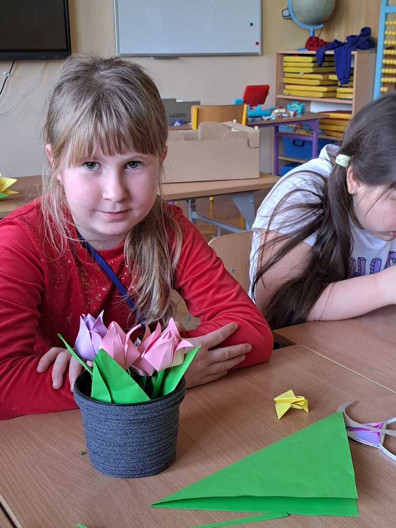 Wiosna ju偶 tu偶, tu偶, a my postanowili艣my przywita膰 j膮 w wyj膮tkowy sposób. Wykorzystuj膮c magiczn膮 technik臋 origami, na zaj臋ciach ko艂a zr臋cznych r膮k prowadzonych przez pani膮 Agat臋 Polok stworzyli艣my wyj膮tkowe bukiety tulipanów.