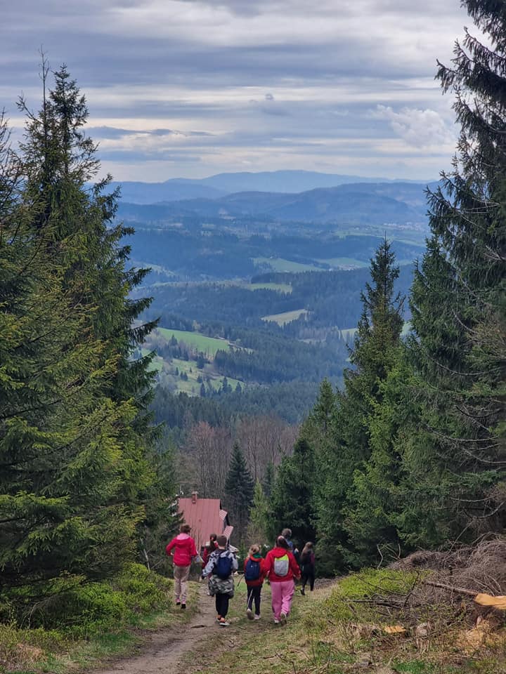 Wędrówkę rozpoczęli od strony Jaworzynki. Czerwonym szlakiem dotarli na Komorovský Grúň a następnie na szczyt Girowej 840 mnp.