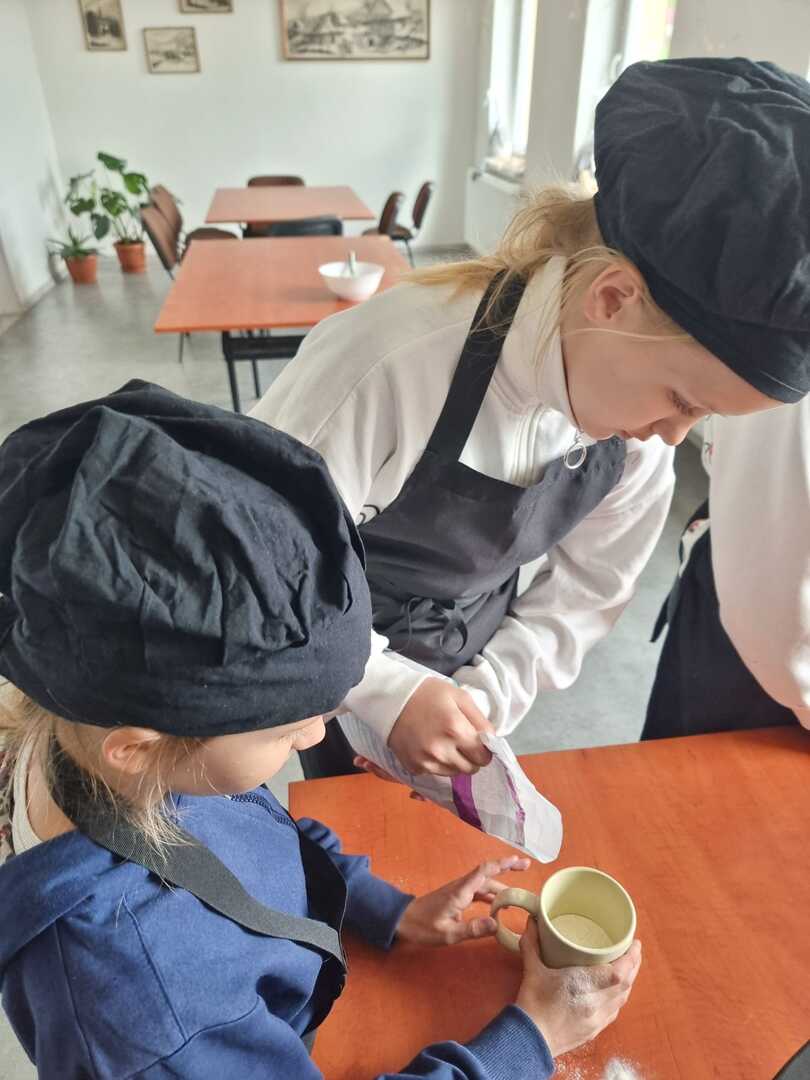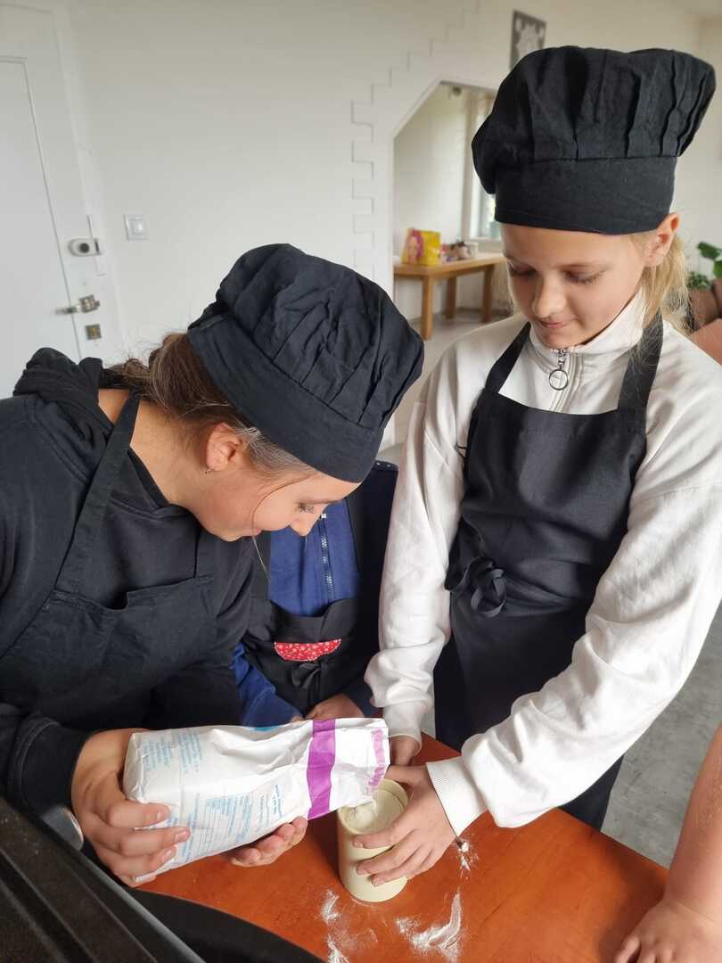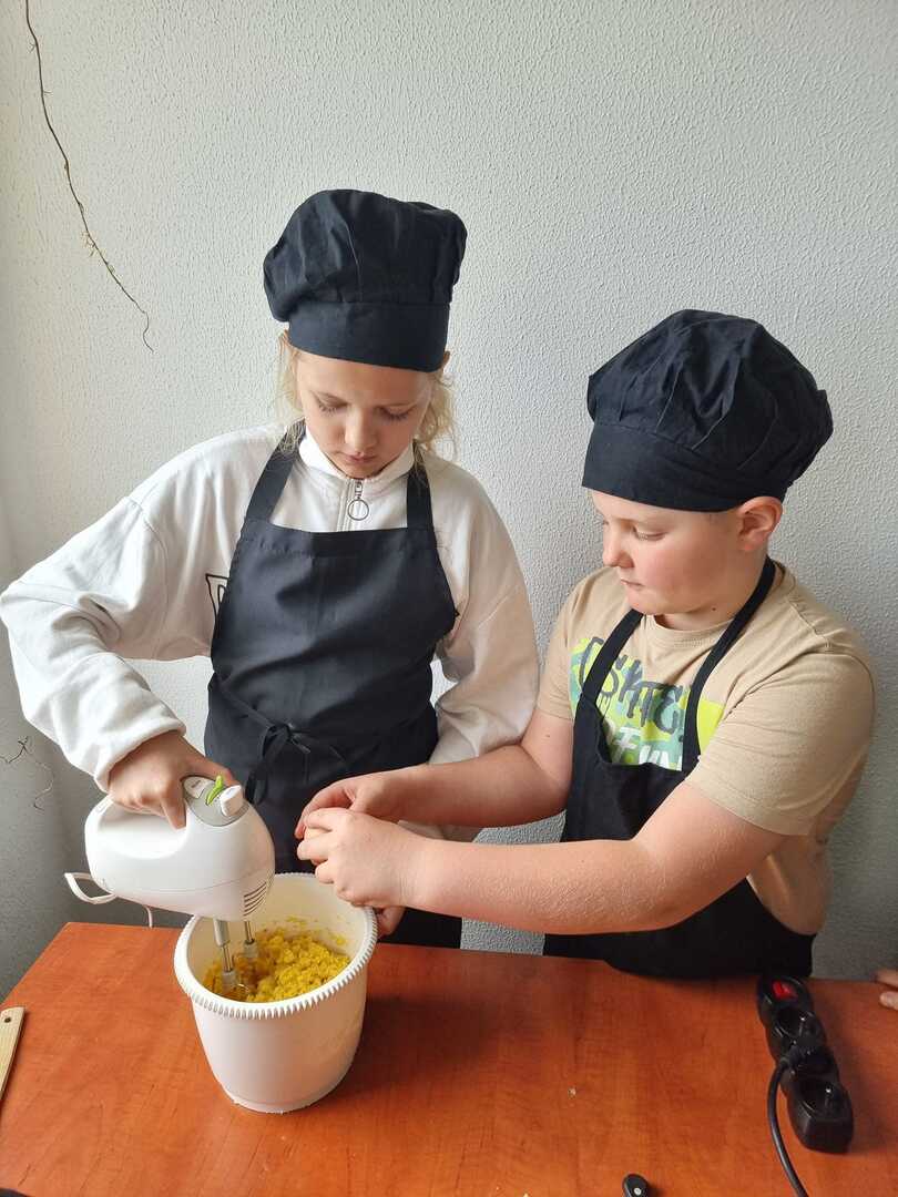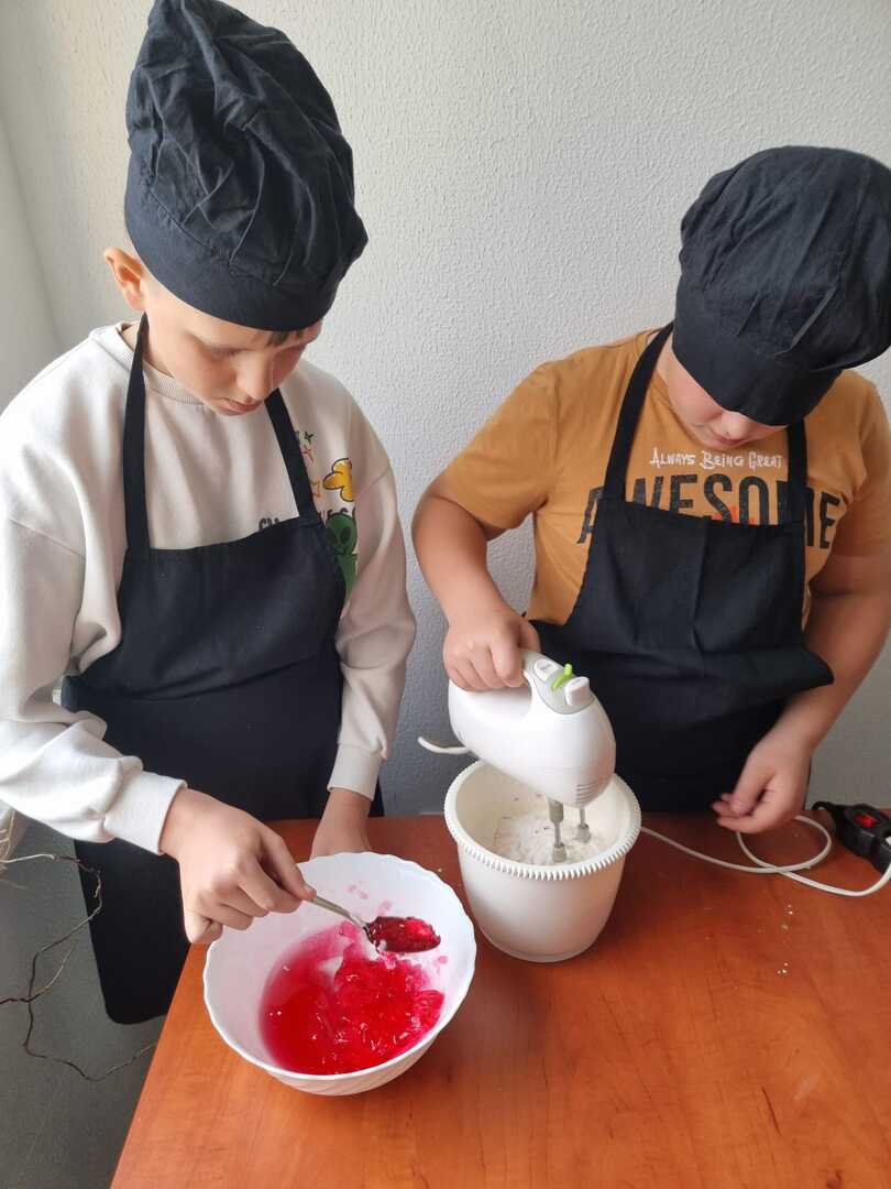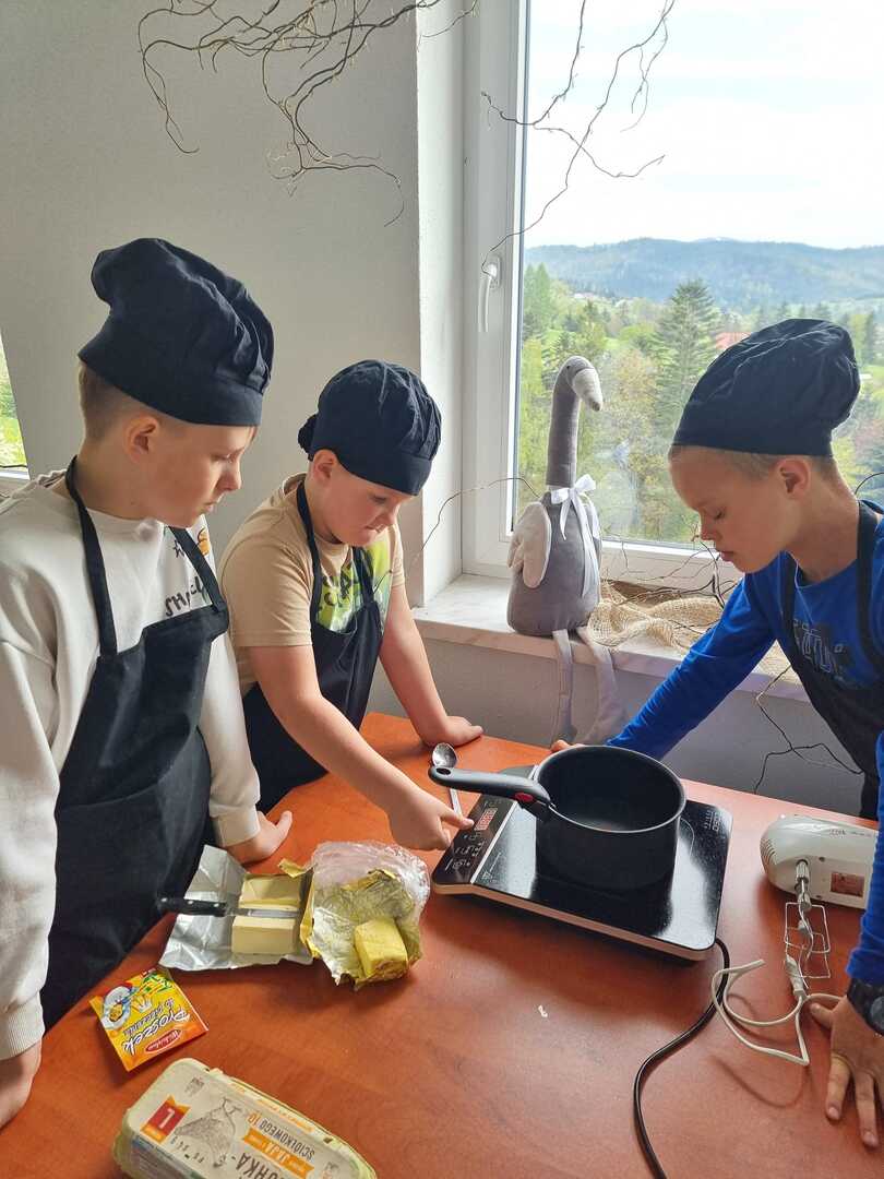 Mali cukiernicy pod kierunkiem prowadzącej pani Ewy Macoszek-Dragon przygotowali najpierw ciasto parzone, które następnie wyciskali przez szpryckę i piekli na złoty kolor. Inni przygotowywali puszysty krem, który dzięki owocowej galaretce zyskał różowy kolor i malinowy posmak.