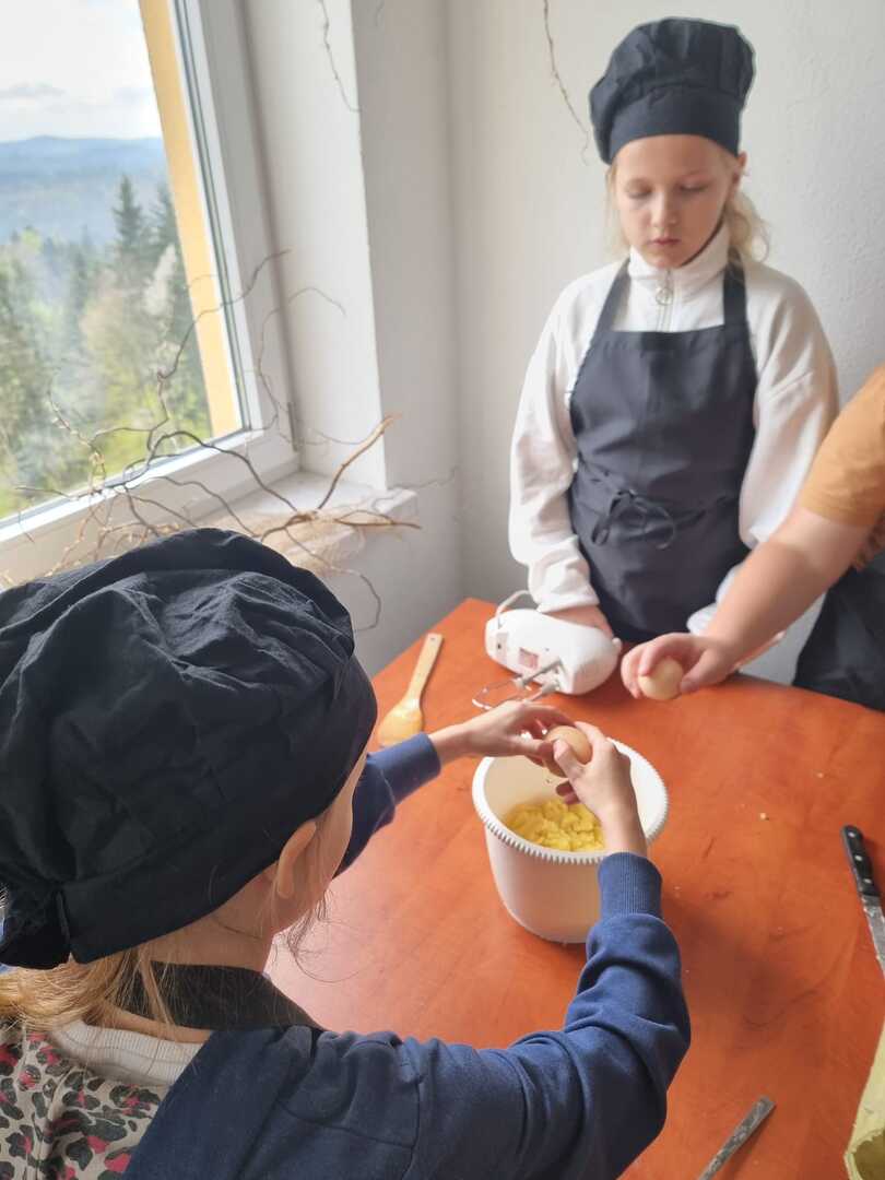 W nagrodę za pracę i cierpliwość na koniec mogliśmy wspólnie delektować się ptysiami delikatnymi jak małe obłoczki na koniakowskim niebie.