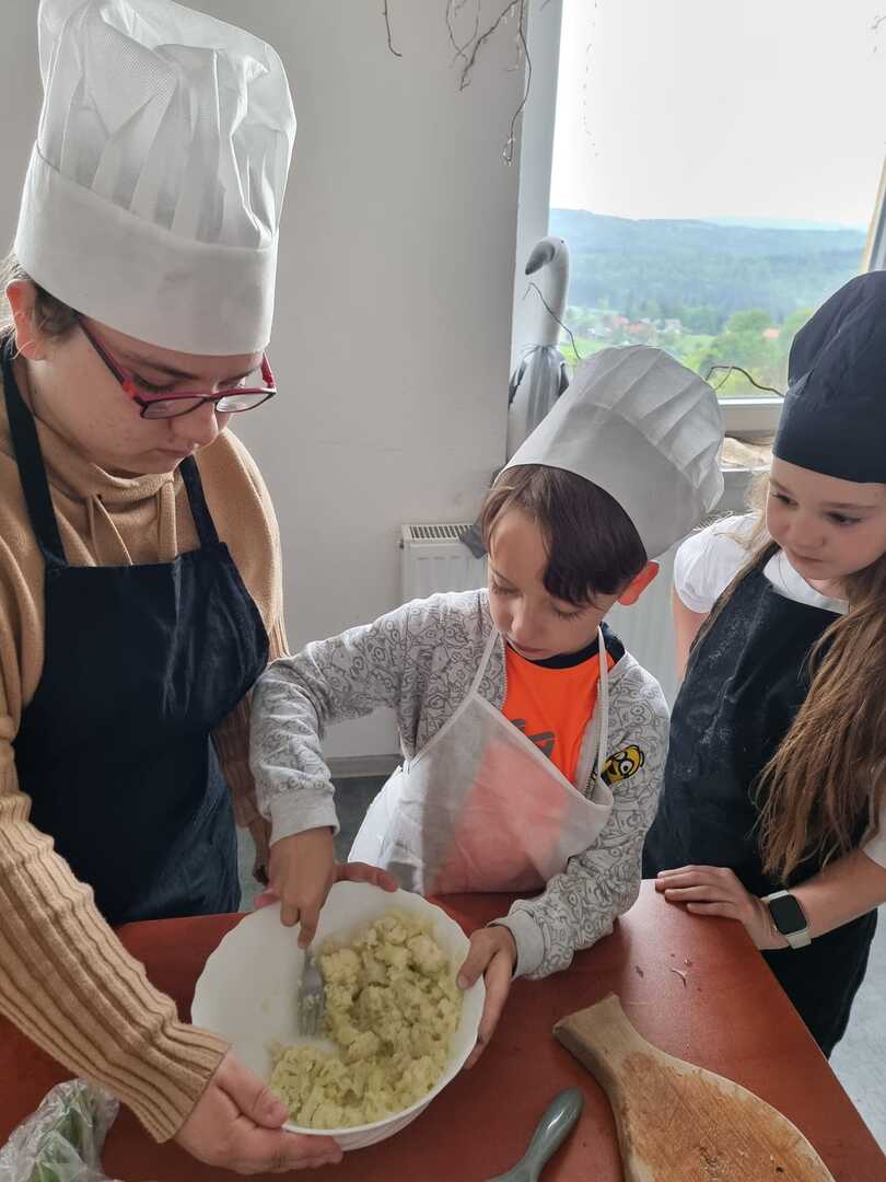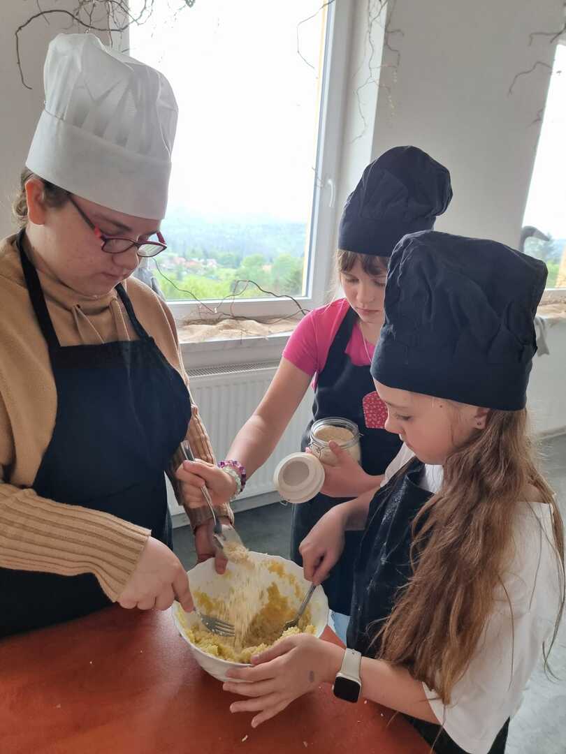Podopieczni pani Ewy Macoszek - Dragon mieli okazję przygotować dwa warianty dania - złociste kotleciki z kalafiora i chrupiące różyczki, panierowane w bułce tartej i usmażone. Podaliśmy je w towarzystwie ziemniaczków posypanych koperkiem. Podczas degustacji nawet ci, którzy zarzekali się, że nie znoszą kalafiora, odkryli go na nowo i nawet zadeklarowali, że wykonają takie danie u siebie w domu.