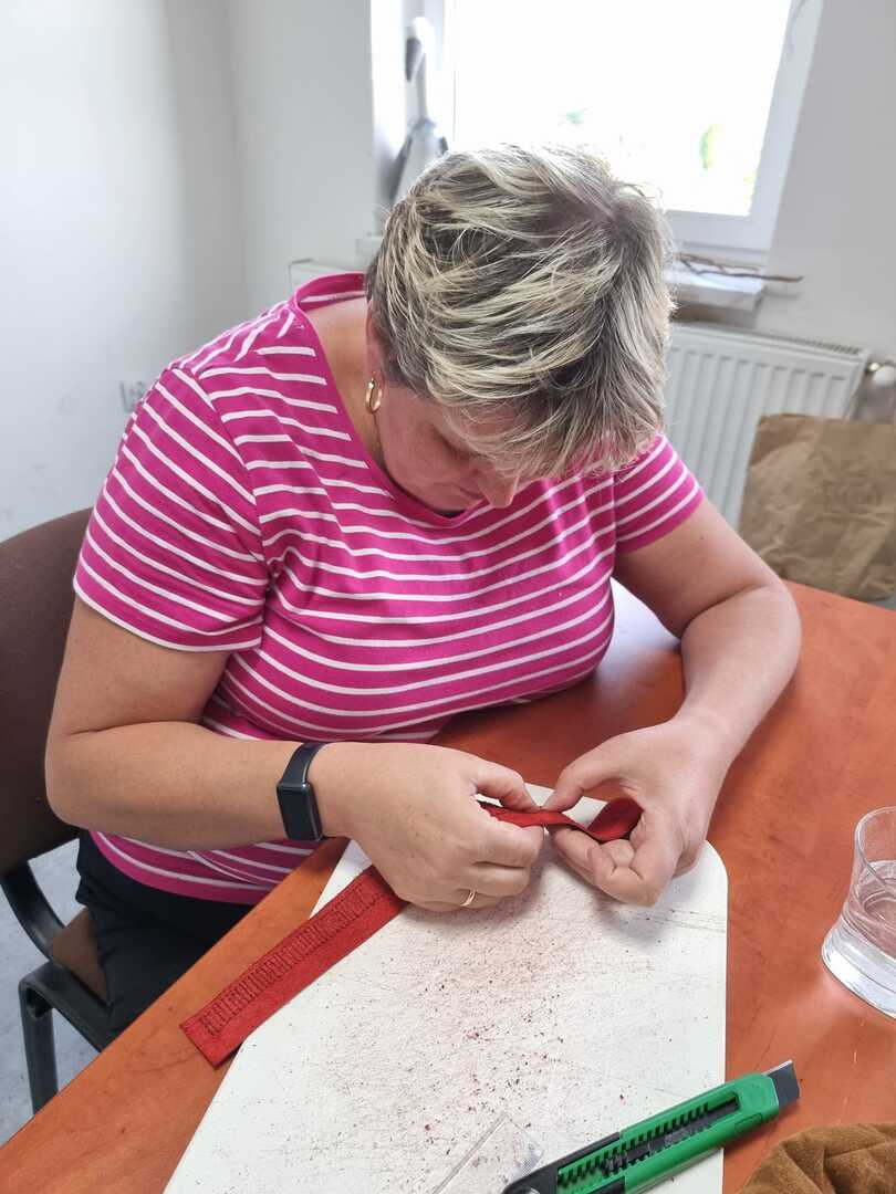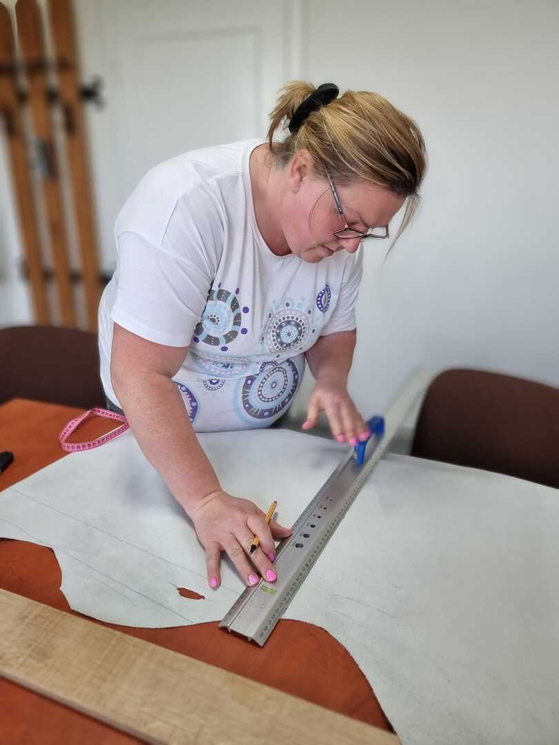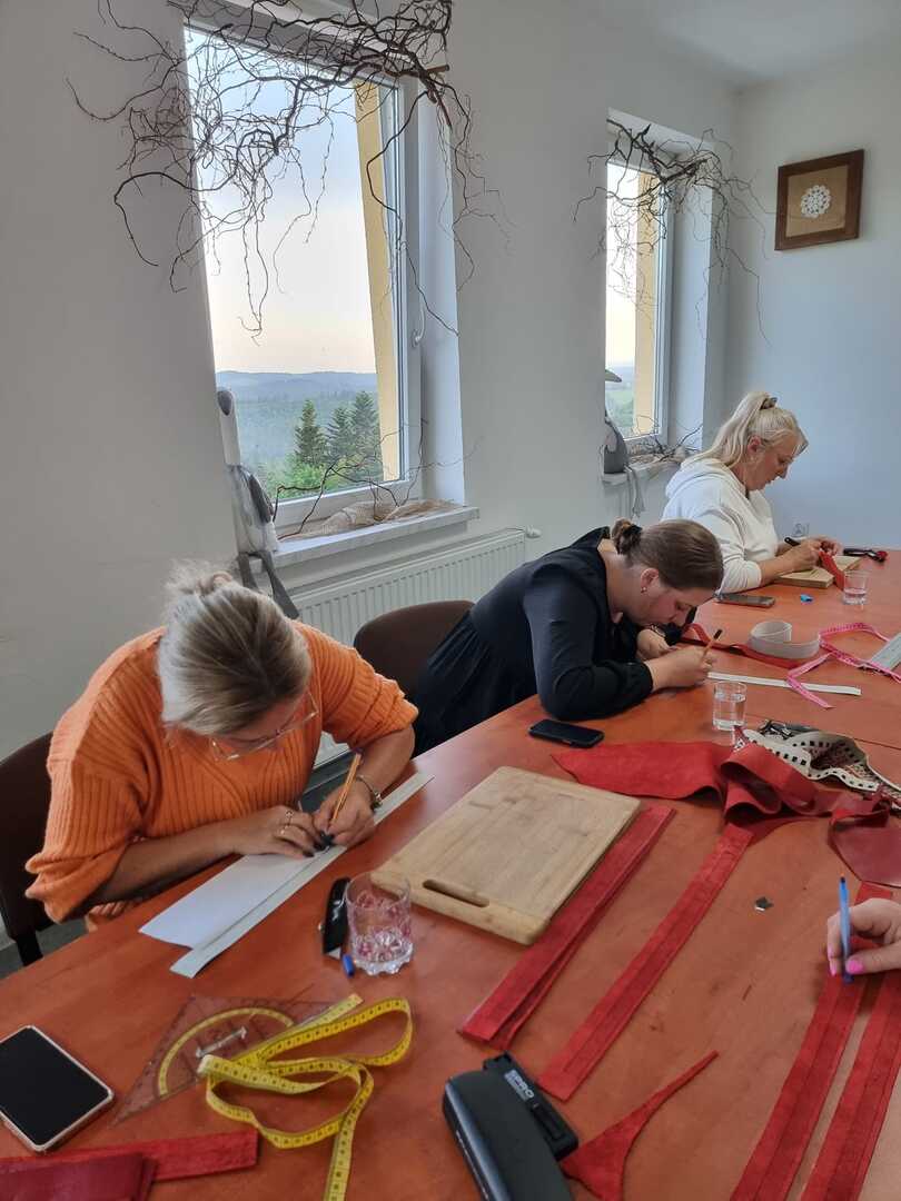 Zaj臋cia prowadzone s膮 przez Katarzyn臋 Suszk臋. Za nami ju偶 trzecie spotkanie, a my nadal skupiamy si臋 na naszych precyzyjnych "wycinankach" z czerwonej i bia艂ej skóry, które b臋d膮 stanowi膰 zdobienie ko偶ucha.