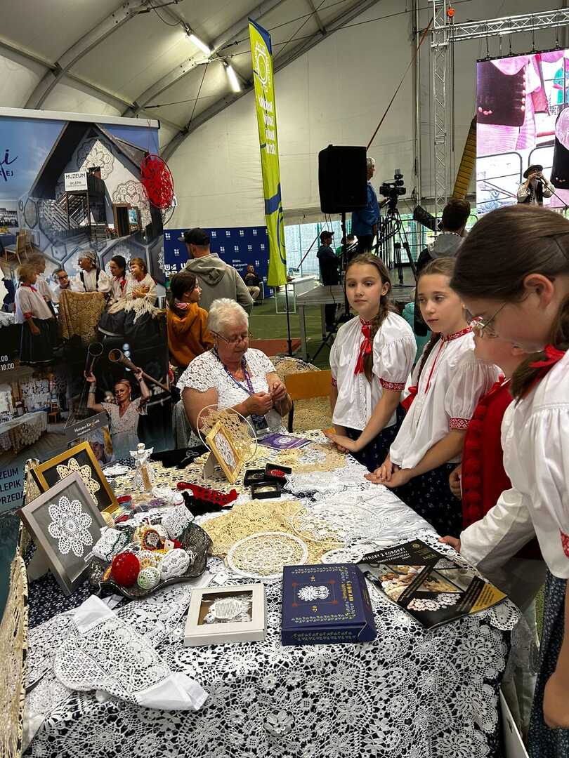 Był to dla nich ciekawy, pełen wrażeń wyjazd , a na miejscu nie brakło znajomych koniakowskich akcentów. Dzieci odwiedziły między innymi stoisko Centrum Koronki Koniakowskiej i podziwiały koncert Pana Józefa Brody.