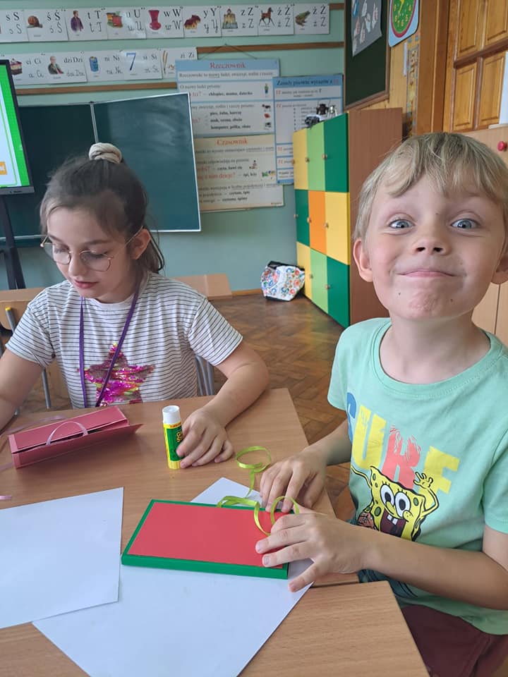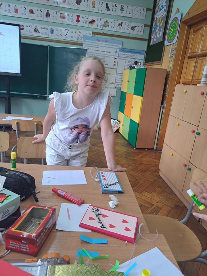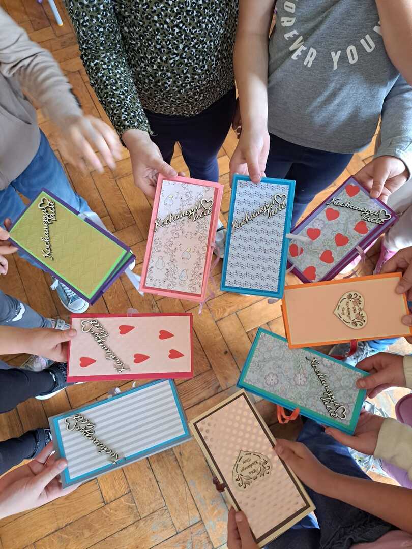 Po wykonaniu ozdobnego pude艂eczka, podopieczni wraz z pani膮 Agat膮 udali si臋 do sklepu, aby wybra膰 ulubion膮 czekolad臋 swojego taty. Po powrocie, z ogromnym zaanga偶owaniem i precyzj膮, pakowali s艂odko艣ci w pi臋knie ozdobione czekoladowniki.