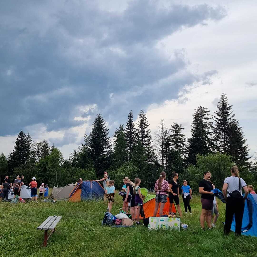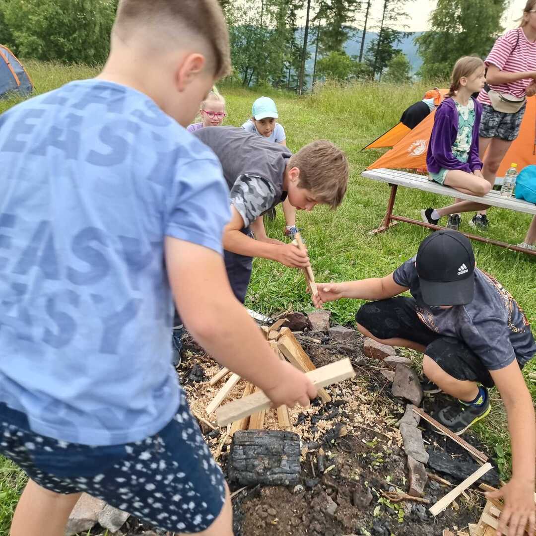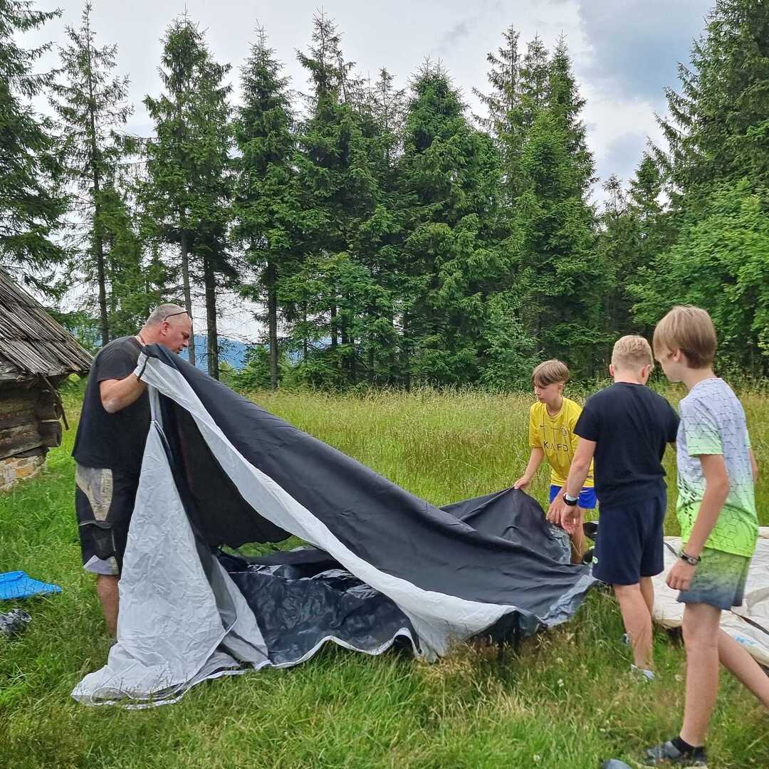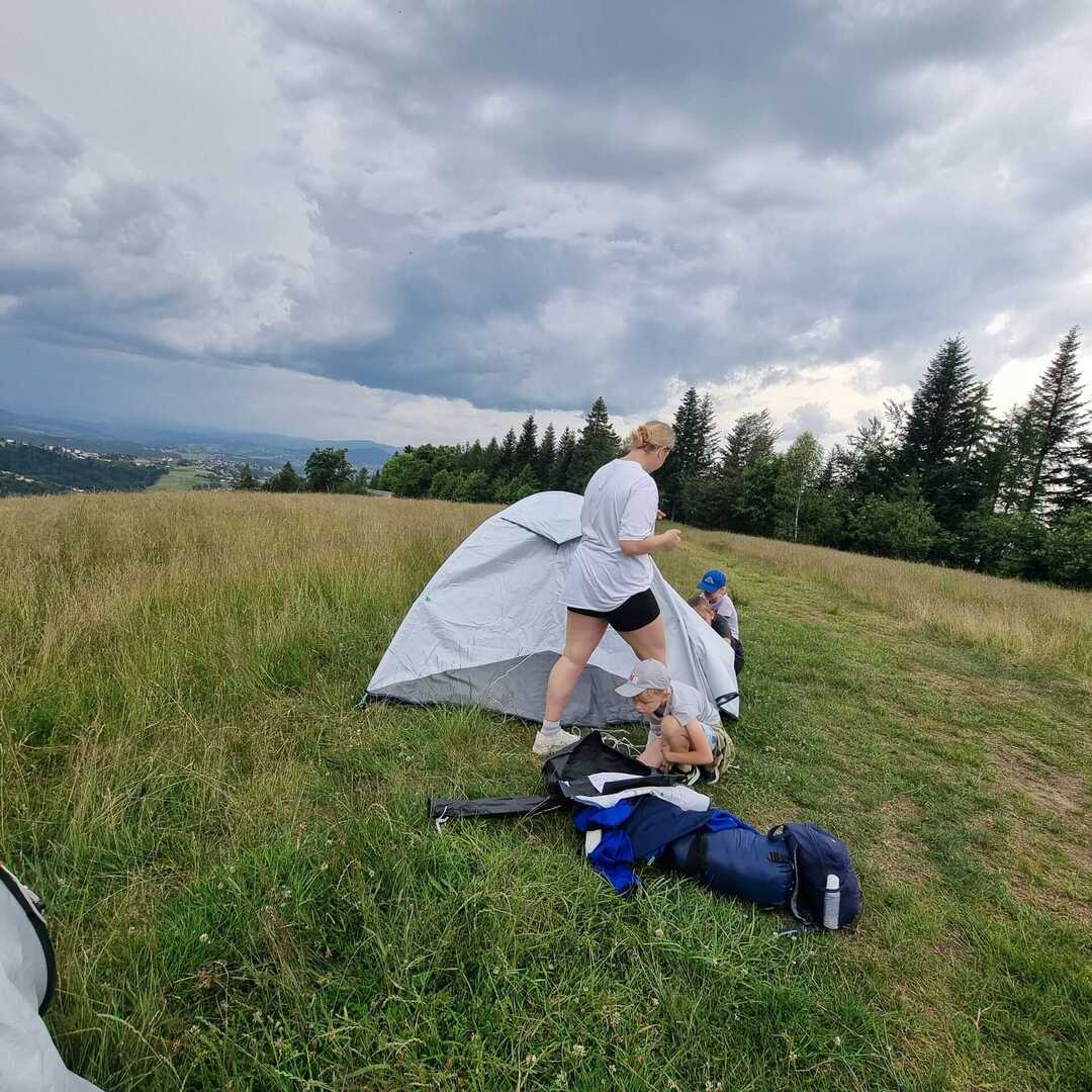 Rozpoczęliśmy oczywiście od rozbicia obozowiska , co nie tylko uczy pracy zespołowej, ale także sprzyja integracji. Dzięki wspólnym wysiłkom, w których uczestniczyli również rodzice