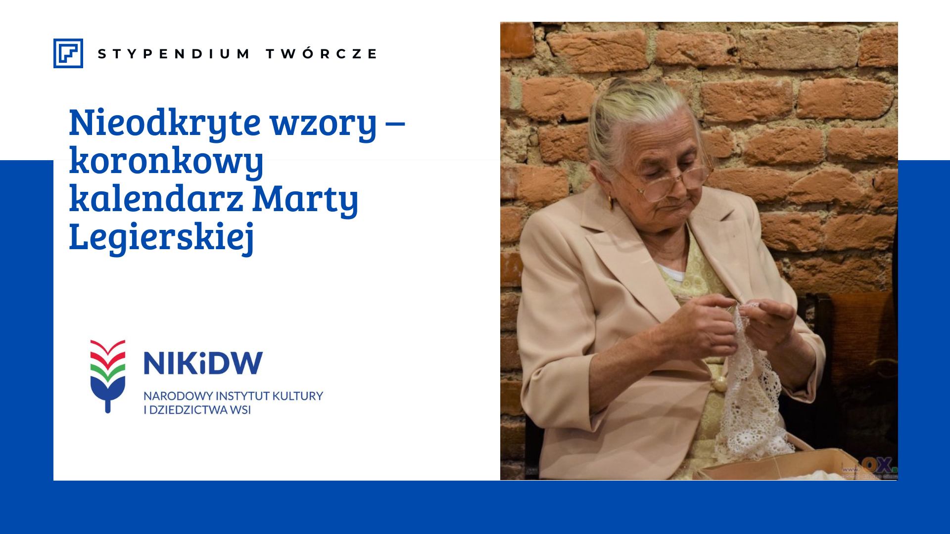 Dzięki stypendium pani Marta stworzy 12 unikatowych koronkowych motywów, inspirowanych kolejnymi miesiącami roku. Tym razem powstał kolejny unikatowy kwiotek "szyszka". Letnie dni i sierpniowe światło sprzyjają heklowaniu - zobaczcie tylko jak pani Marta w zaciszu przydomowego ogrodu oddaje się pracy, która niezmiennie od ponad 80 lat przynosi jej wielką radość. .
