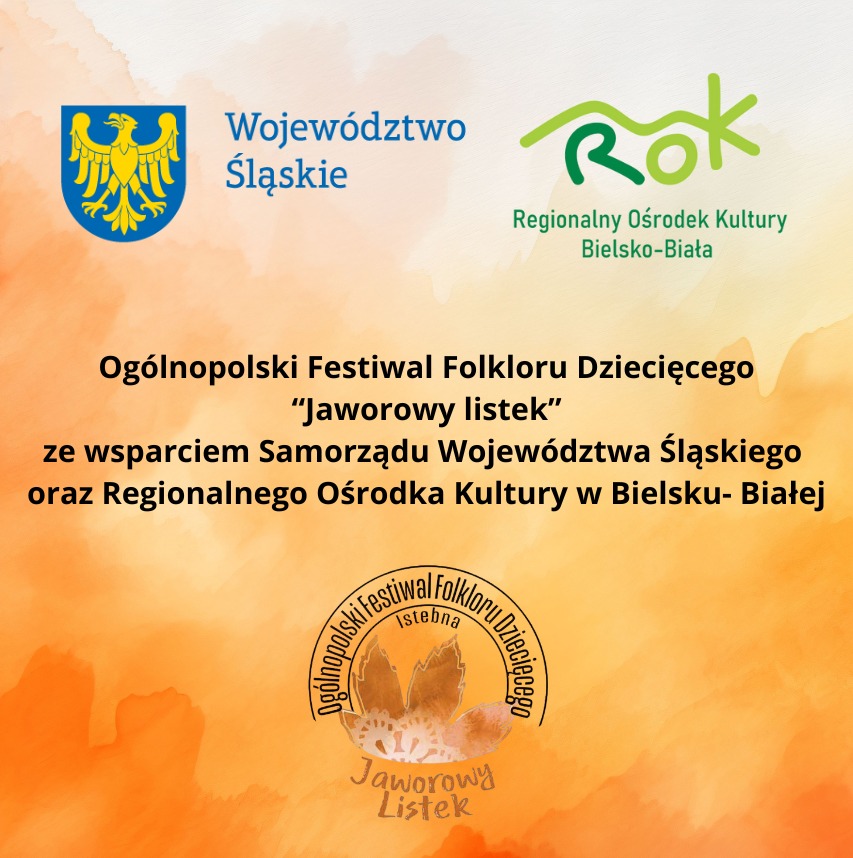 Mimo deszczu są powody do radości! Nasz I Ogólnopolski Festiwal Folkloru Dziecięcego „ Jaworowy Listek” został dofinansowany przez Urząd Marszałkowski Województwa Śląskiego Śląskie. Pozytywna energia oraz Regionalny Ośrodek Kultury w Bielsku-Białej!
