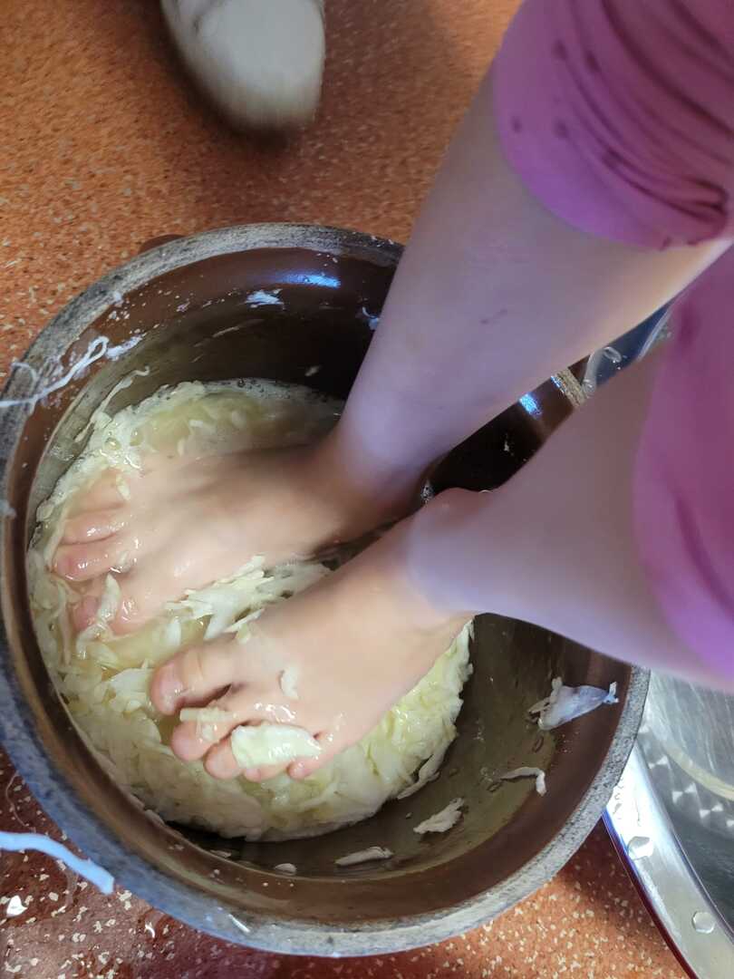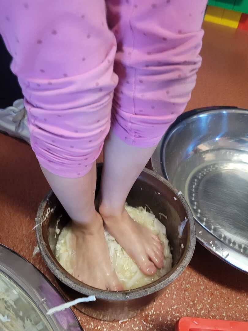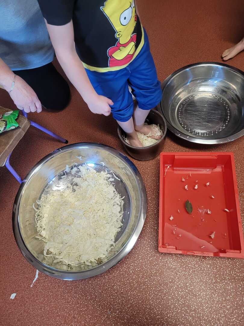 Dzieci samodzielnie szatkowały kapustę, a potem ugniatały ją bosymi stopami. Przy okazji dowiedziały się, jakie przyprawy dodać, by kapusta nabrała wyjątkowego smaku