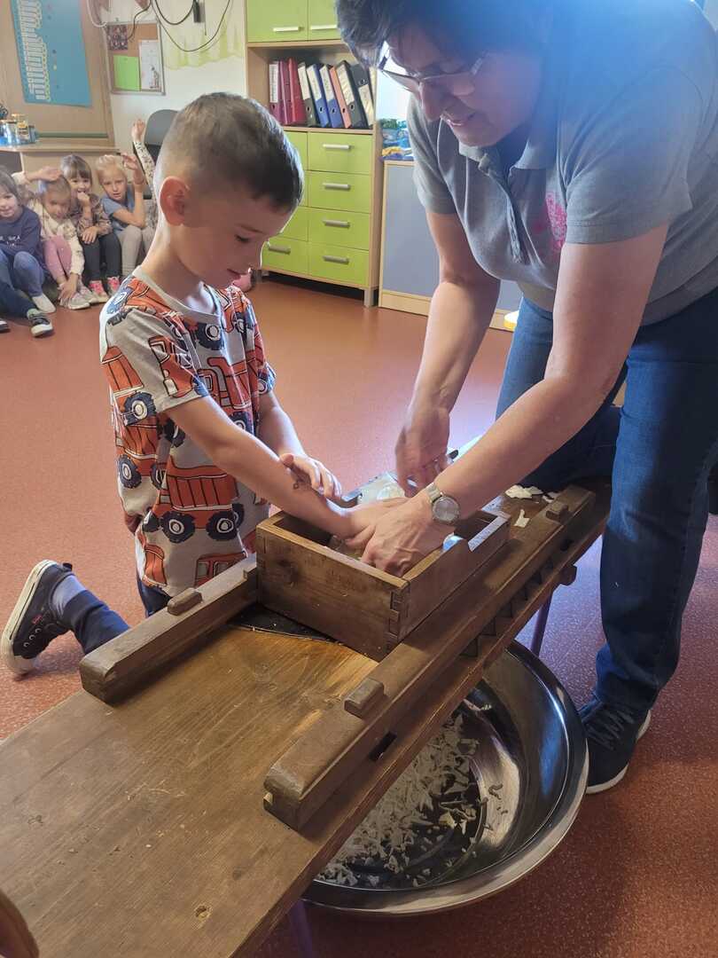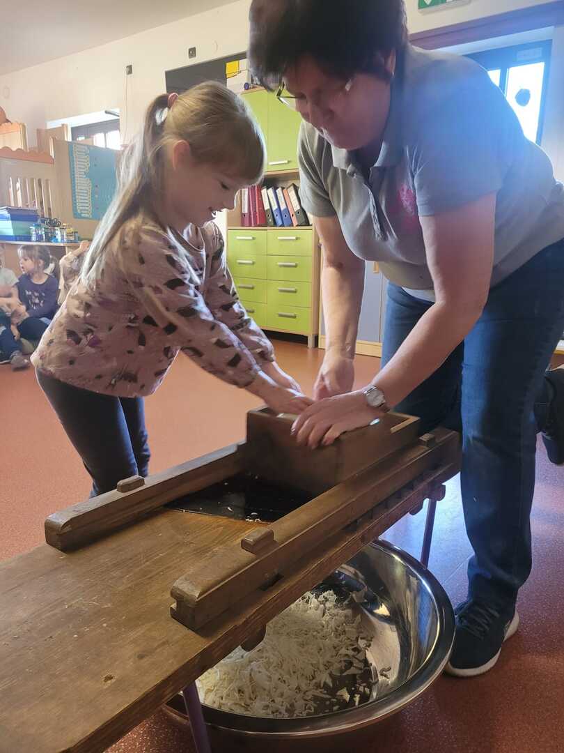Przedszkole "Miglanc" miały okazję poznać tajniki kiszenia kapusty. Warsztaty poprowadzone z pomocą gospodyń z