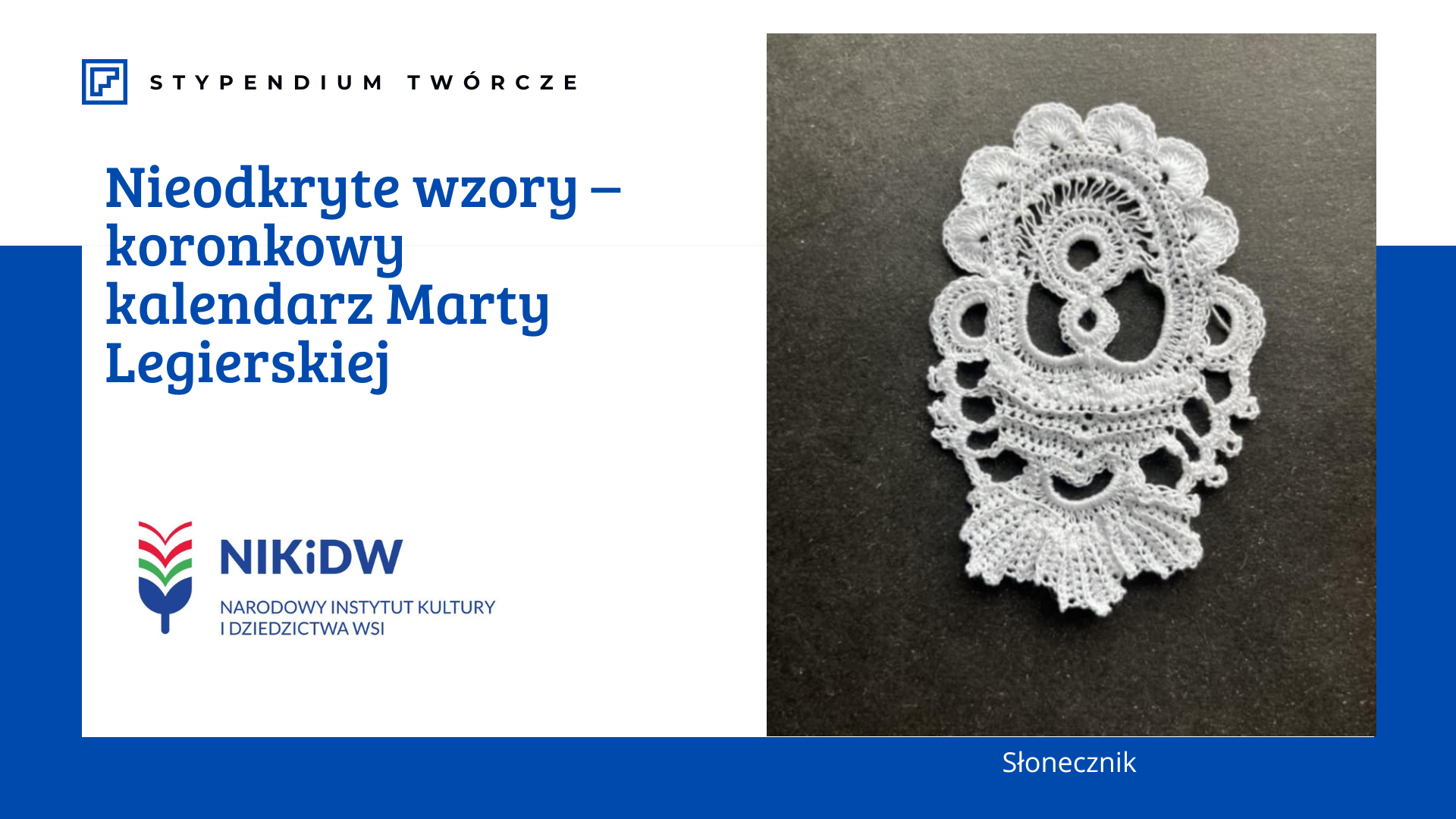Ten wyjątkowy motyw ozdobi kolejny miesiąc w koronkowym kalendarzu, tworzonym w ramach stypendium "Nieodkryte wzory Marty Legierskiej". Projekt powstaje we współpracy z Ogniskiem Pracy Pozaszkolnej w Koniakowie