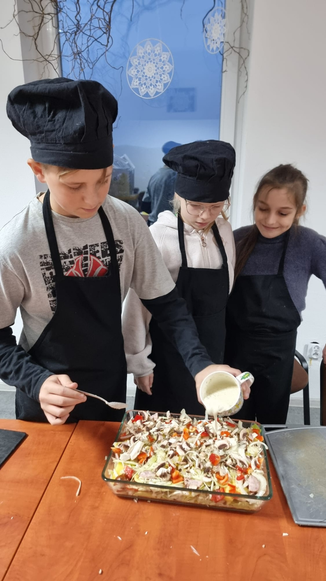 Ewa Macoszek-Dragon nauczyli się przygotowywać zapiekankę chłopską – prostą, ale niezwykle smaczną potrawę. Dzieci dowiedziały się, jak szybko można stworzyć coś pysznego z łatwo dostępnych składników, które często znajdziemy w lodówce.
