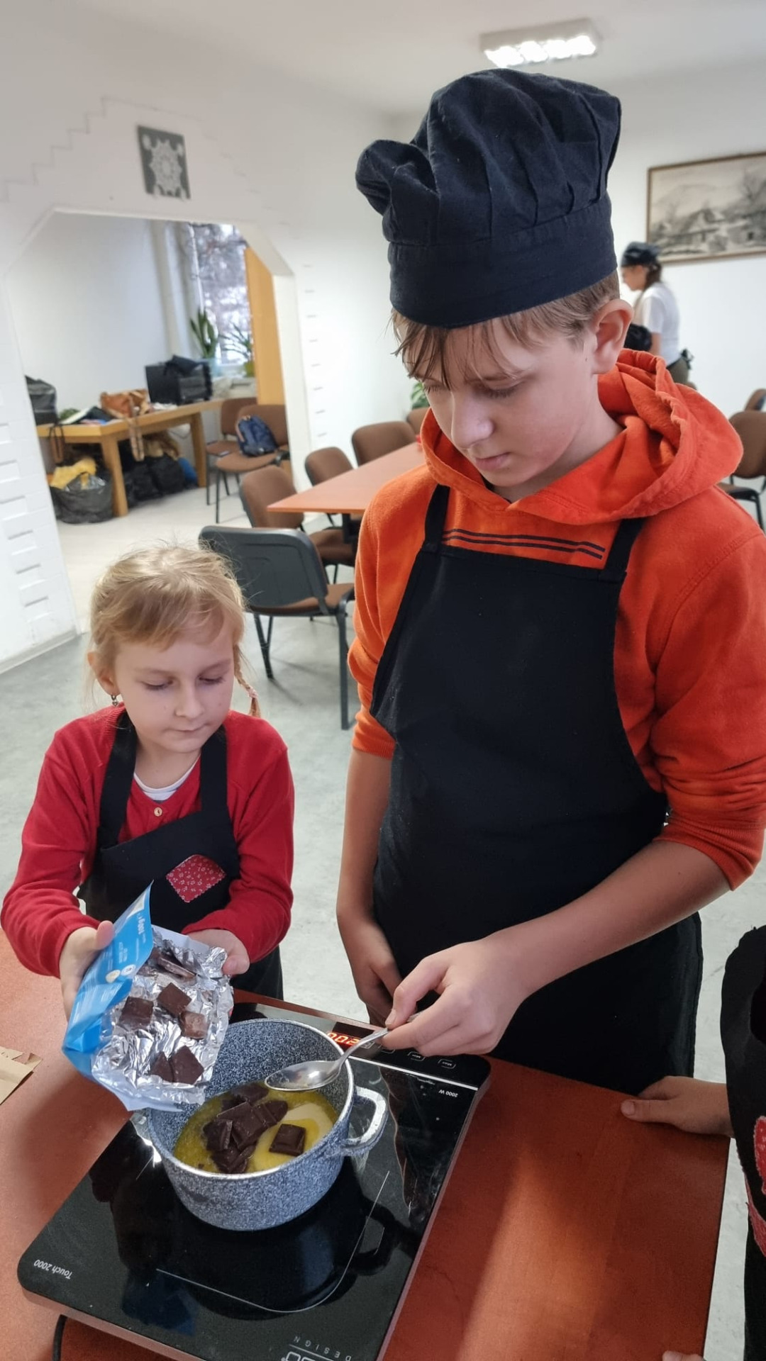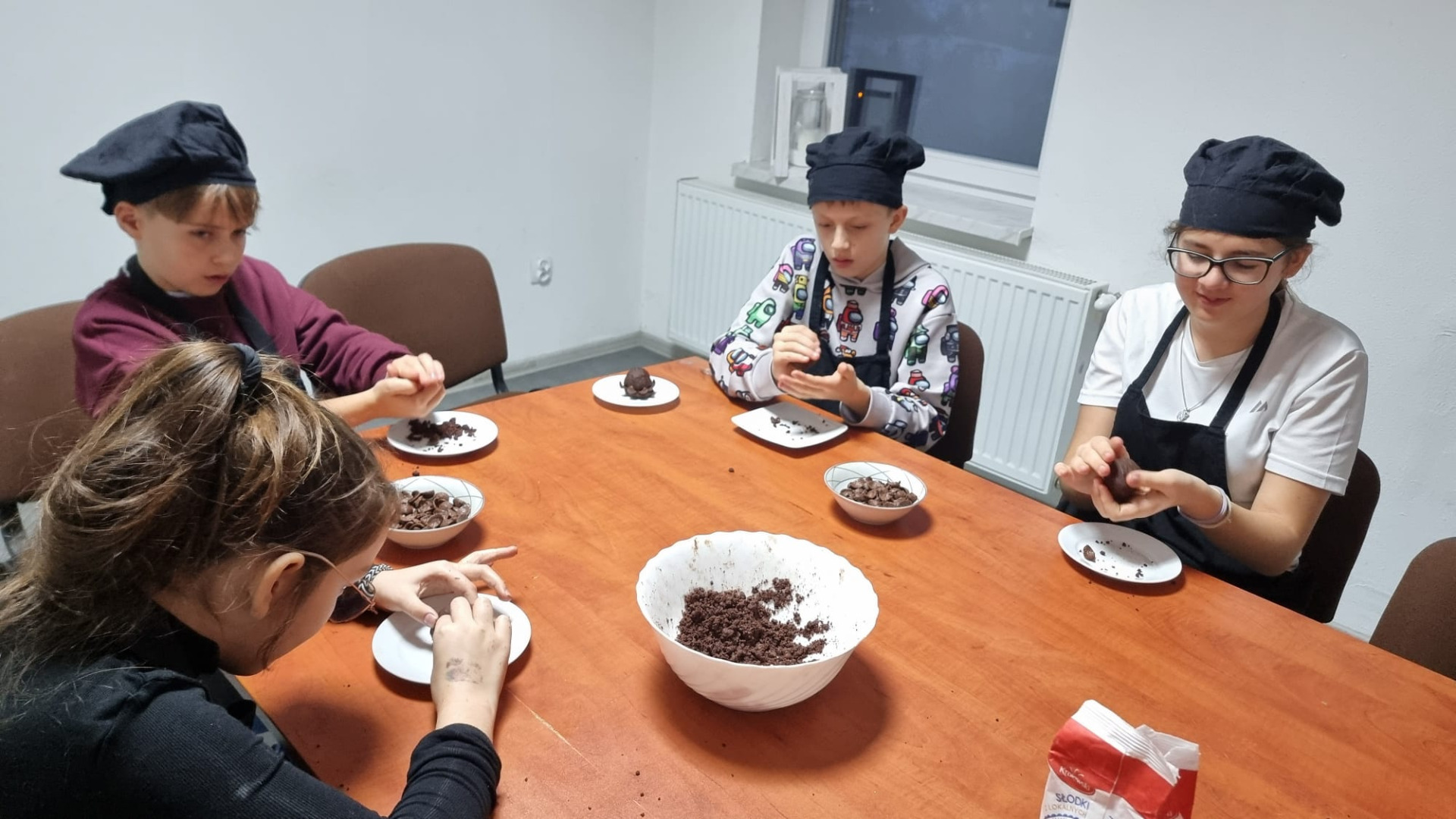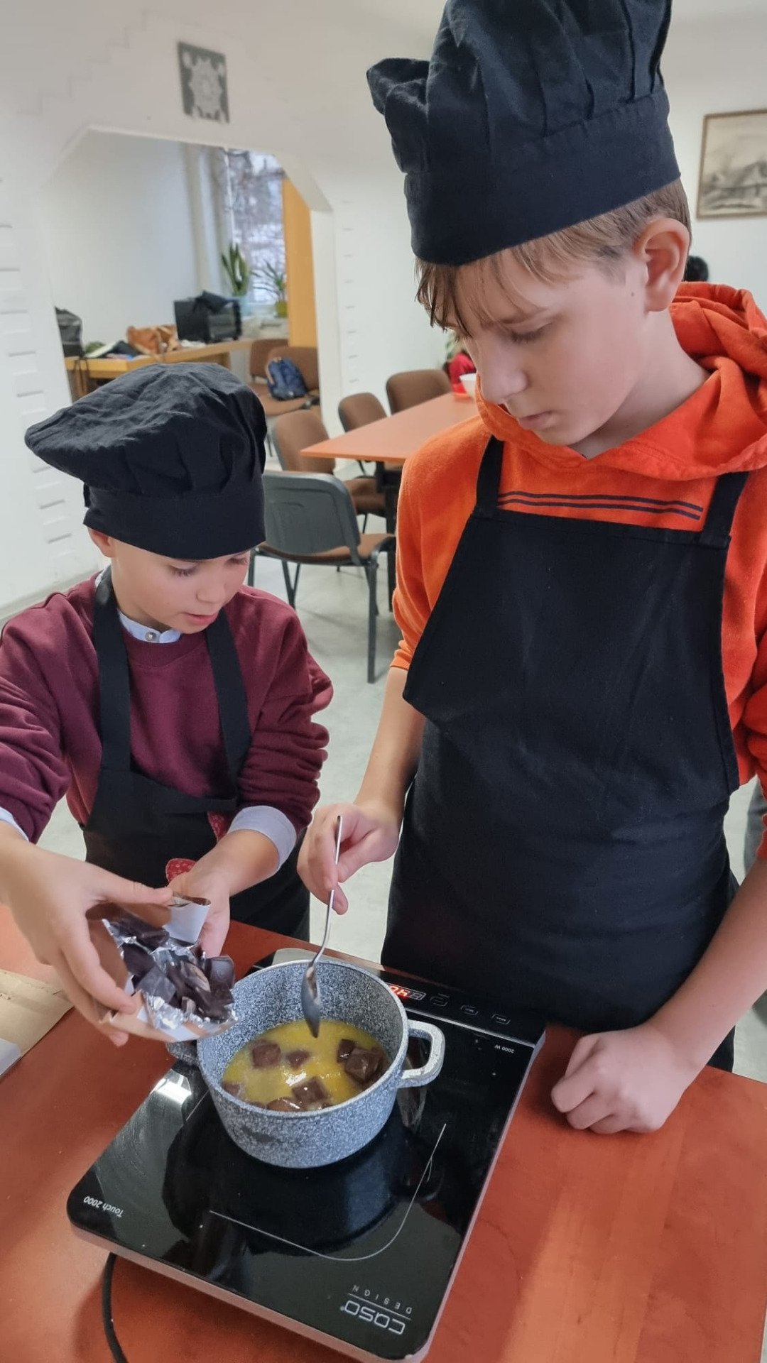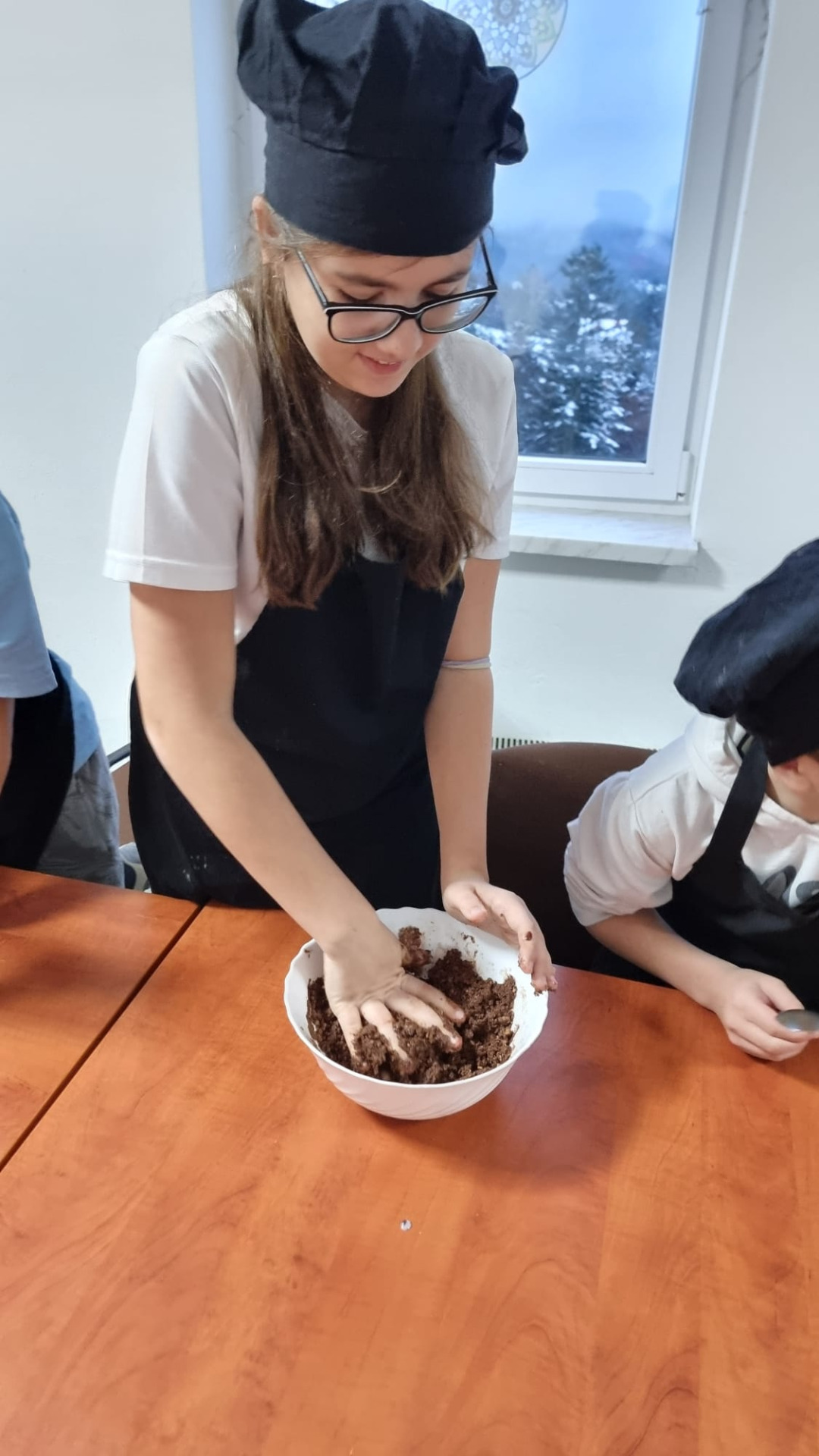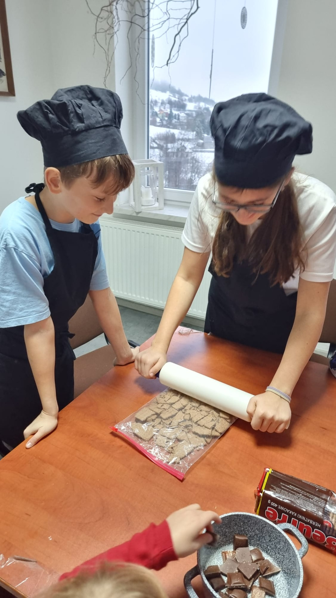 Przedświąteczny czas to idealna okazja, by zaangażować dzieci w przygotowanie prostych, a zarazem efektownych deserów. Podczas warsztatów koła kulinarnego, które odbyły się pod czujnym okiem pani Ewy Macoszek-Dragon, dzieci stworzyły wyjątkowe czekoladowe szyszki, przypominające prawdziwe dary lasu przyprószone grudniowym śniegiem