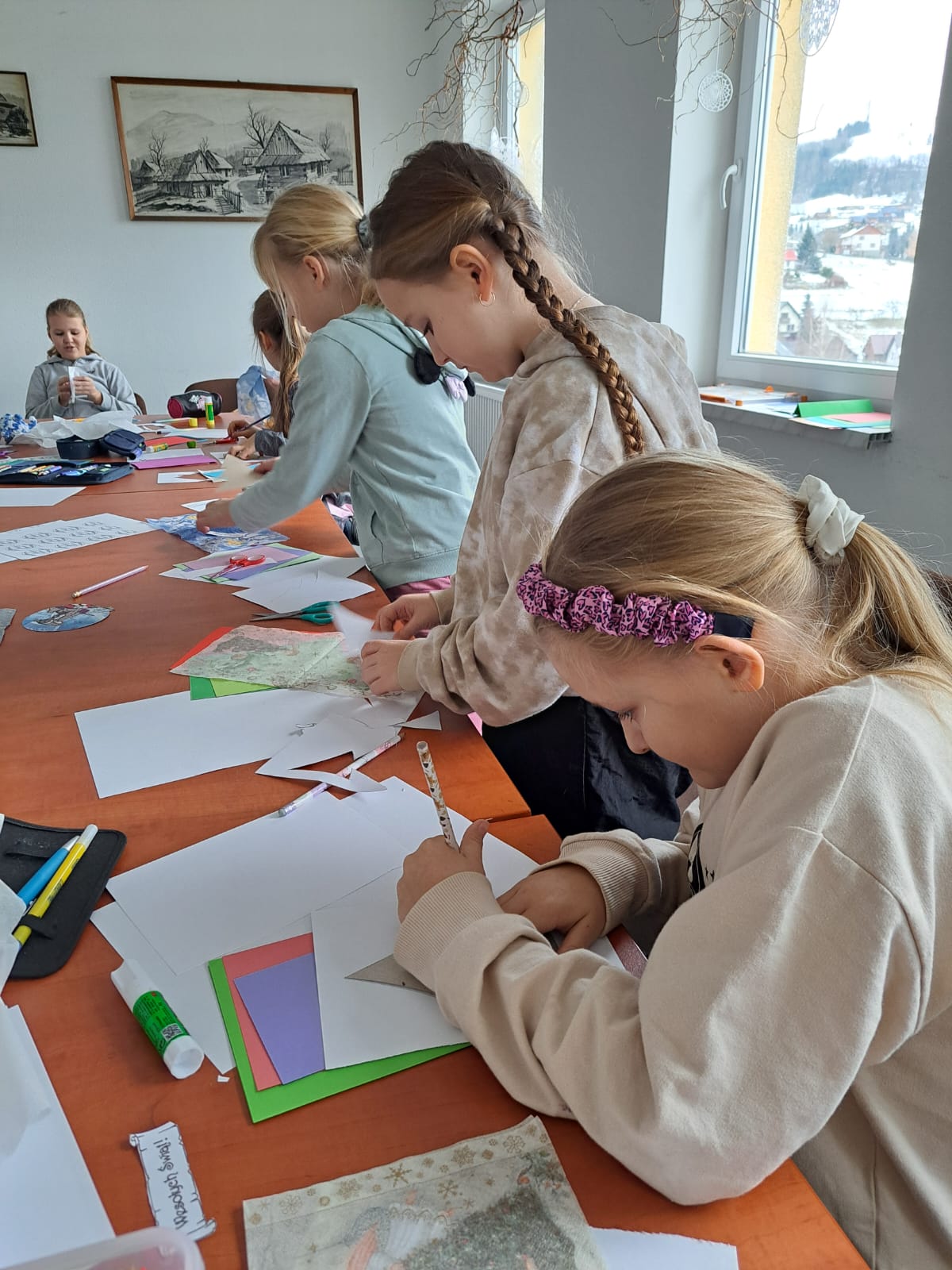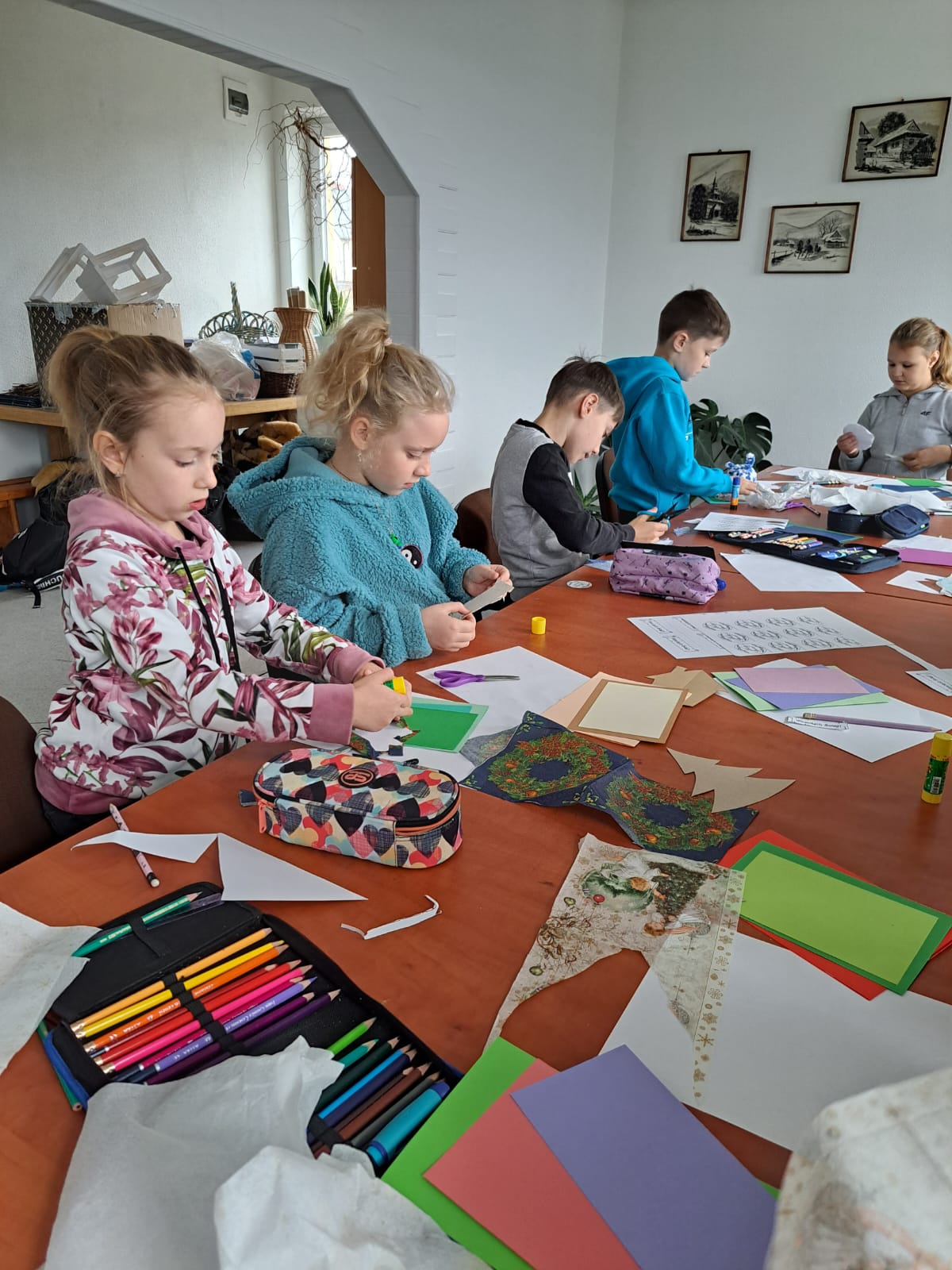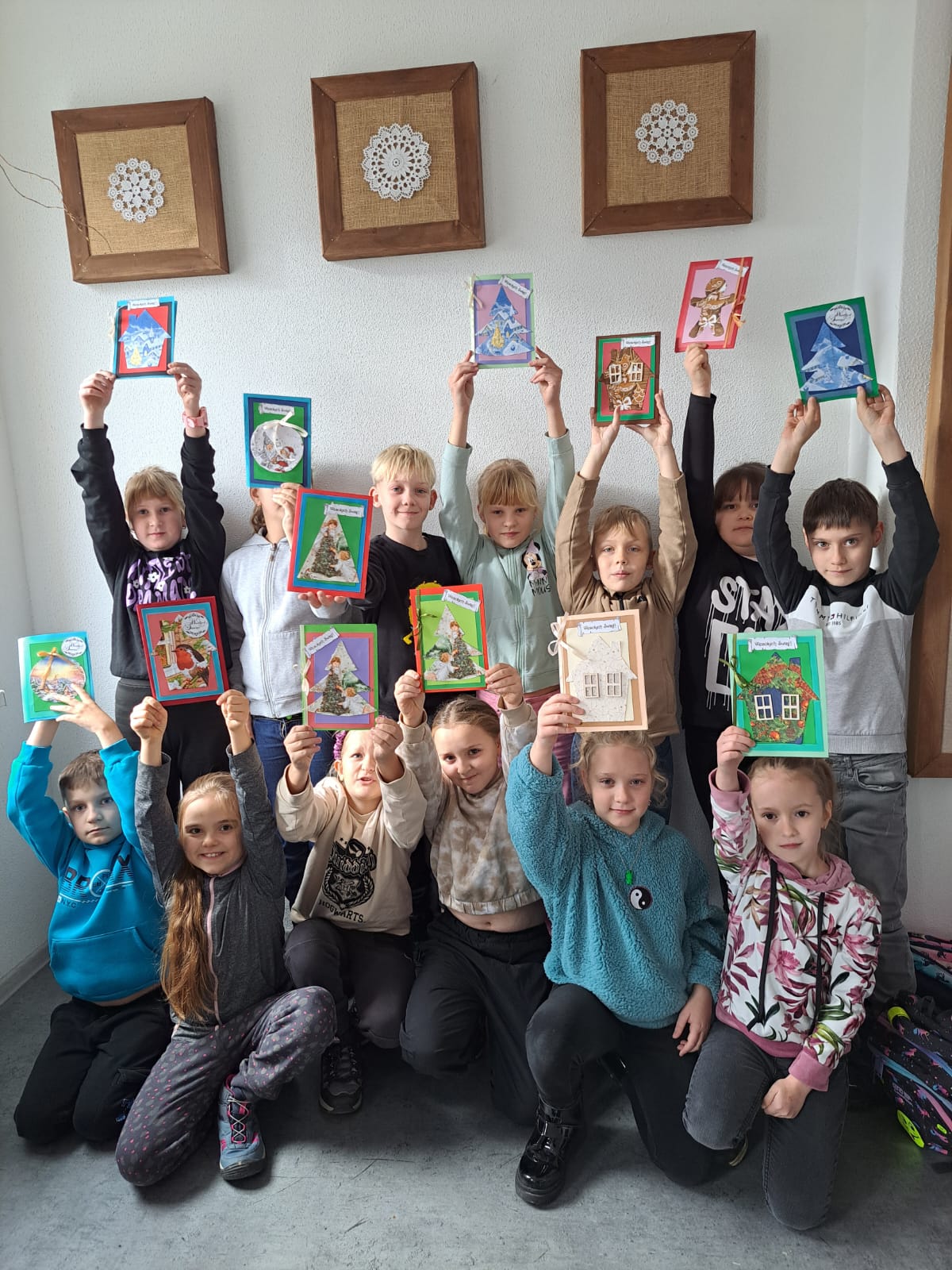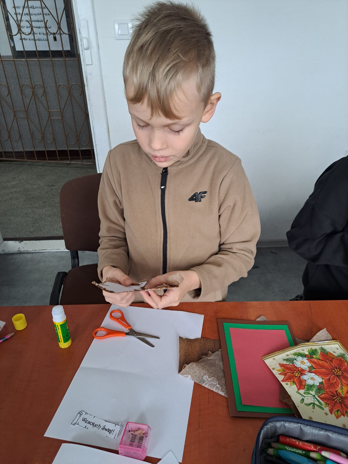 Dzieci z Koła Zręcznych Rąk pod opieką pani Agaty Polok poświęciły ostatnie zajęcia na tworzenie unikalnych kartek z okazji Świąt Bożego Narodzenia, dając wyraz swojej kreatywności i wrażliwości.
