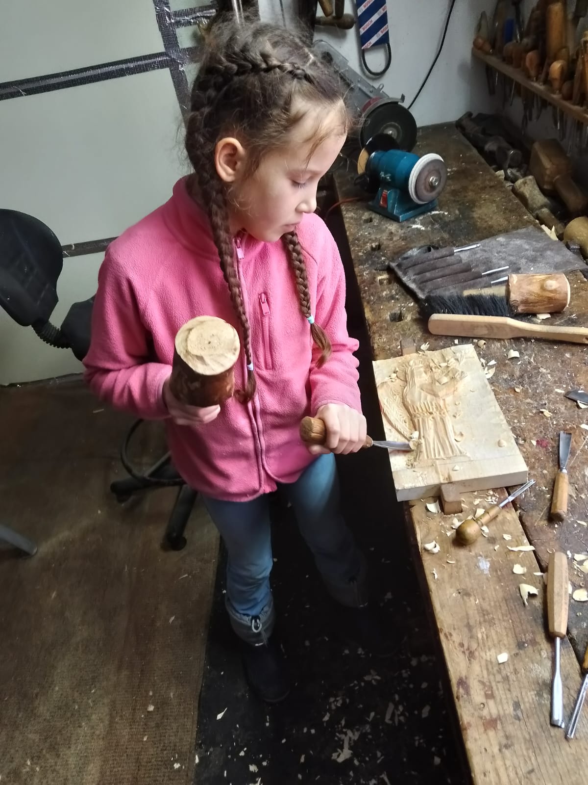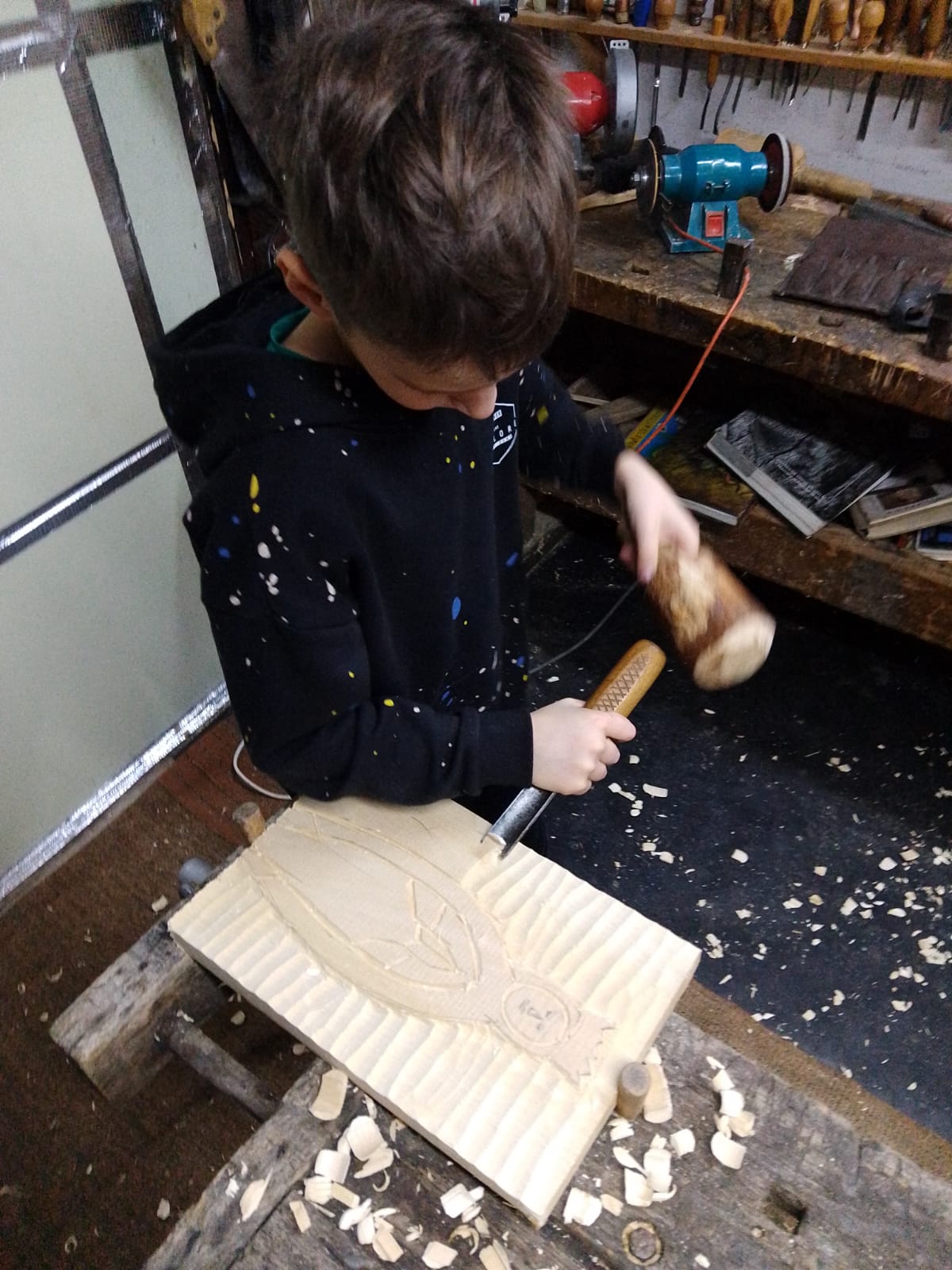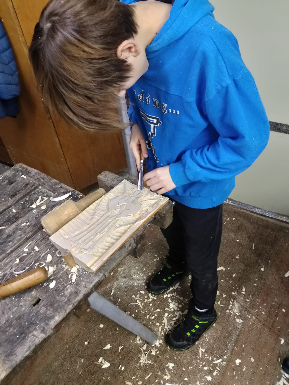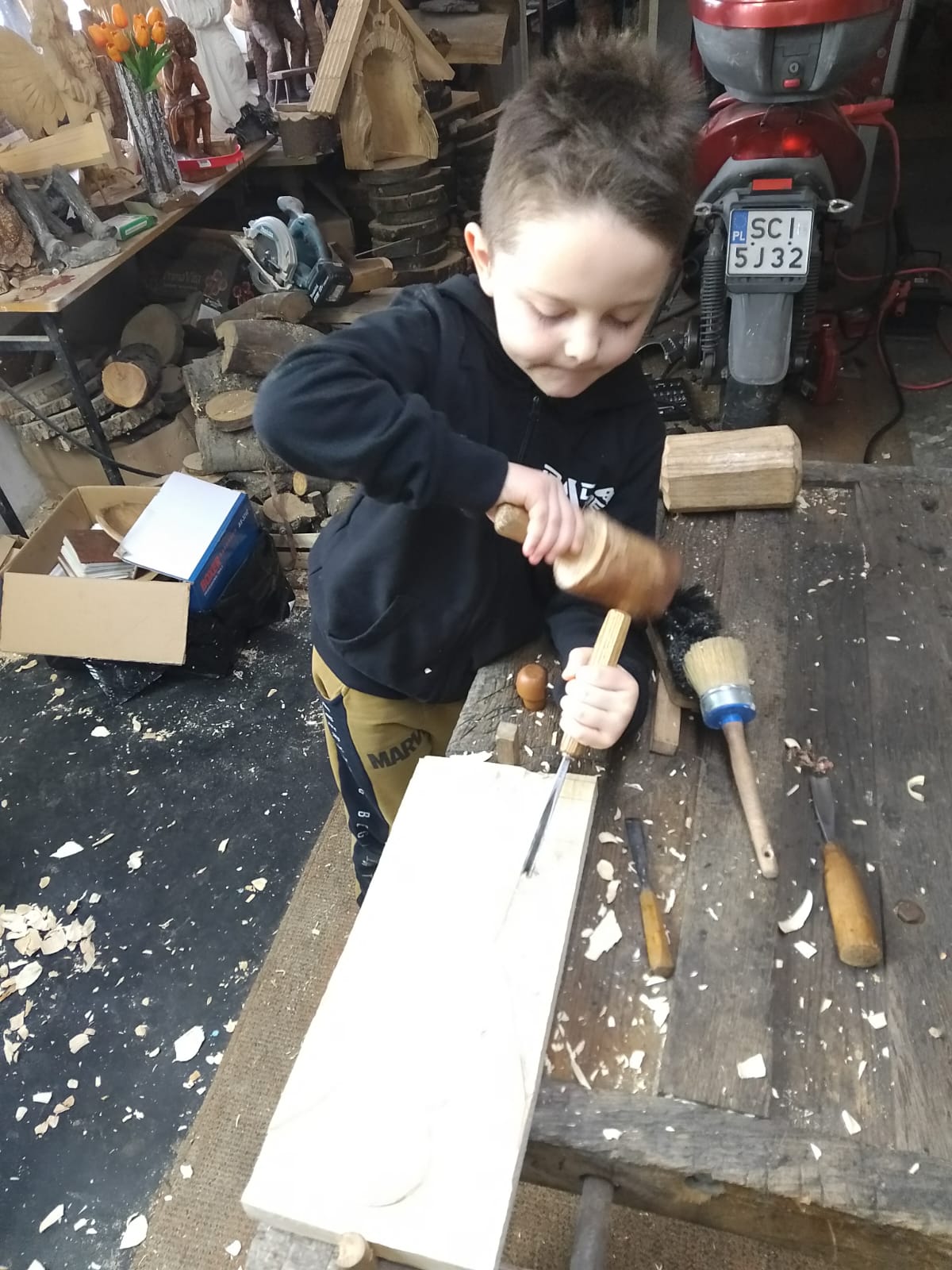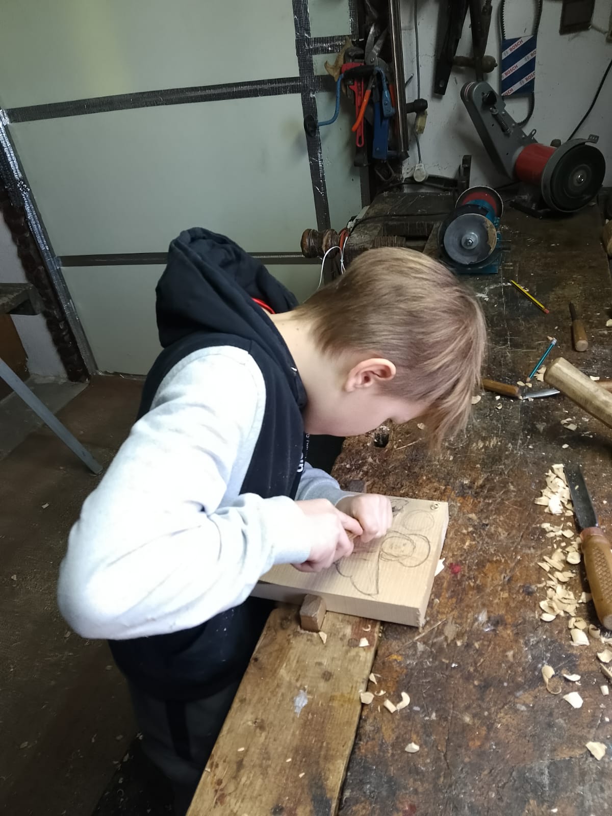 Wtorki to wyjątkowy dzień dla podopiecznych koła rzeźbiarskiego – to właśnie wtedy, pod czujnym okiem pana Zbigniewa Krężeloka, rozwijają swoje umiejętności w pracy z dłutem i drewnem.