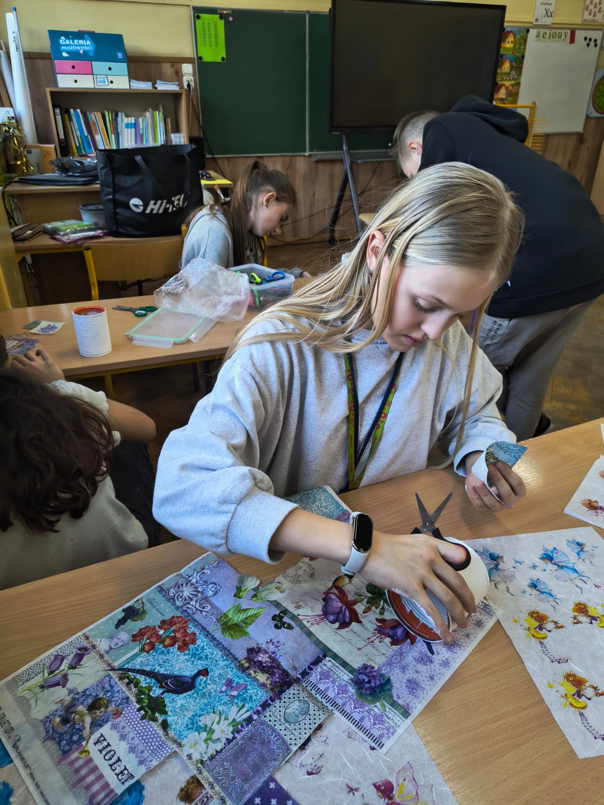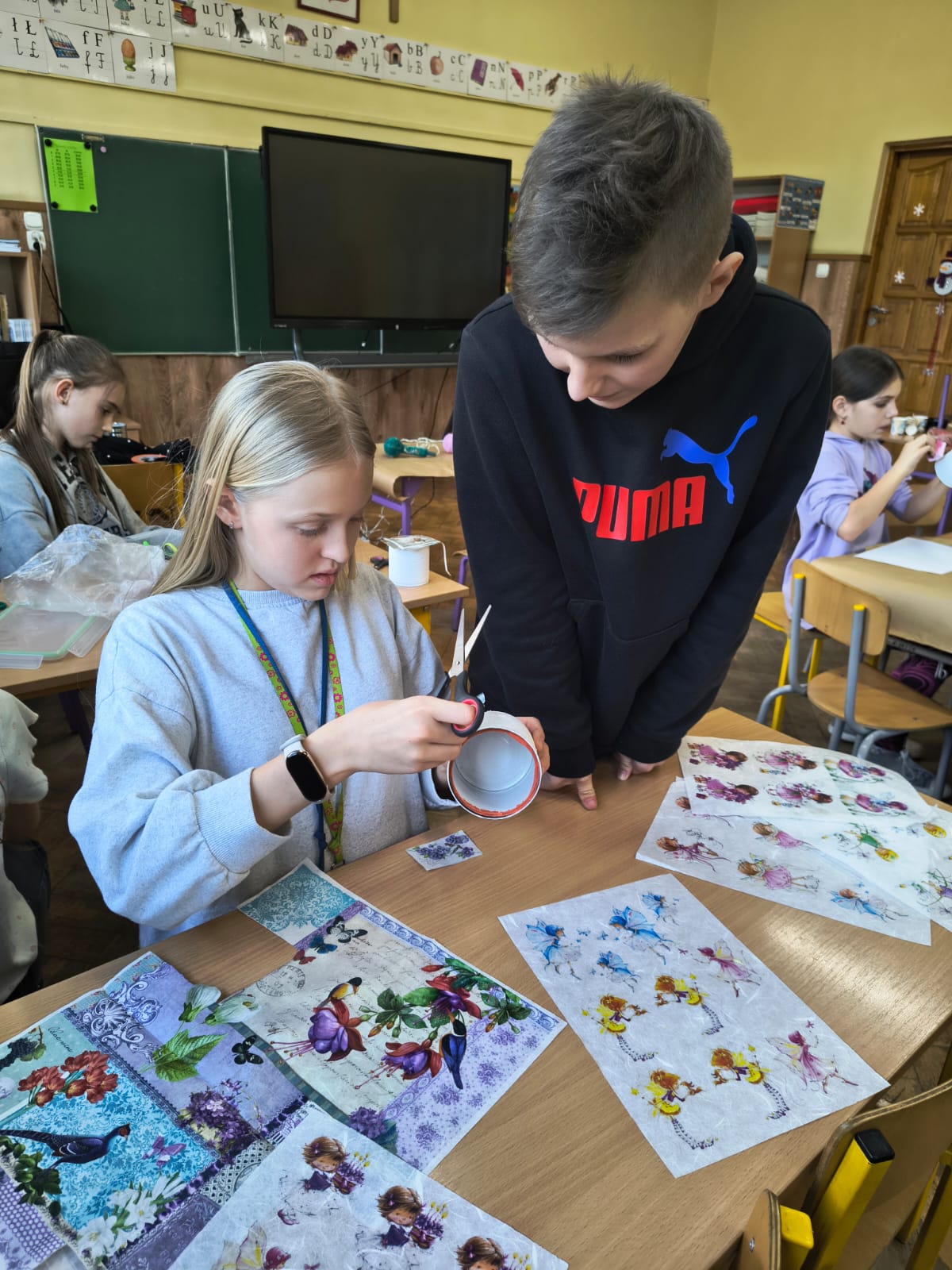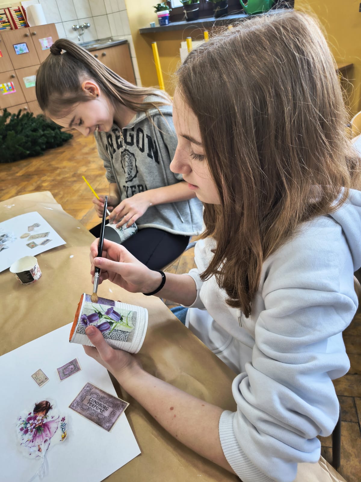 Z pomocą techniki decoupage oraz papieru ryżowego, dzieci stworzyły unikalne ozdoby, które znalazły nowe zastosowanie w codziennym życiu.