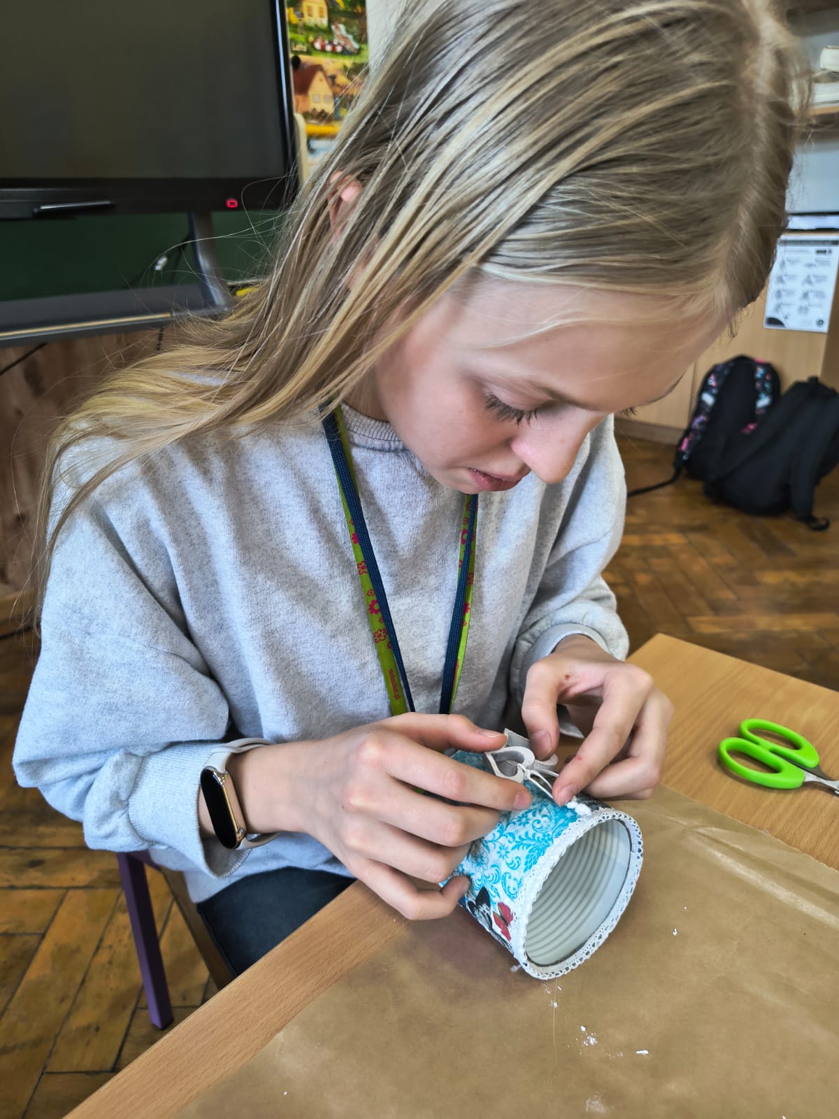 W minionym tygodniu podopieczni koła mieli okazję wykorzystać puszki po warzywach, przekształcając je w piękne i praktyczne przedmioty.